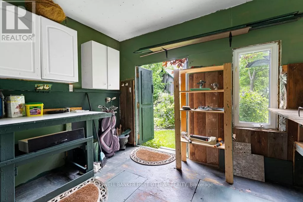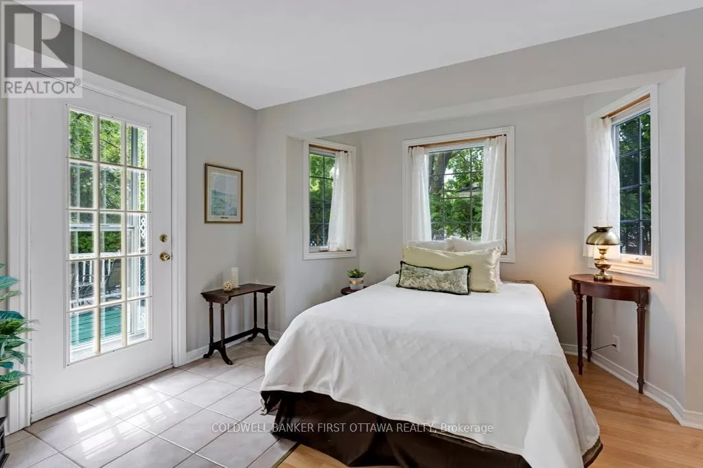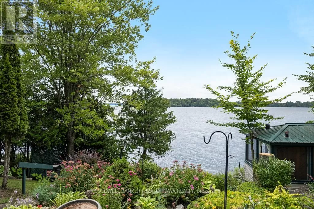 Cross Streets: Elm Grove Road. ** Directions: Hwy 7 to Perth. South thru Town of Perth. Keep driving south on Rideau Ferry Rd (County Rd #1). Right on Elm Grove Rd. Left Hughes Rd. Right McVeety Rd to PIN #160. Hidden haven with enchanting gardens, on Big Rideau Lake. When you walk through the front gate, you are greeted by the secret garden where life takes root and blossoms. A fence all around the property is shrouded in willowy shrubs, green hedges and mature trees. Pathways wander by amazing perennial beds full of colour. Within this private sanctuary, you have 2002 home showing great pride of ownership while offering open flex spaces to suit your own living style. The family room, currently dining room, overlook gardens and the Big Rideau. In the morning, you can watch the sun rise over the lake. Livingroom, kitchen and dinette flow together with laminate and ceramic flooring. Garden doors lead to back deck where in the evenings, you can sit and marvel at the sunsets. Wrap-around kitchen creates chef efficiencies with tasteful style including breakfast bar, ceramic backsplash, crown moulding and deep storage cabinets. Primary bedroom restful with windowed alcove for views of those spectacular lake sunrises. Second bedroom has desk nook and door to deck. The bathroom features two-person soaking jacuzzi tub. This bathroom also has laundry station and storage closet. Numerous big closets with lots of storage are found thru-out the home. Outside, you have garden shed with lovely shaded pergola for afternoon respites. The garden shed is designed for gardening with potting bench and shelving. Screened gazebo is at the shore, for lazy summers days by the water. The gazebo, garden shed and pergola all have hydro. For crafts and projects, you have insulated workshop with large loft and 100 amps. The crystal clear waterfront is sandy and rocky, gradually getting deeper for great swimming. At end of the dock, depth 5-6 ft. Hi-speed and cell service are available. Located in friendly neighbourhood community where residents share private road maintenance and snow plowing; fee approx $400/year per resident. You also have curbside garbage and recycling pickup.10 mins to Perth. (id:27476)