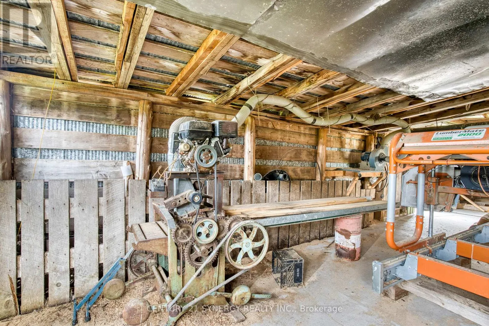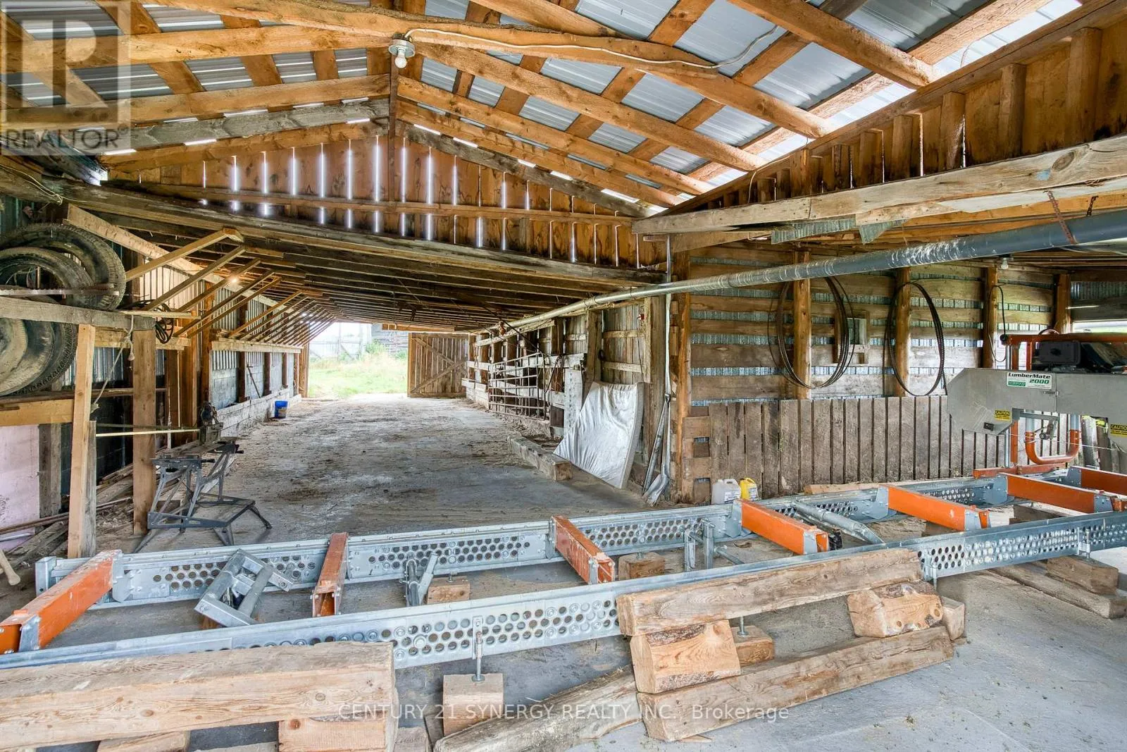 Cross Streets: County Road 10 /Drummond Concession 2. ** Directions: From Perth, take North Street (County Road 10). Follow to pin 1998 on left. Welcome to this exceptional 155-acre farm, offering a rare blend of agricultural productivity, rural charm, and outstanding versatility all just five minutes from the historic town of Perth. With approximately 75 acres of fertile, tillable land currently planted in a corn and soybean rotation, this property is well-suited for both seasoned farmers and those looking to generate immediate rental income. The existing crop lease is in place and may be continued by the Buyer. The remainder of the land features a picturesque mix of hardwood and softwood forest, perfect for recreational use, trail systems, harvesting, or simply enjoying the peace and privacy of nature. The charming bungalow features two main-floor bedrooms plus a third on the lower level, with a desirable walkout basement that offers excellent potential for a granny suite or in-law accommodation. The home is thoughtfully designed for accessibility, with ramps already installed, main floor laundry, and a bright, open-concept living, dining, and kitchen area that provides a warm and inviting living space for the whole family. A true highlight of the property is the impressive selection of outbuildings that make this farm truly turnkey. A detached three-car garage is equipped with a pony panel, while a separate, fully functional workshop opens the door to countless possibilities whether you're a hobbyist, craftsman, or entrepreneur. The large barn includes three box stalls and is serviced with both water and electricity. It also houses a fully operational sawmill, planer, and dust extraction system, making it ideal for woodworking or value-added farm ventures. The fenced barnyard is ready for livestock, and the fully equipped sugar shack, complete with new pans and all necessary tools, allows you to produce your own maple syrup each spring. Opportunities like this don't come along often book your private showing today and discover everything this incredible farm has to offer. (id:27476)