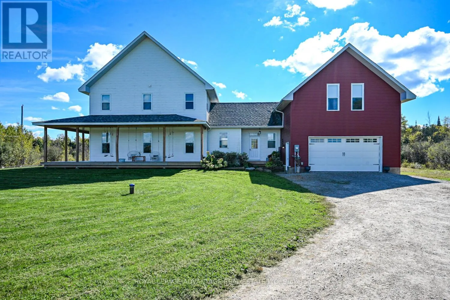Cross Streets: Highway 43 and Churchill Rd. ** Directions: Highway 43 to Churchill Rd. Experience the perfect blend of modern comfort and rustic charm with this stunning two-story New England style modern farmhouse. Built in 2019 and set on 53 acres, this 4-bedroom, 3.5-bath home offers both functionality and relaxation. The heart of the home is the spacious eat-in kitchen, complete with a large centre island, walk-in pantry, and ample cabinetry, large dining space for the entire family and an ideal family hub, ideal for busy mornings or quiet productivity. The primary suite features double walk-in closets and a spa-like 5-piece ensuite, while three additional bedrooms provide generous storage and share a stylish 4-piece bath. A cozy living room with wood-burning fireplace offers the perfect gathering space while also supplementing heating in colder months. Step outside to enjoy 8 open acres surrounding the home, offering wide views and room to roam. A new path leads into a peaceful mix of maple bush and open acreageperfect for nature walks or future trails. The wrap-around veranda provides the ideal place to take in the sights of wildlife and sunsets. This exceptional property also features apple trees, a maple bush, and a pond that transforms into a skating rink in the winter. Above the attached double garage, discover a bonus family room with an additional room and 3-piece ensuite, ideal for guests or hobbies. A 48 x 24 workshop with ICF foundation provides space for projects, small-scale farming, or animals. Minutes from Perth and Smiths Falls, with an easy commute to Ottawa, this property offers the best of country living with modern comfort. EXTRAS: Efficient heating 1 fill of propane per year (600L, ~$930), supplemented by wood fireplace (approx. 12 cords/season). Hydro averages $275/month in summer and $325/month in winter. (id:27476)