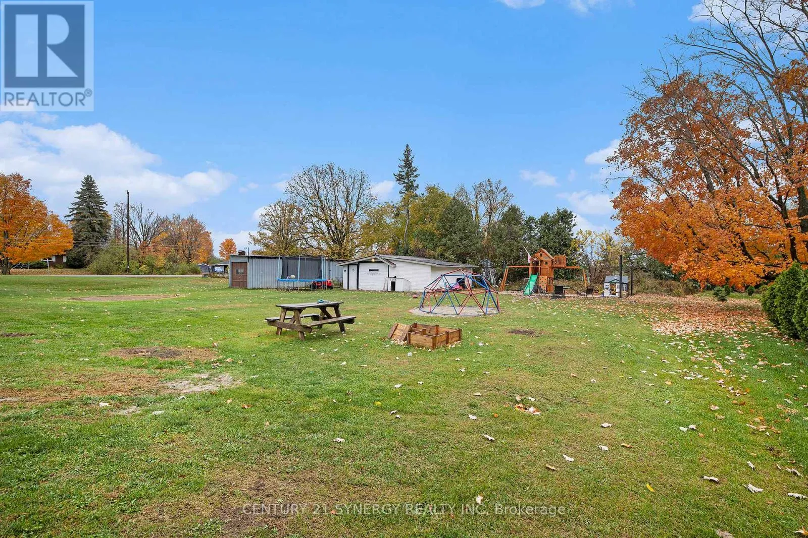 Cross Streets: Highway 43 and Poonamalie Road. ** Directions: From Smiths Falls take Highway 43 West towards Perth, property is just passed entrance to the Poonamalie Rd on the left hand side. Welcome to this charming and beautifully maintained bungalow, perfectly situated on the peaceful fringe of Smiths Falls towards Perth, offering the best of both town convenience and country-style space. From the moment you arrive, you'll be impressed by the setting, the curb appeal, and the incredible outdoor space this property provides.Step inside to a bright and inviting main level, where the kitchen and dining area shine with natural light. You'll love the abundance of cabinetry, newer appliances, and the seamless flow to the rear deck through the patio doors-perfect for summer BBQs and morning coffee overlooking the yard. The spacious living room offers a warm, welcoming place to relax, while three comfortable bedrooms and a full bath complete the main floor layout.The fully finished lower level expands your living space even further with an additional bedroom, a games area or home office, a cozy family room, and a laundry/utility room. There's also plenty of storage throughout, making this home as practical as it is inviting.Outside, the huge yard is a standout feature-ideal for kids, pets, gardening, or entertaining. The large detached garage adds excellent value with room for vehicles, tools, and toys.Major updates within the last four years provide peace of mind, including a new furnace, new roof, foundation sealing with french drain, water treatment system, basement flooring, central air conditioner, and newer appliances.This move-in-ready bungalow offers space, comfort, and thoughtful upgrades in a fantastic location. Whether you're starting out, slowing down, or growing your family, this home checks all the boxes. Don't miss your chance to make it yours! (id:27476)