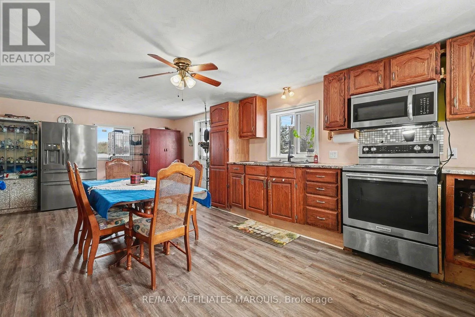 Cross Streets: Highway 43 & Glenview Rd. ** Directions: From Smiths Falls head West on Highway 43. Turn Right (North) onto Glenview Road. Home is on the left. Enjoy easy, low-maintenance living in this well-designed 2-bedroom, 1-bath bungalow offering a bright and functional layout. The spacious living room features patio doors that lead directly to your private deck and hot tub (2021), creating a seamless indoor-outdoor space to relax and unwind while surrounded by trees. The large eat-in kitchen offers plenty of room for family meals and entertaining, while two comfortable bedrooms and an updated full bath (2024) complete the main level. This home offers true peace of mind with many major updates already completed, including a furnace (2023), 200-amp electrical panel(2009), new windows and doors (2023), roof (2021), extra blown-in attic insulation, and septic (2002). Outside, enjoy raised garden beds, a clothesline, a stunning 20'x30' firepit set on bedrock, and a 20'x30' Amish-built shed. A move-in-ready, stress-free home where the heavy lifting has already been done. (id:27476)