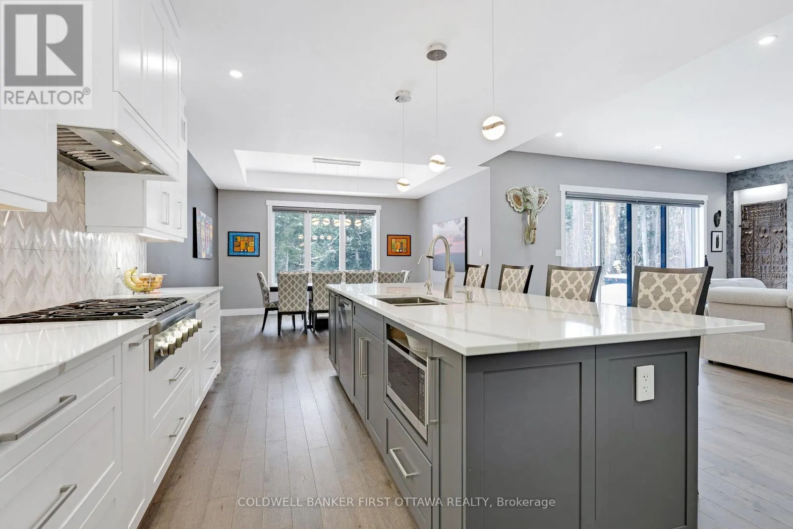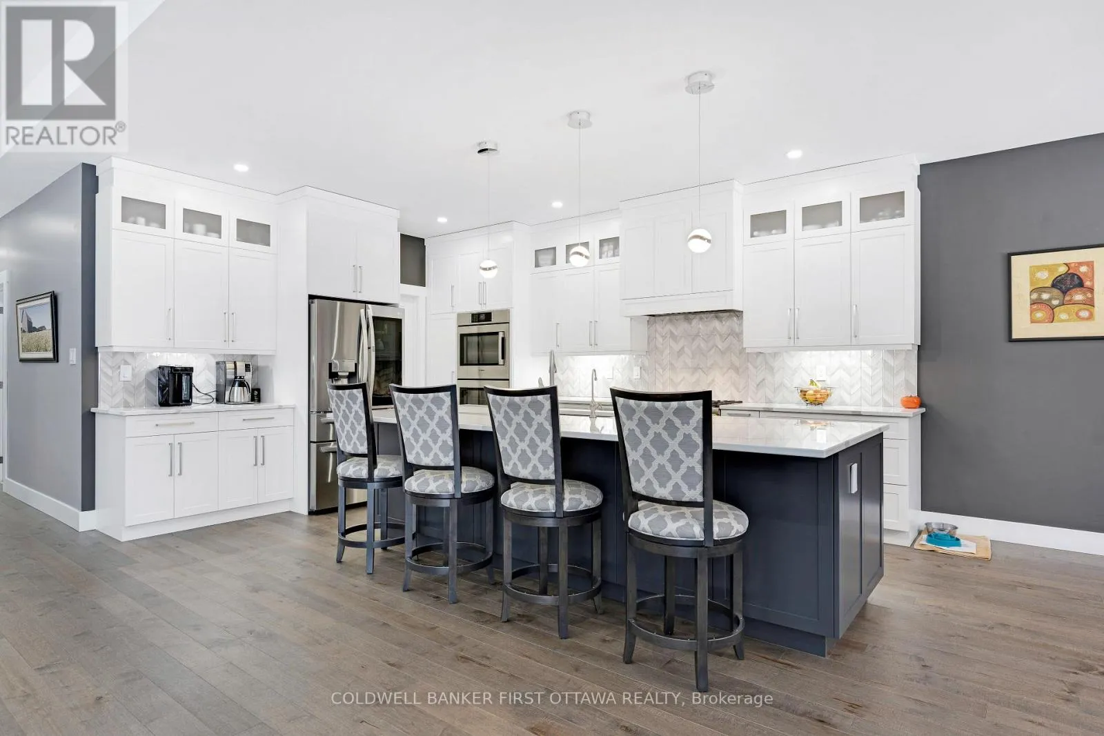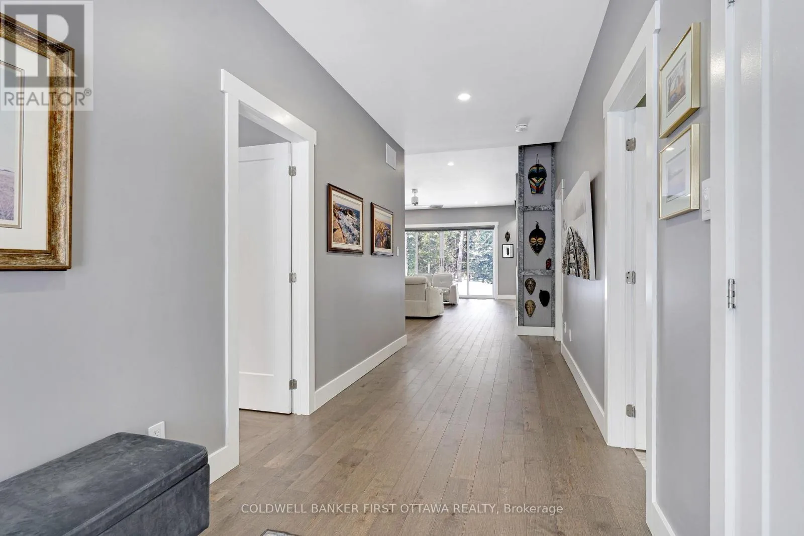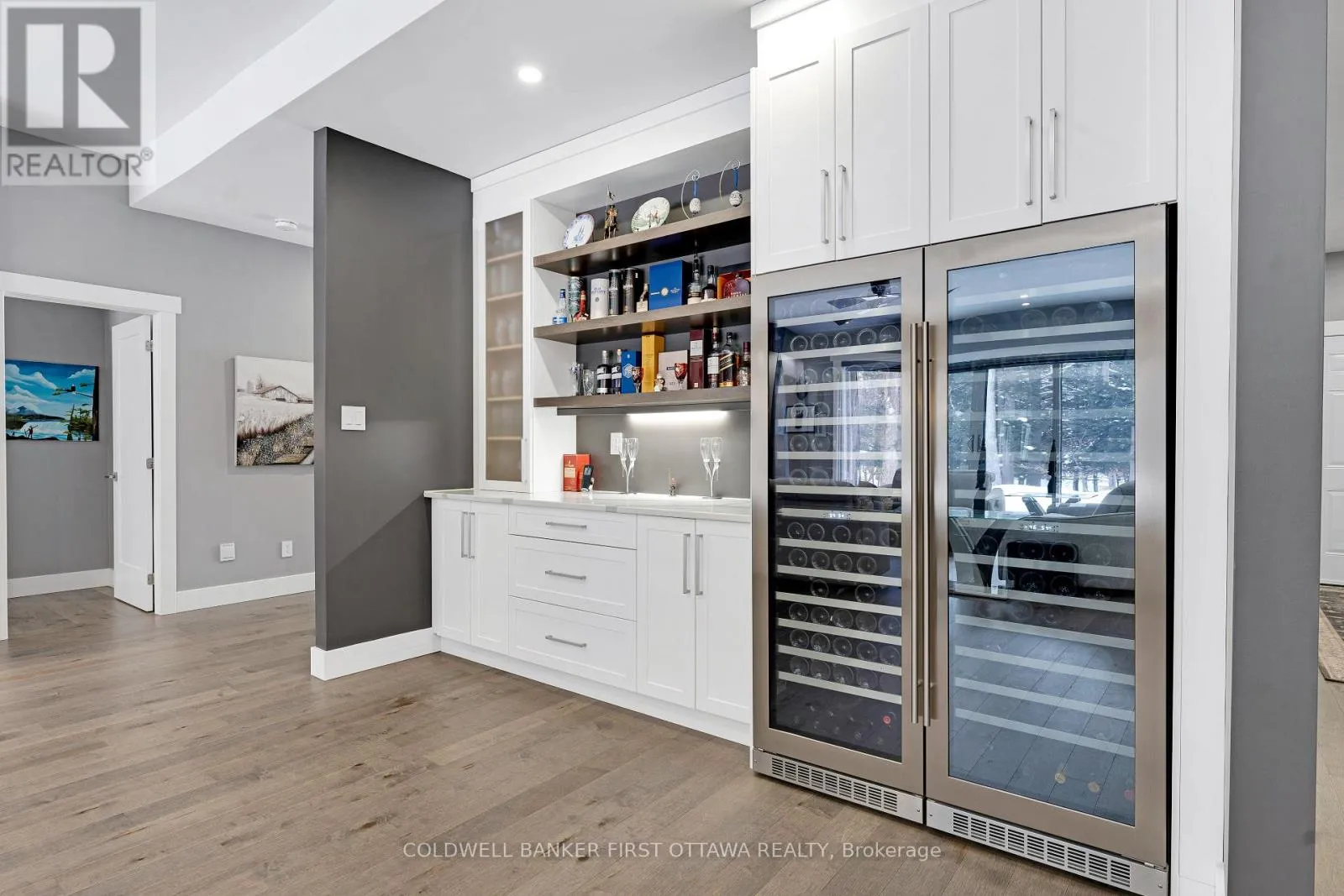 Cross Streets: Elm Grove Road. ** Directions: Hwy 7 to Perth. South thru the Town of Perth. Continue south on Rideau Ferry Rd (County Rd 1). Right on Elm Grove Rd. Right on Lumberjack Trail. Left on Maplebush Trail to #155. Home of the finest quality, in prestigious Otty Woods neighourhood. Tucked into 2 acres at end of non-thru road, exquisite 2020 bungalow offers you a life of tranquility wrapped in nature. You also have deeded access to Otty Lake waterfront and miles of walking trails. The home's gracious front porch welcomes you to sunny foyer with double closet. Wide open floor plan flows with light and hardwood floors. High 10' ceilings and recessed pot lights create bright spaces thru the 2+2 bedroom, 3 full bathroom home. Elegant living room invites you to relax by the propane fireplace while overlooking the lovely outdoors, with deer meandering by. Designed for entertaining, living room includes Butler's pantry with high-end Vicostone quartz countertops, built-in cabinets and wine fridge. Dining room attractive cove ceiling and oversized window onto nature. Ultimate gourmet kitchen offers premium Luxor cabinets, ceramic herringbone backsplash, quartz island-breakfast bar and walk-in pantry. Den, or ideal home office. You'll love the palatial laundry room with large bright windows and quartz cabinets perfect for folding & organizing. Primary suite retreat has walk-in closet and walk-out to deck and landscaped yard; spa ensuite two-sink quartz vanity, touch-light mirrors and rain head glass shower. Second bedroom walk-in closet and its own access to 4-piece bathroom. Lower level family room gas fireplace, wiring for speakers and impressive cove ceiling with mood lighting around its perimeter. Big gym also wired for speakers. Two more bedrooms and 4-pc bathroom. Back yard's Trex deck has two propane BBQ hookups, exterior lighting & wiring for speakers. Superiorly efficient Mitsubishi heat pump air handler for heat & cooling. Attic R70; walls R37. Auto 22kw Generac. Underground hydro line from road. Beyond your backyard, deeded access to 44 acres of trails plus waterfront with dock; swimming and fishing. Located on paved township road; garbage pickup & school bus. 10 mins Perth. (id:27476)