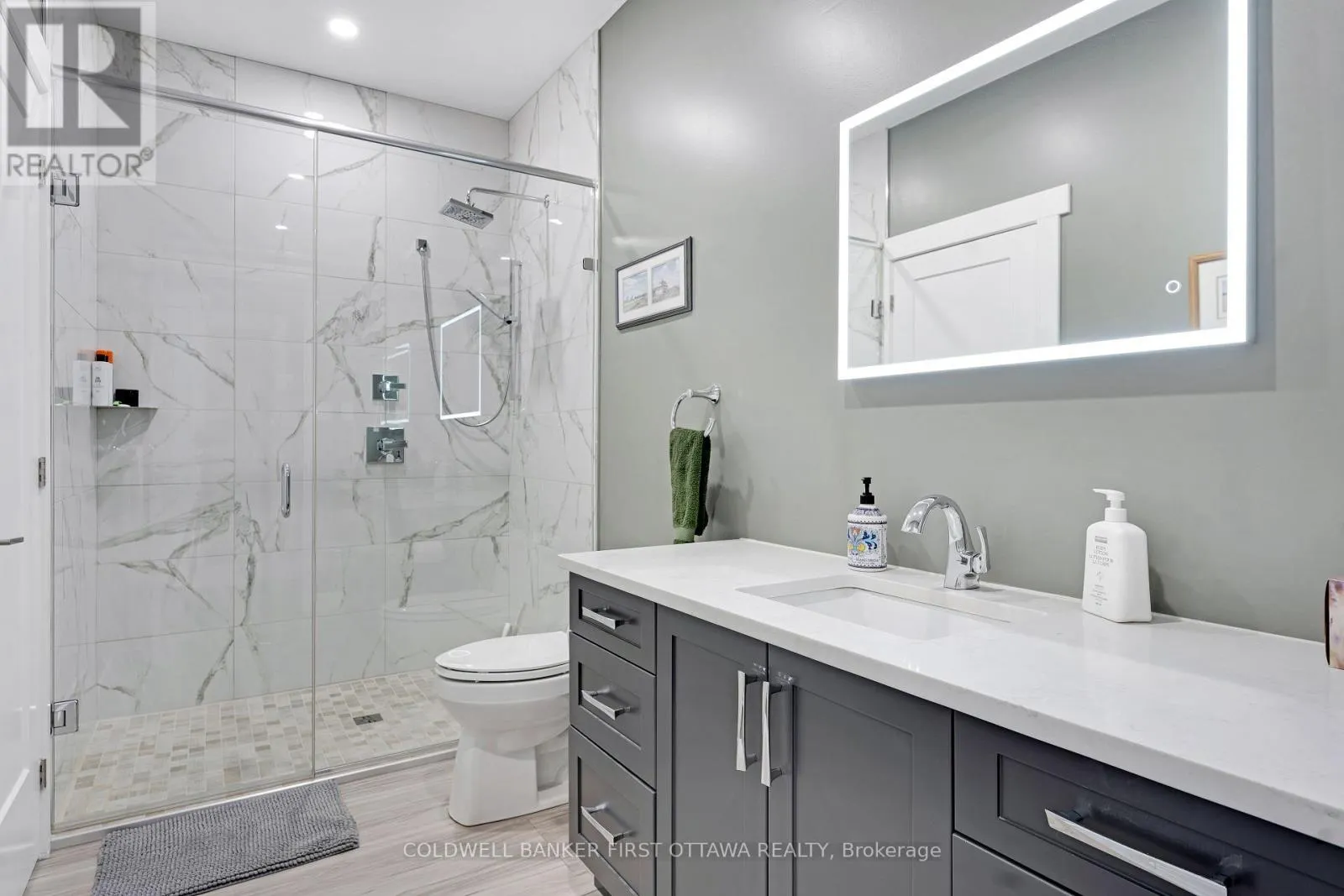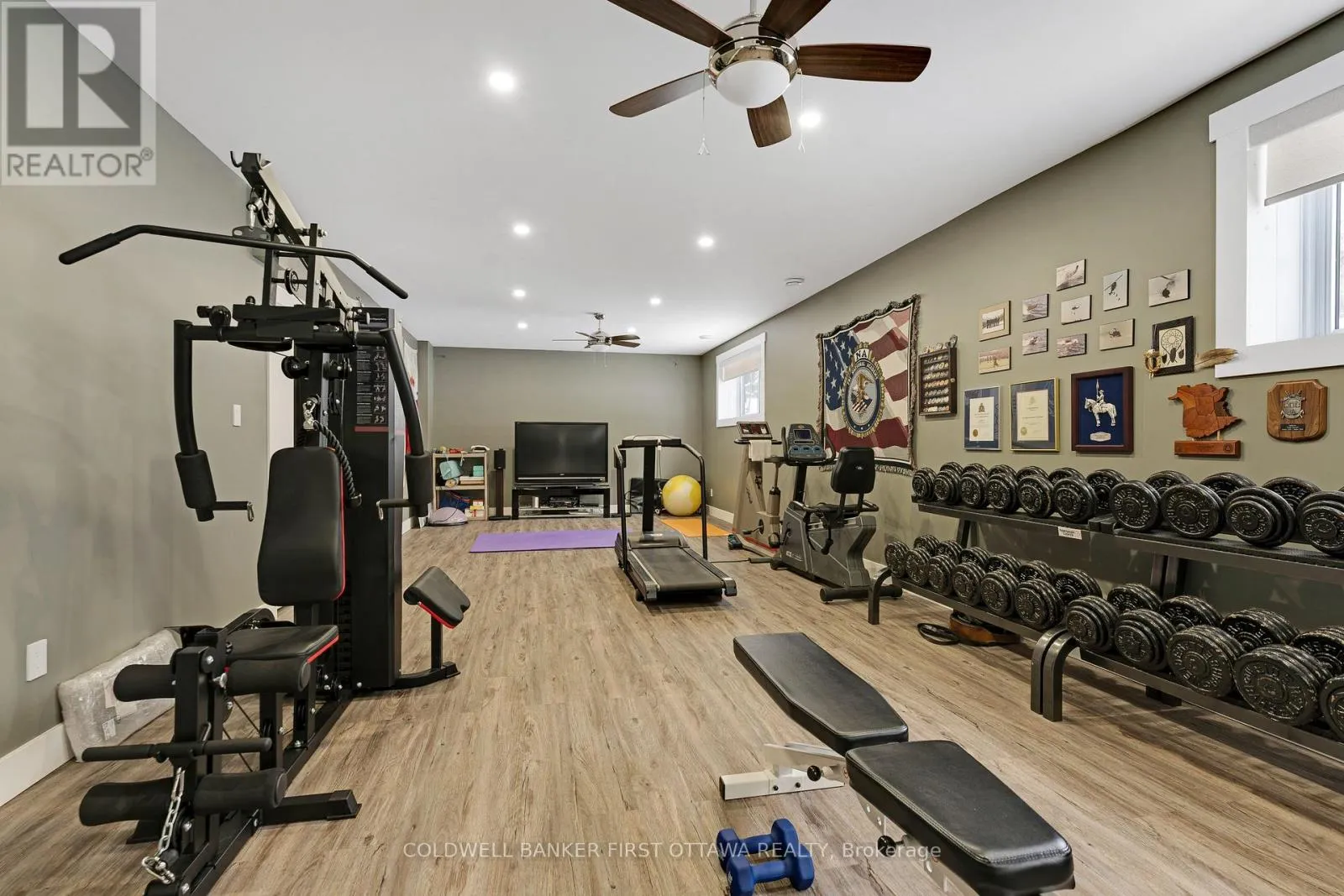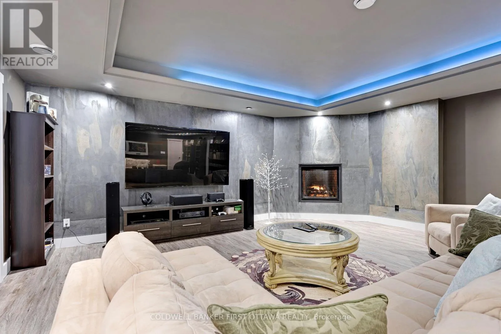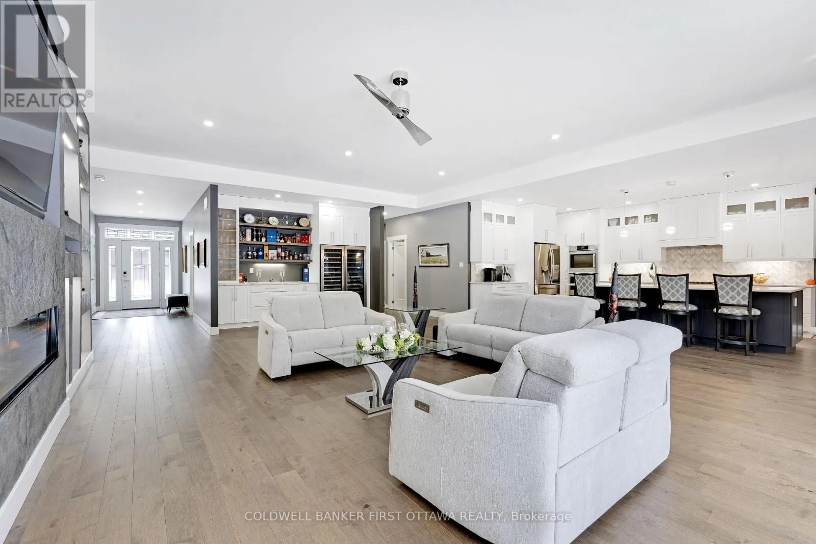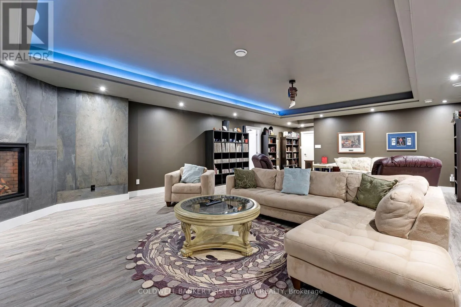 Cross Streets: Elm Grove Road. ** Directions: Hwy 7 to Perth. South thru the Town of Perth. Continue south on Rideau Ferry Rd (County Rd 1). Right on Elm Grove Rd. Right on Lumberjack Trail. Left on Maplebush Trail to #155. Home of the finest quality, in prestigious Otty Woods neighourhood. Tucked into 2 acres at end of non-thru road, exquisite 2020 bungalow offers you a life of tranquility wrapped in nature. You also have deeded access to Otty Lake waterfront and miles of walking trails. The home's gracious front porch welcomes you to sunny foyer with double closet. Wide open floor plan flows with light and hardwood floors. High 10' ceilings and recessed pot lights create bright spaces thru the 2+2 bedroom, 3 full bathroom home. Elegant living room invites you to relax by the propane fireplace while overlooking the lovely outdoors, with deer meandering by. Designed for entertaining, living room includes Butler's pantry with high-end Vicostone quartz countertops, built-in cabinets and wine fridge. Dining room attractive cove ceiling and oversized window onto nature. Ultimate gourmet kitchen offers premium Luxor cabinets, ceramic herringbone backsplash, quartz island-breakfast bar and walk-in pantry. Den, or ideal home office. You'll love the palatial laundry room with large bright windows and quartz cabinets perfect for folding & organizing. Primary suite retreat has walk-in closet and walk-out to deck and landscaped yard; spa ensuite two-sink quartz vanity, touch-light mirrors and rain head glass shower. Second bedroom walk-in closet and its own access to 4-piece bathroom. Lower level family room gas fireplace, wiring for speakers and impressive cove ceiling with mood lighting around its perimeter. Big gym also wired for speakers. Two more bedrooms and 4-pc bathroom. Back yard's Trex deck has two propane BBQ hookups, exterior lighting & wiring for speakers. Superiorly efficient Mitsubishi heat pump air handler for heat & cooling. Attic R70; walls R37. Auto 22kw Generac. Underground hydro line from road. Beyond your backyard, deeded access to 44 acres of trails plus waterfront with dock; swimming and fishing. Located on paved township road; garbage pickup & school bus. 10 mins Perth. (id:27476)