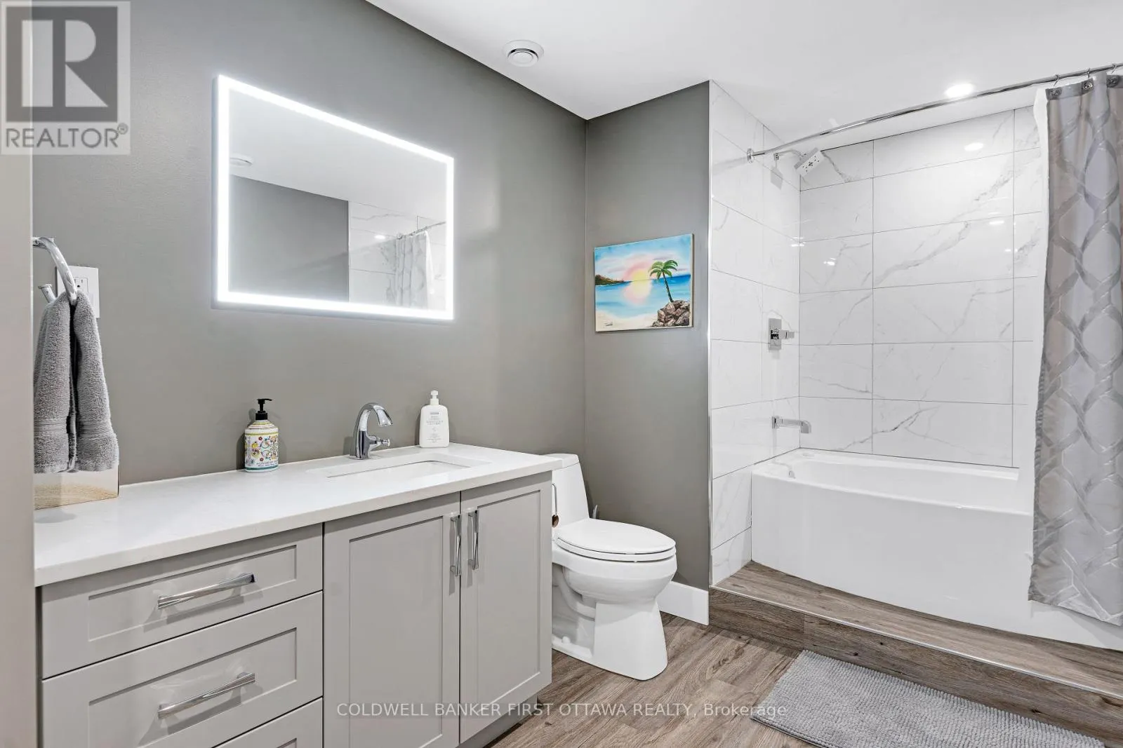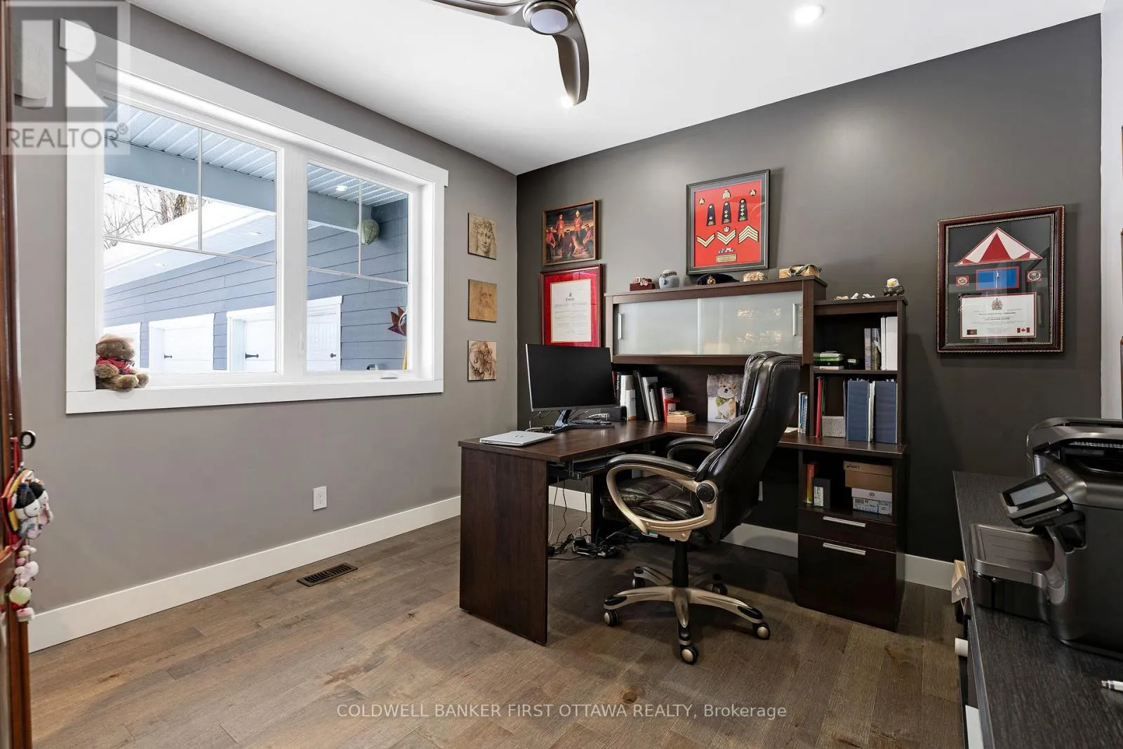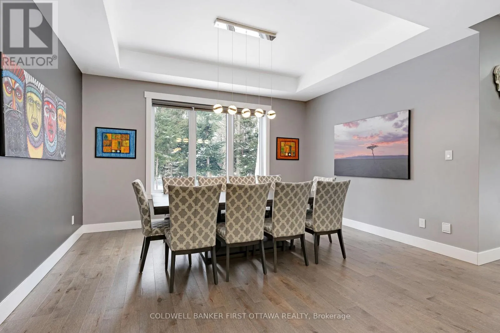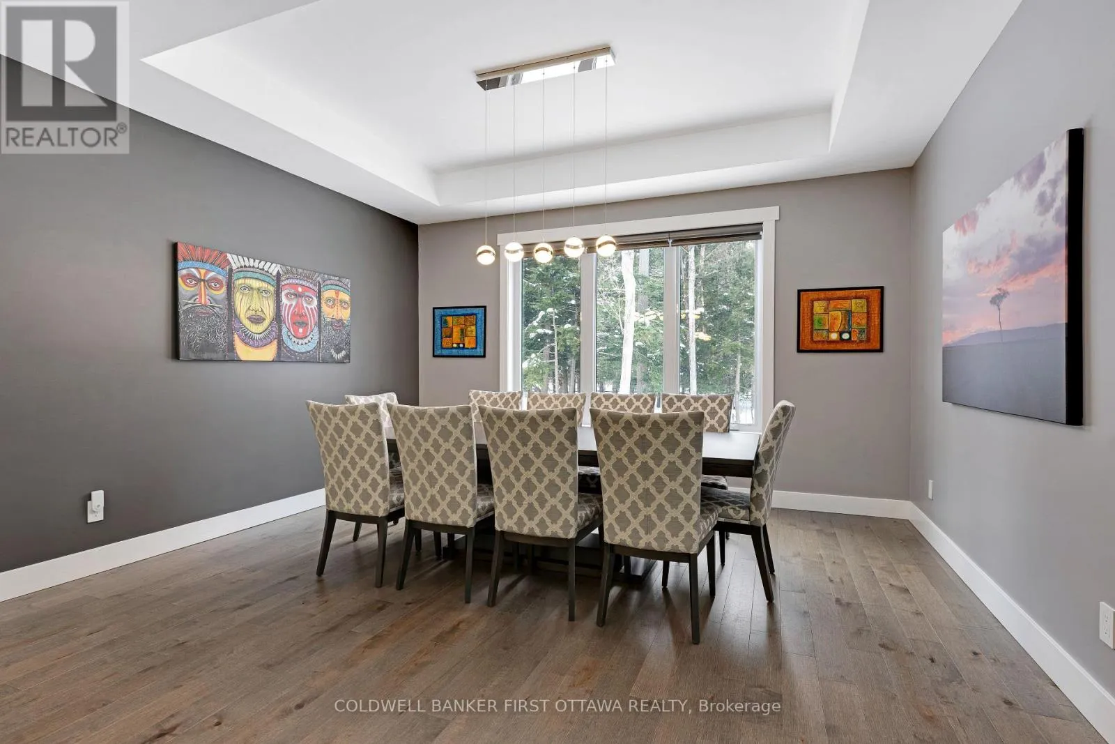 Cross Streets: Elm Grove Road. ** Directions: Hwy 7 to Perth. South thru the Town of Perth. Continue south on Rideau Ferry Rd (County Rd 1). Right on Elm Grove Rd. Right on Lumberjack Trail. Left on Maplebush Trail to #155. Home of the finest quality, in prestigious Otty Woods neighourhood. Tucked into 2 acres at end of non-thru road, exquisite 2020 bungalow offers you a life of tranquility wrapped in nature. You also have deeded access to Otty Lake waterfront and miles of walking trails. The home's gracious front porch welcomes you to sunny foyer with double closet. Wide open floor plan flows with light and hardwood floors. High 10' ceilings and recessed pot lights create bright spaces thru the 2+2 bedroom, 3 full bathroom home. Elegant living room invites you to relax by the propane fireplace while overlooking the lovely outdoors, with deer meandering by. Designed for entertaining, living room includes Butler's pantry with high-end Vicostone quartz countertops, built-in cabinets and wine fridge. Dining room attractive cove ceiling and oversized window onto nature. Ultimate gourmet kitchen offers premium Luxor cabinets, ceramic herringbone backsplash, quartz island-breakfast bar and walk-in pantry. Den, or ideal home office. You'll love the palatial laundry room with large bright windows and quartz cabinets perfect for folding & organizing. Primary suite retreat has walk-in closet and walk-out to deck and landscaped yard; spa ensuite two-sink quartz vanity, touch-light mirrors and rain head glass shower. Second bedroom walk-in closet and its own access to 4-piece bathroom. Lower level family room gas fireplace, wiring for speakers and impressive cove ceiling with mood lighting around its perimeter. Big gym also wired for speakers. Two more bedrooms and 4-pc bathroom. Back yard's Trex deck has two propane BBQ hookups, exterior lighting & wiring for speakers. Superiorly efficient Mitsubishi heat pump air handler for heat & cooling. Attic R70; walls R37. Auto 22kw Generac. Underground hydro line from road. Beyond your backyard, deeded access to 44 acres of trails plus waterfront with dock; swimming and fishing. Located on paved township road; garbage pickup & school bus. 10 mins Perth. (id:27476)