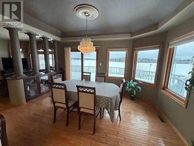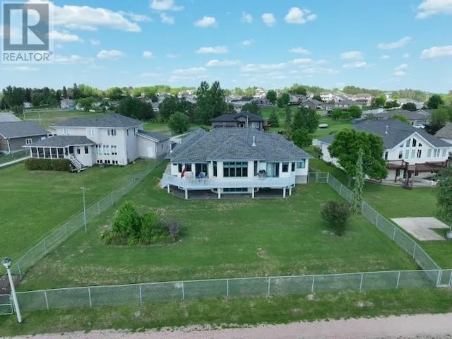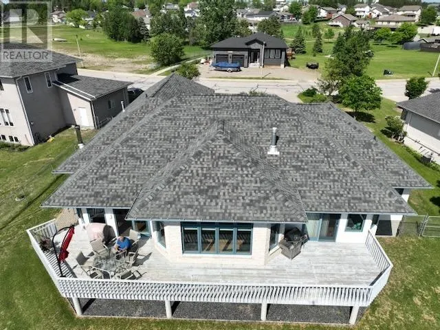 South on Van Horne, turn right on Wabigoon Drive, turn left on McMillan Ave., turn right on Edgewater Drive This is one of the most beautifully appointed homes in the region, showcasing exceptional craftsmanship and quality finishes throughout. This custom-built bungalow features 3+1 bedrooms and 3 ½ baths. The gourmet kitchen is a chef's dream, with updated granite countertops, a glass backsplash, a center island with a Wolf induction cooktop, and a separate island nook with bar stools. The formal dining room boasts a 9-foot tray ceiling, a built-in China cabinet, and patio doors that open to a river-facing sun deck. It also includes a custom dining table. Hardwood flooring flows throughout the home, while the great room offers a 10-foot ceiling, a gas fireplace, a wet bar, and breathtaking river viewsâperfect for enjoying stunning sunsets. The master bedroom features 9-foot coffered ceilings and a walk-in closet. The four-piece ensuite includes a luxurious 2-person hot tub and a separate shower. A full main bath includes a one-piece tub/shower. The spacious foyer welcomes you with a 12-foot vaulted ceiling and an upper window that floods the space with natural light. The well-sized laundry room offers front-load laundry appliances, a sink, a sewing counter, and a storage/pantry closet. The triple-car heated garage is equipped with two auto door openers, a cleanup sink, and a central vacuum system. The lower level is an entertainer's dream, complete with a wood-burning fireplace, a pool table area, a games room, a spare bedroom, a full bath, and a wet bar. The home has been updated with a new gas-forced air furnace and HVAC system. Additionally, an intercom system is included. The fully landscaped yard features fencing and a large Unistone parking apron. This is a top-quality, move-in-ready home that offers both comfort and luxury. (id:27476)