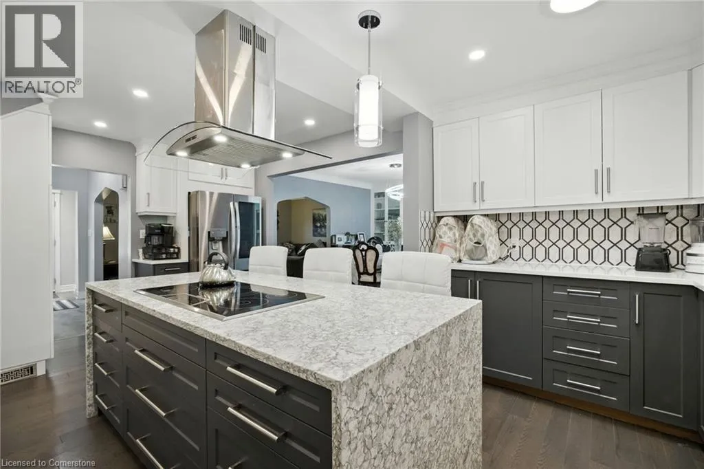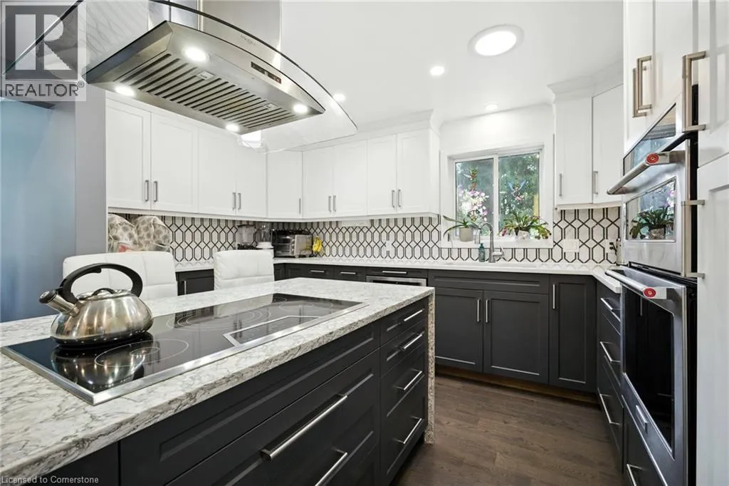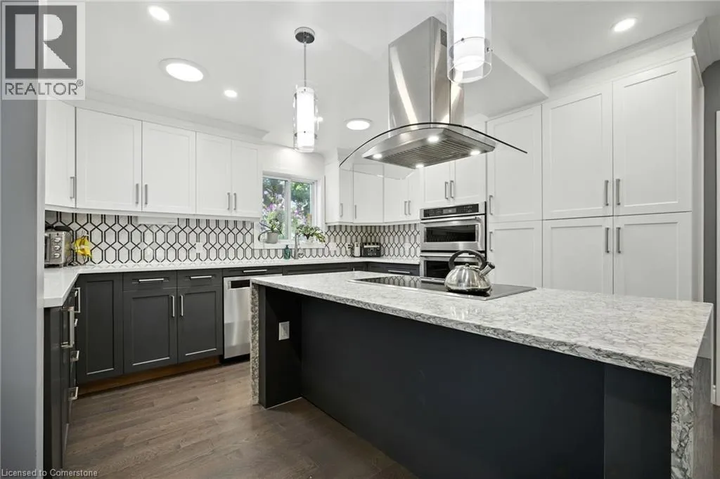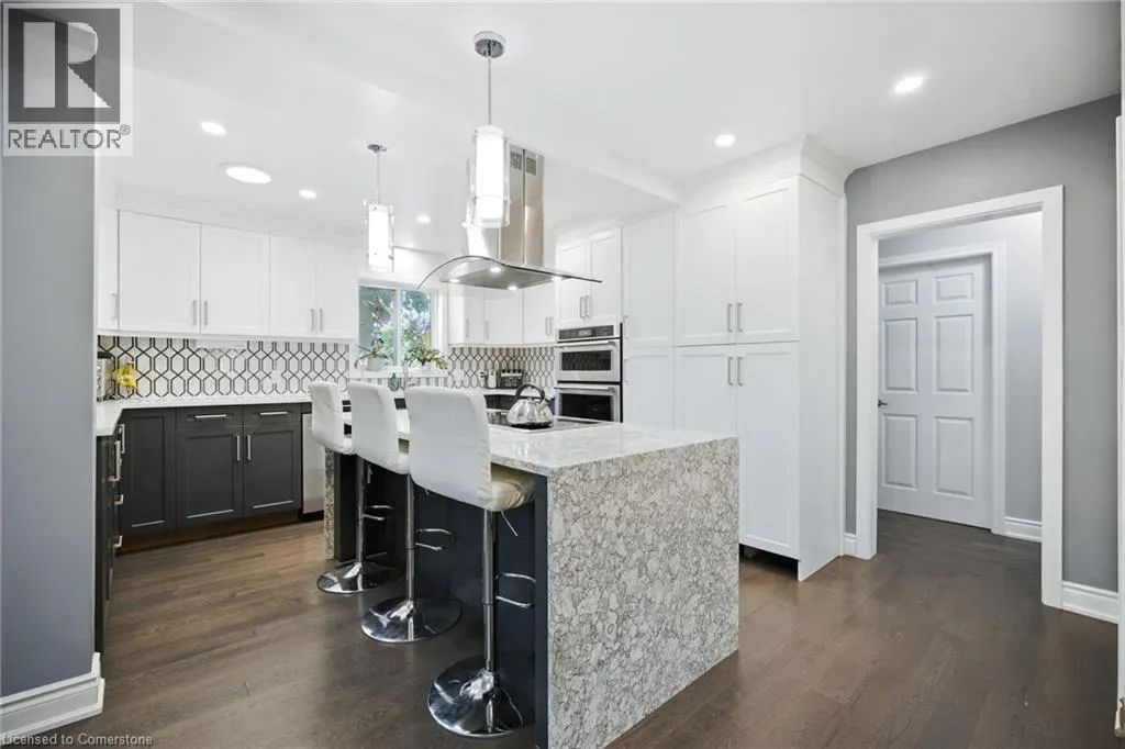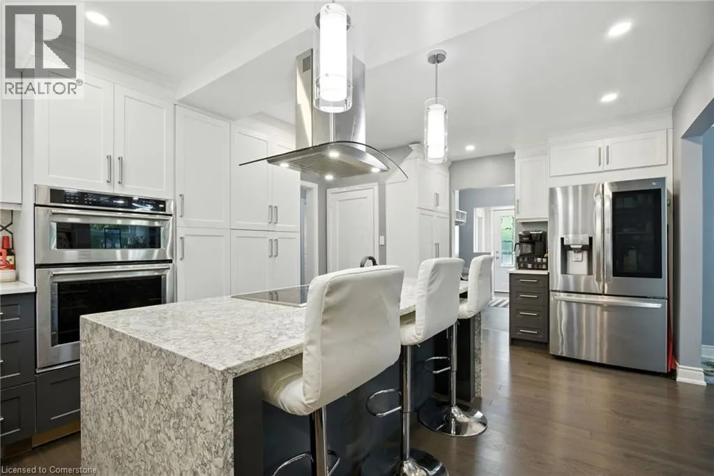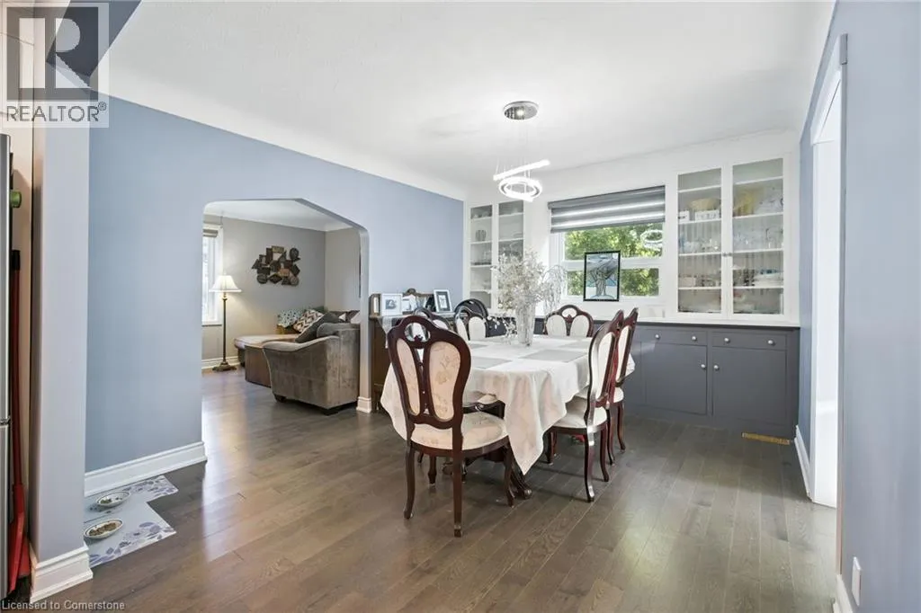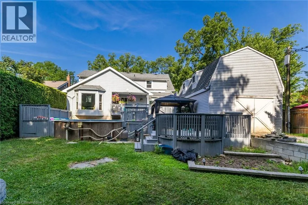Mill St and Wellington St S Welcome to 55 Wellington St S, located in the much sought after community of Dundas. this 6-bedroom / 3-bathroom 2300 square foot family home is perfect for a large, growing family. There is a 750+ square foot detached garage that has 100-amp service and a loft space that could be used for storage, office space or additional living space. The fully landscaped backyard space provides complete privacy for entertaining, family gatherings or general peace and quiet along with a custom built deck that surrounds an above-ground heated pool and a cozy fire pit completes the space. All appliances are included. The interior is tastefully designed to provide a modern, yet rustic look. Located close to shopping, parks, public transportation, school's, hospitals, shops and restaurants. (id:27476)
