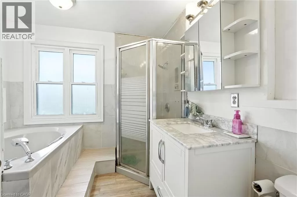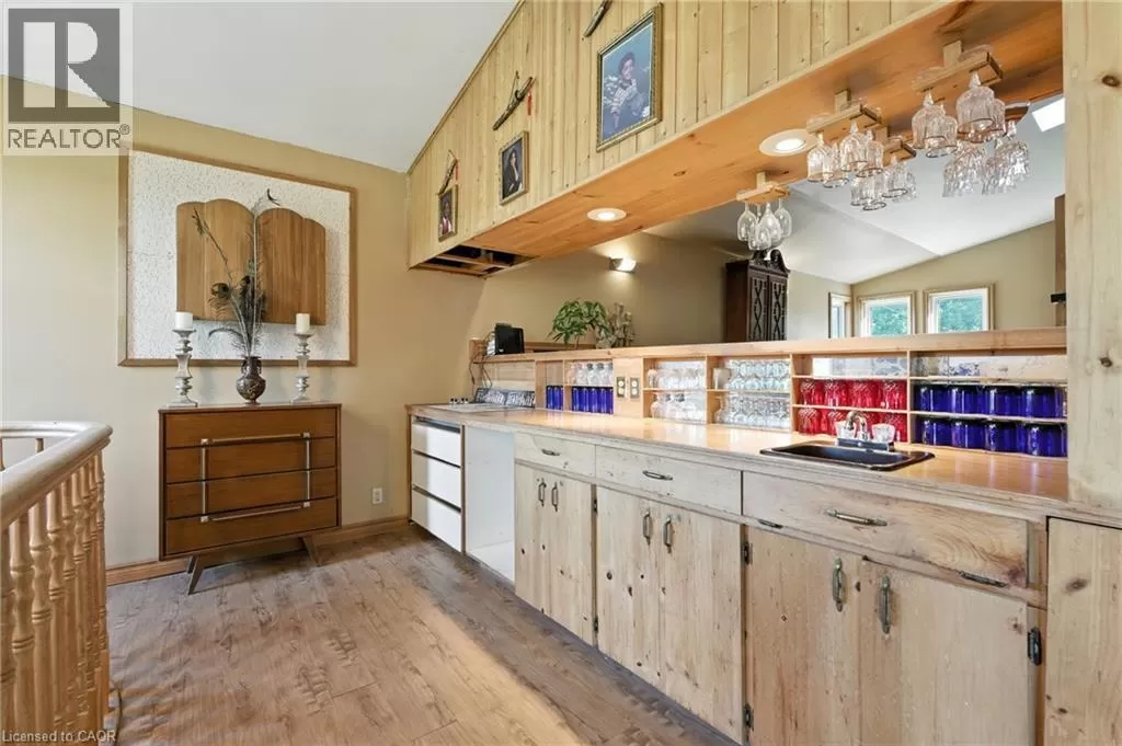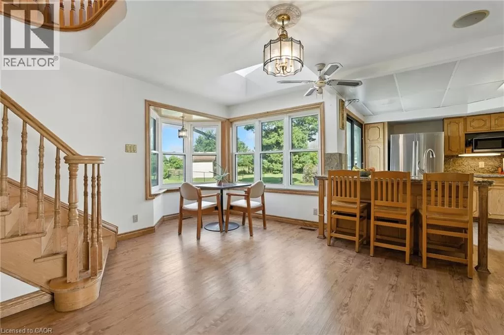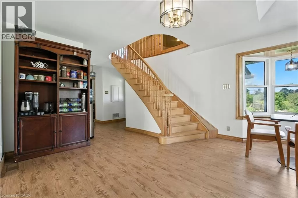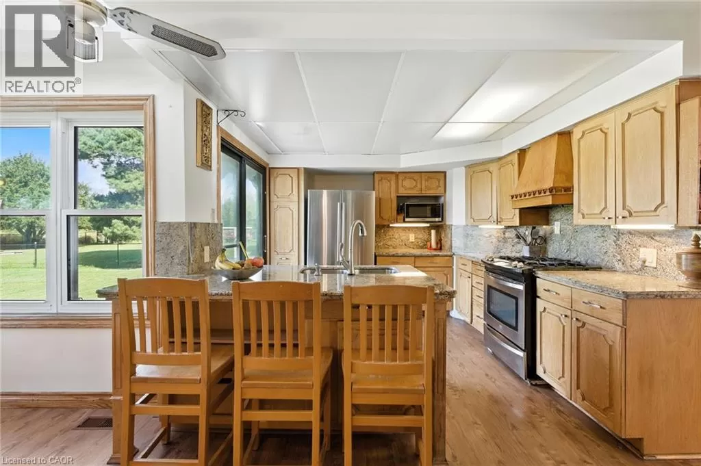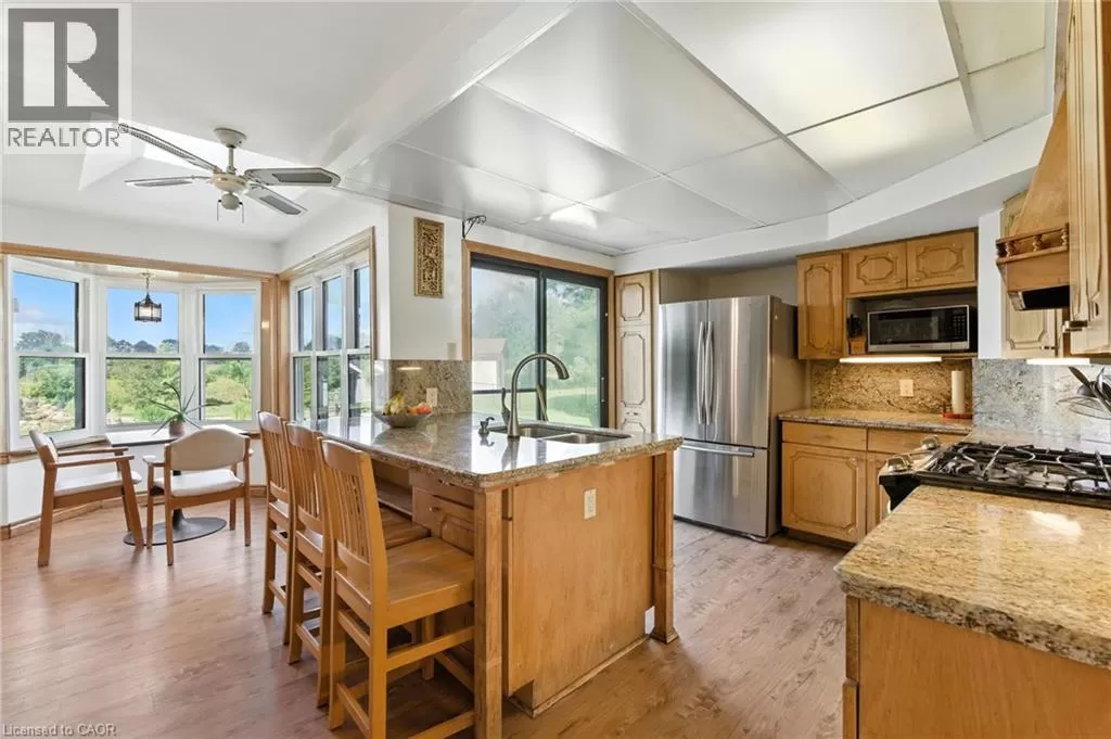 Hwy 5 past Sydenham Rd, before Ofield Rd N Bring your vision and creativity to this incredibly spacious and unique two-storey home on a premium 100' x 150' lot backing onto open fields! Offering over 3,500 square feet of living space, this one-of-a-kind and functional layout has amazing potential for a multi-generational setup. The main level features a large eat-in kitchen with granite countertops and gas stove, three generously sized bedrooms, main-floor laundry, and oversized living spaces throughout. The upper level is home to a massive primary suite with ensuiteâperfect for a private retreat and family room with high ceilings and a wet bar. All rooms are impressively sized, offering endless renovation opportunities. Located just minutes to Dundas, Waterdown, Burlington, Hamilton, major highways and the GO Stationâthis is a fabulous location to invest in and transform into your dream home! Donât be TOO LATE*! *REG TM. RSA. (id:27476)