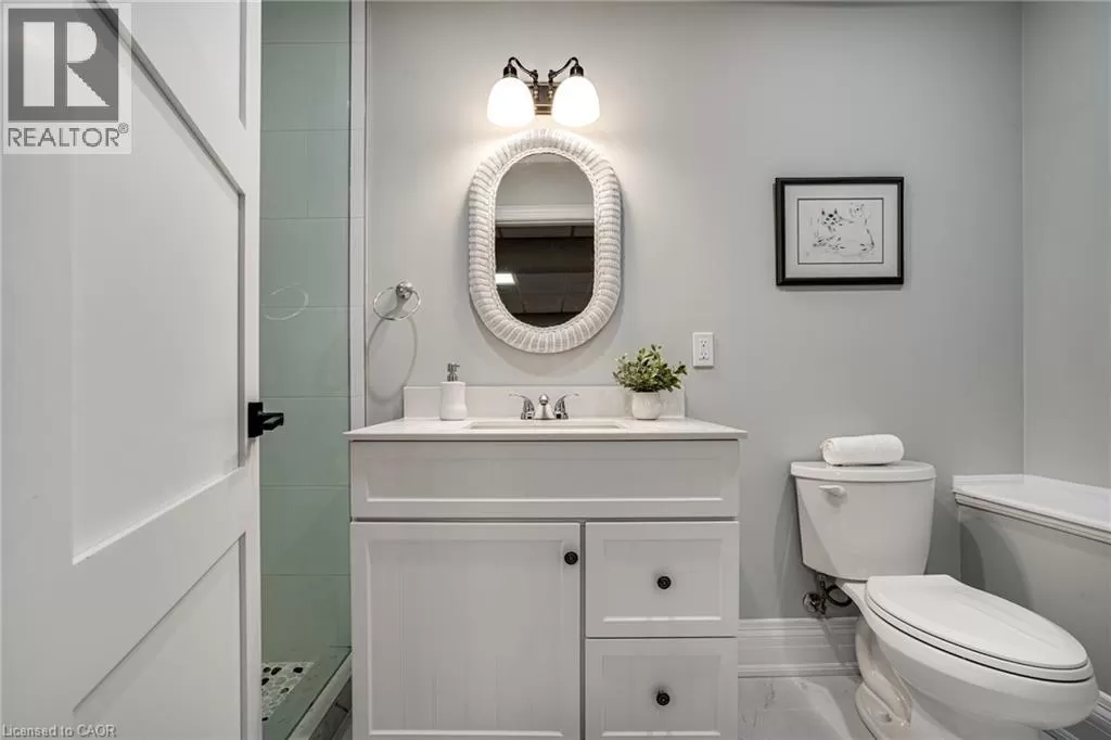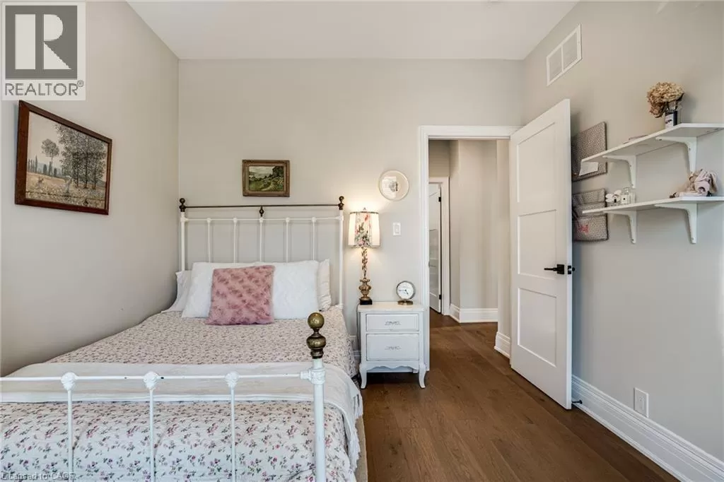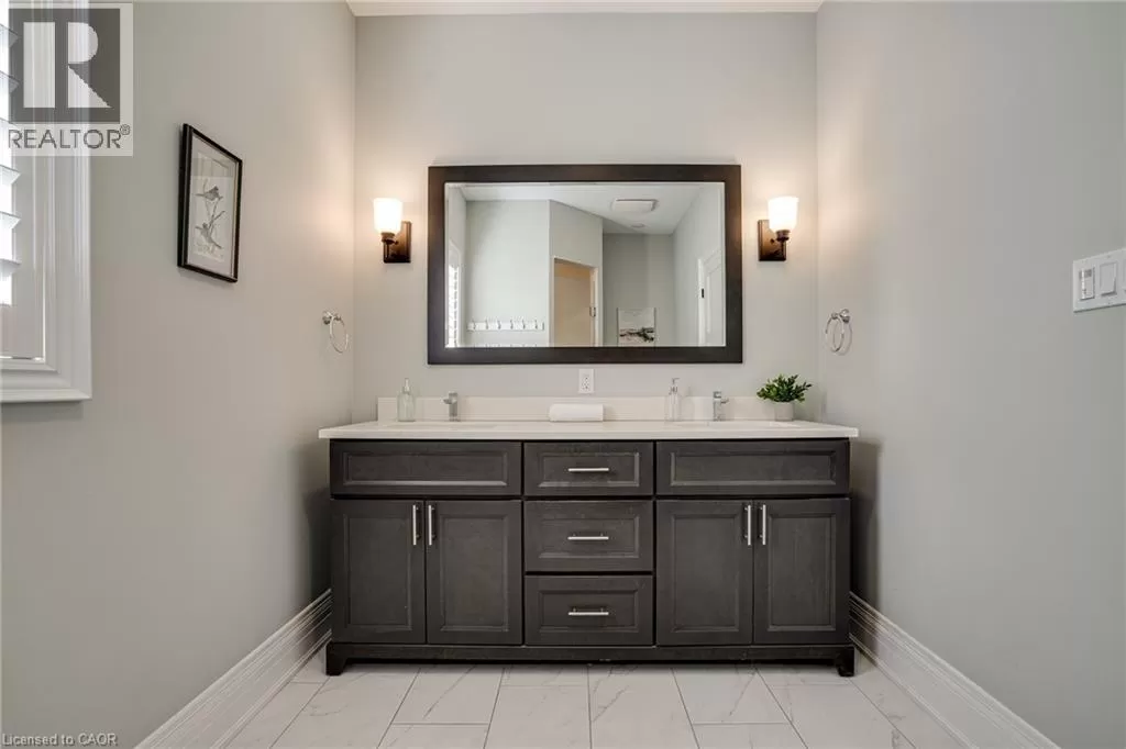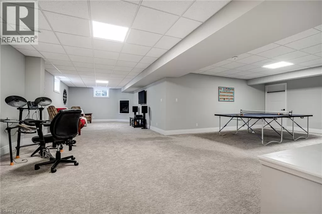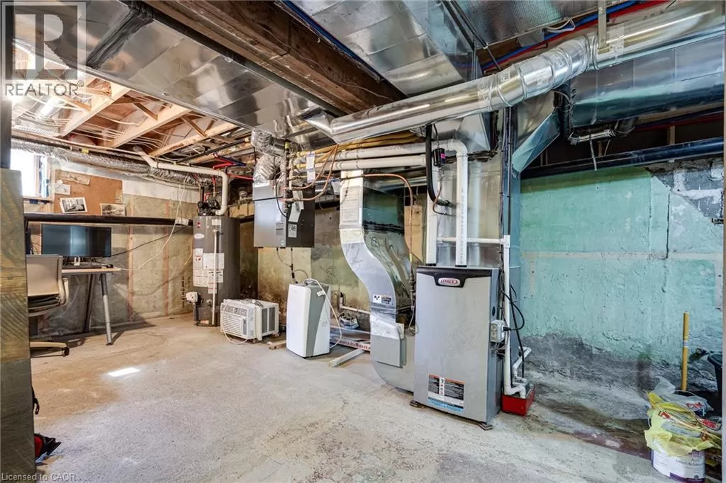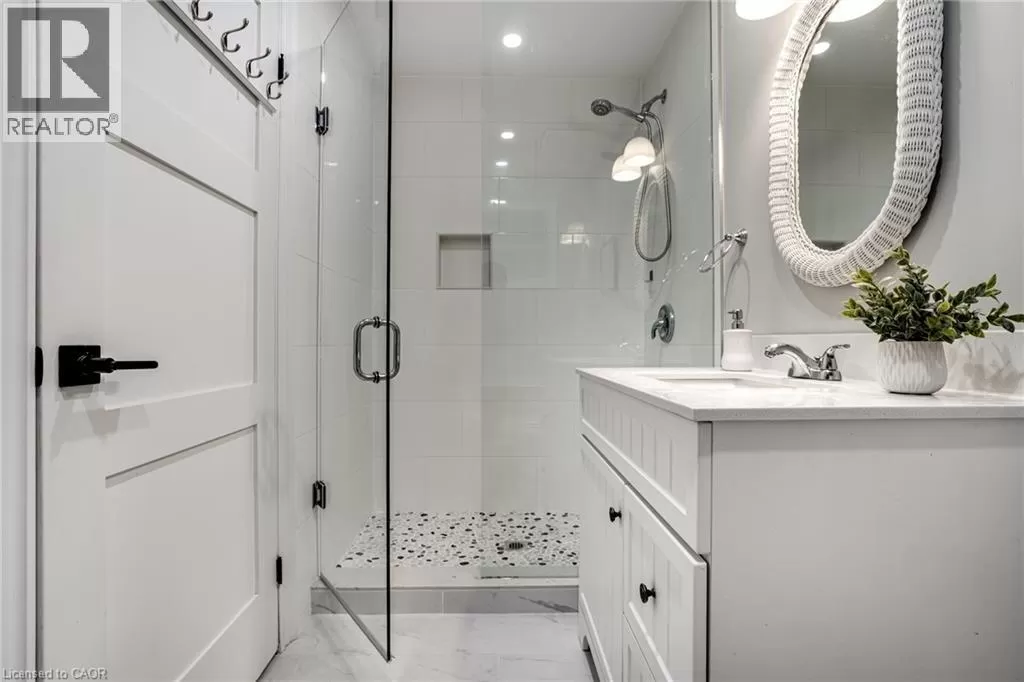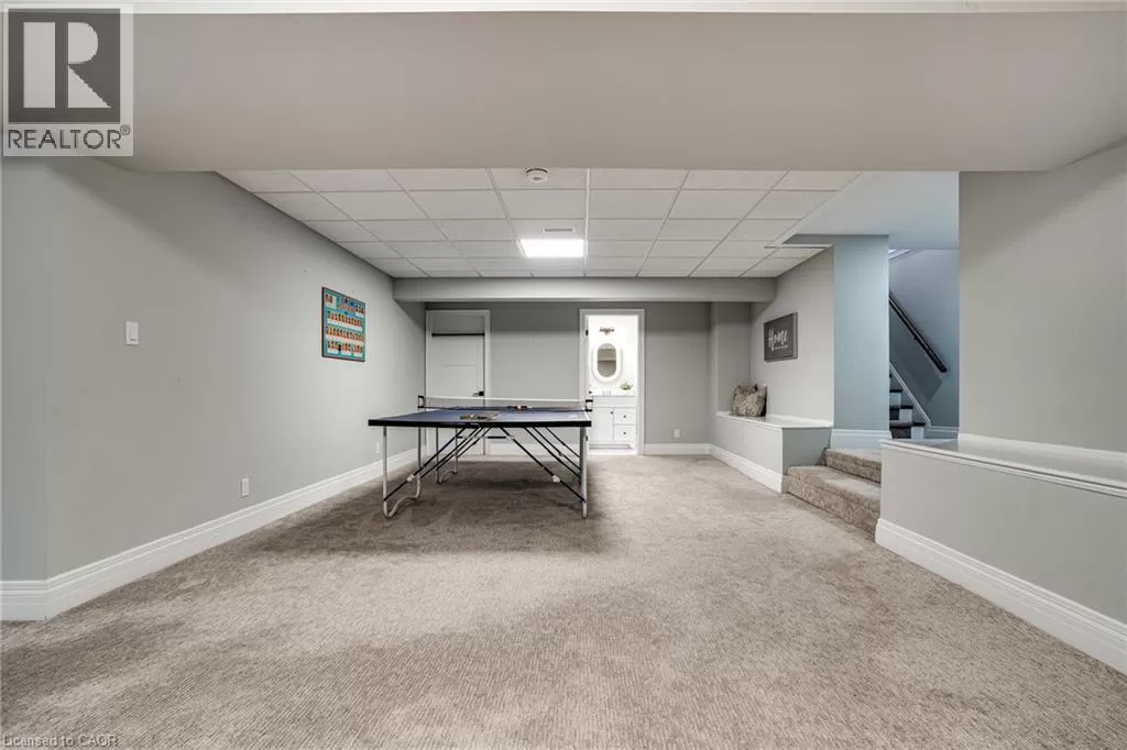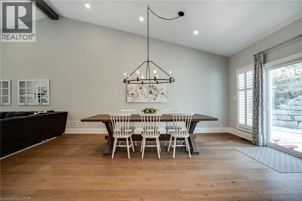 From Governors Rd turn onto Creighton Rd, turn left onto Ann St, left onto Sullivan's Lane This remarkable custom-built bungalow is designed to impress, showcasing almost 3,400 square feet of finished living space with style and ease. Perfectly situated in the heart of Dundas, this home combines privacy with convenienceâjust steps from scenic trails, top-rated schools, the arena, community centre, and charming downtown shops and dining. Inside, soaring vaulted ceilings, engineered hardwood floors and sun-filled open spaces create a welcoming atmosphere. The living room centers around a stunning gas fireplace with brick surround and rustic wood mantle, while the dining area flows seamlessly to the backyardâperfect for entertaining. The gourmet kitchen is a chefâs dream, complete with stainless steel appliances, a gas range, quartz countertops, abundant cabinetry, and a striking island with butcher block breakfast bar. The luxurious primary bedroom suite is your private retreat, featuring a spa-inspired ensuite, walk-in closet, and sliding glass doors leading directly to the backyard. Two additional bedrooms, a 4-piece bathroom, laundry, and inside access to the oversized 2-car garage complete the main level. The fully finished lower level expands your living options with a spacious L-shaped recreation room, a guest bedroom, 3-piece bath, and generous storage. Complete the wow factor when you step outside to your own backyard paradise: a two-tiered retreat with an inground pool, a large workshop/shed, and a wooded backdrop that offers both beauty and privacy. This is more than a houseâitâs a lifestyle. Donât miss the opportunity to call this breathtaking property your forever home! (id:27476)