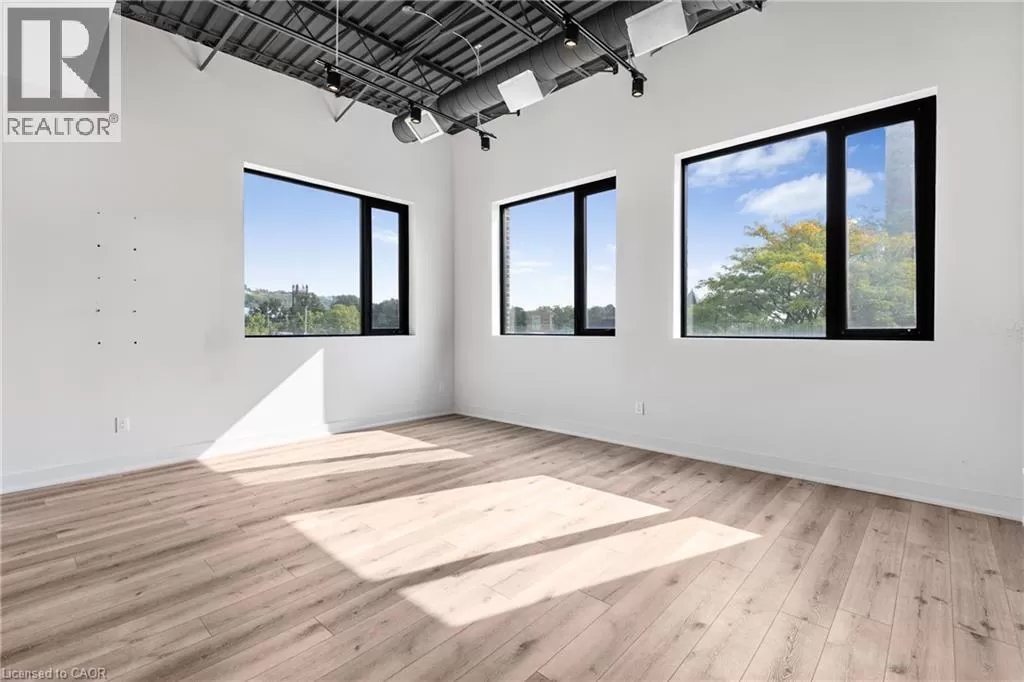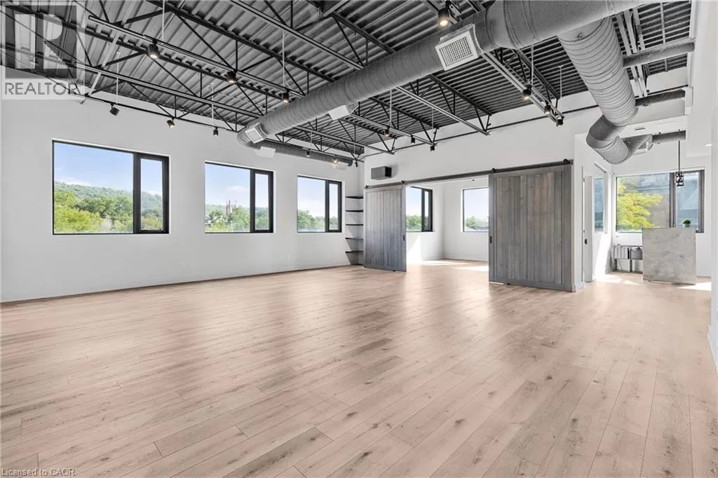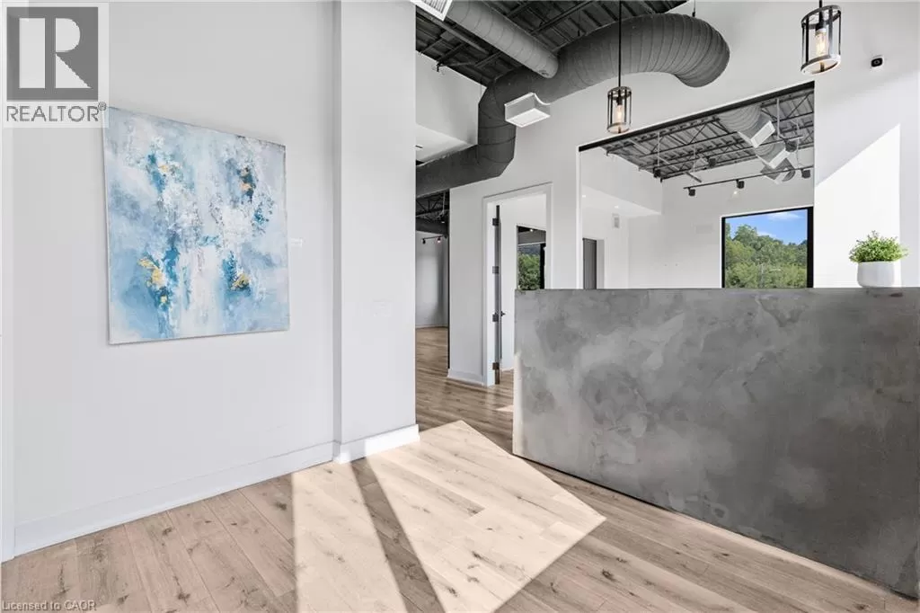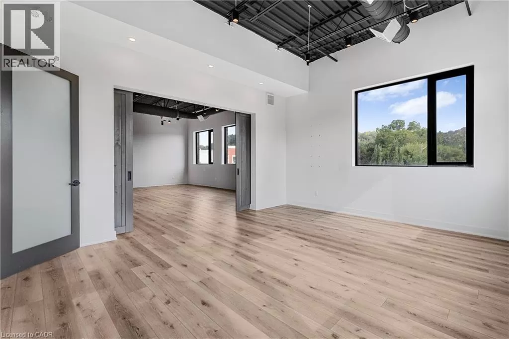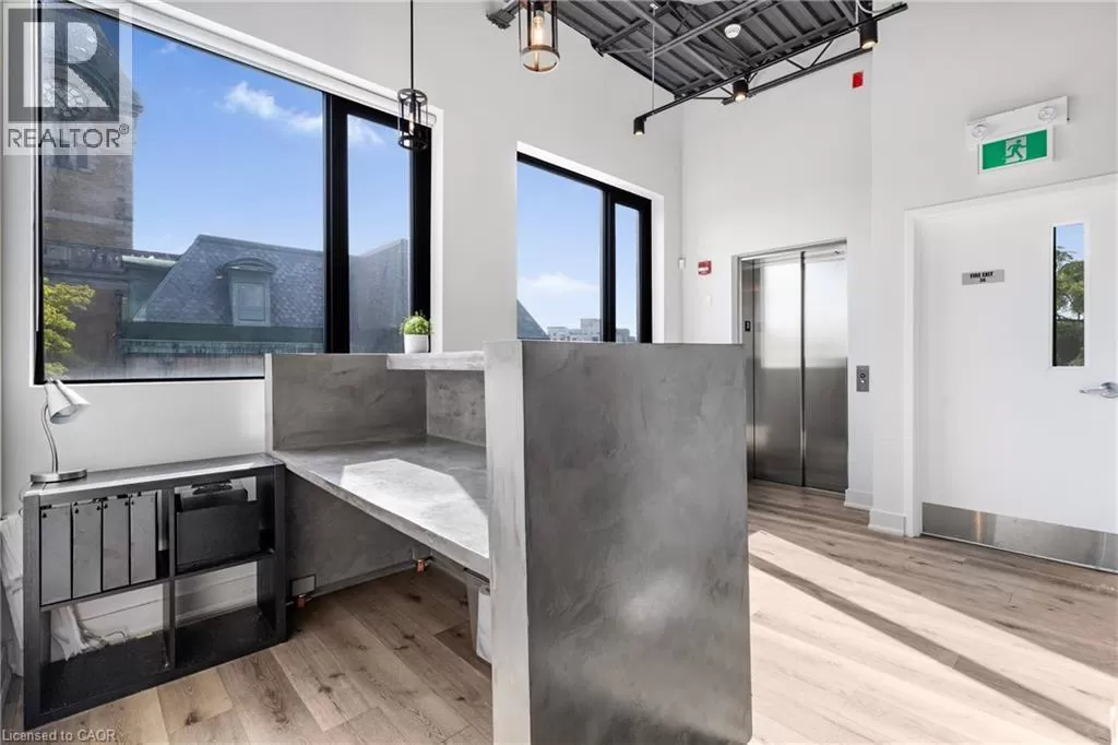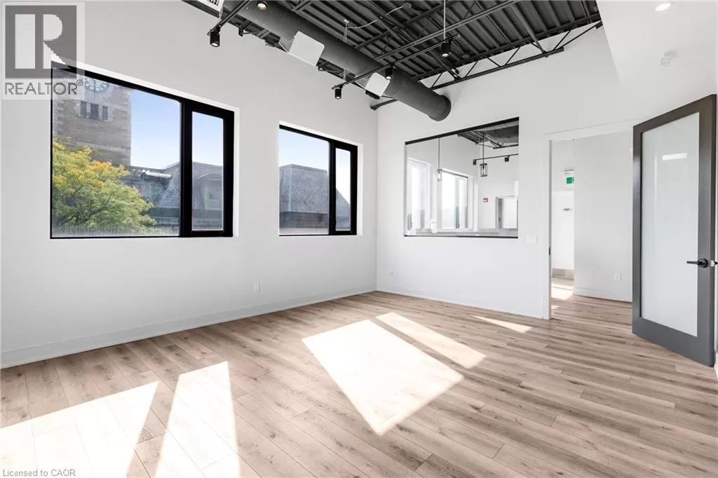 West on King Street Left on McMurray Located on the third floor of a professional building along the high-traffic Dundas corridor, this modern 1,700 sq. ft. commercial space is fully finished with modern high end laminate flooring and move-in ready for medical or professional office use. The unit features a spacious and bright layout with large windows, and a welcoming reception area with direct elevator access. It also includes two restrooms, a private office with a glass window overlooking the main area. Separate rear entry. This unit is wheelchair accessible. Upgrades include a large stunning barn door, track lighting throughout and open concept space perfect for many uses. The space comes with one reserved parking spot at the rear of the building and is surrounded by other established professional tenants, creating a collaborative and reputable business environment. With high vehicle and pedestrian exposure, excellent natural light, and a turnkey layout, this is an ideal opportunity to position your practice or business in a thriving, transit-accessible location. Possibility to combine with the unit on floor 2 and utilize both floors for any growing business. (id:27476)