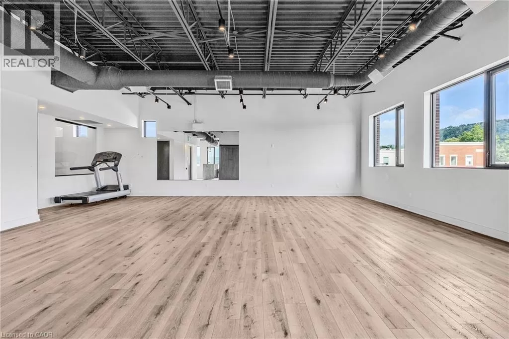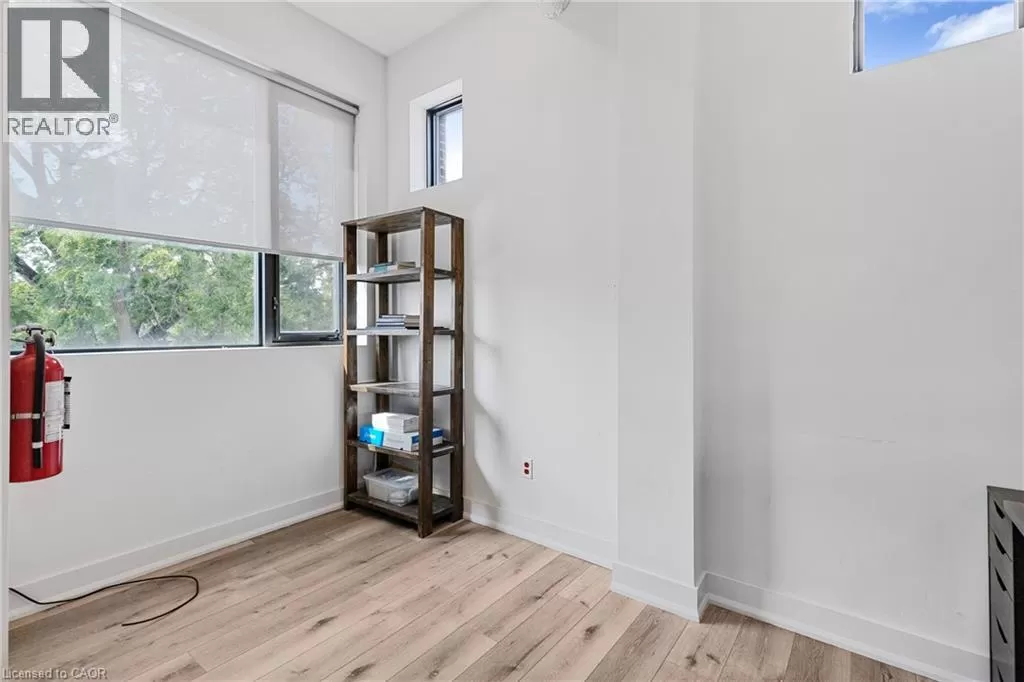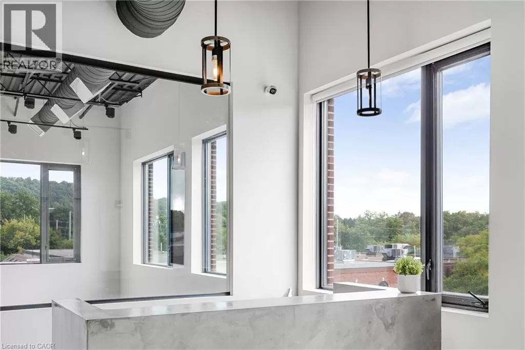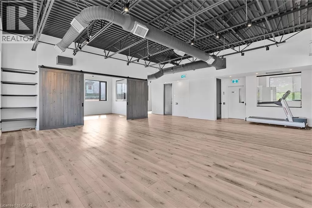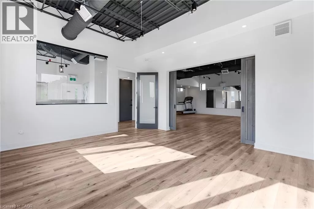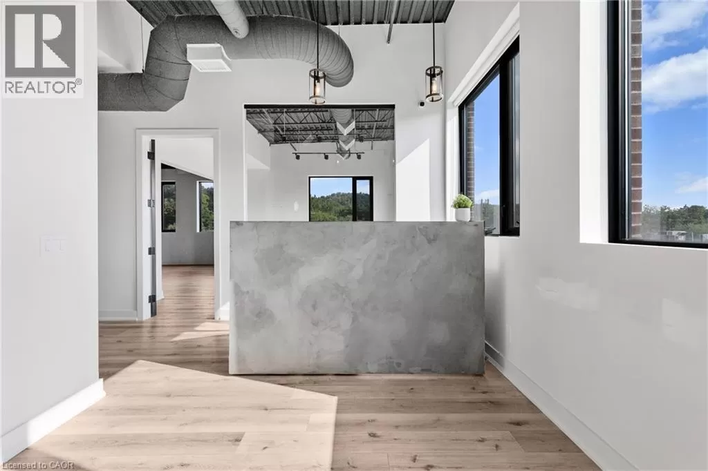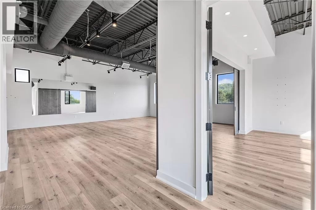 West on King Street Left on McMurray Located on the third floor of a professional building along the high-traffic Dundas corridor, this modern 1,700 sq. ft. commercial space is fully finished with modern high end laminate flooring and move-in ready for medical or professional office use. The unit features a spacious and bright layout with large windows, and a welcoming reception area with direct elevator access. It also includes two restrooms, a private office with a glass window overlooking the main area. Separate rear entry. This unit is wheelchair accessible. Upgrades include a large stunning barn door, track lighting throughout and open concept space perfect for many uses. The space comes with one reserved parking spot at the rear of the building and is surrounded by other established professional tenants, creating a collaborative and reputable business environment. With high vehicle and pedestrian exposure, excellent natural light, and a turnkey layout, this is an ideal opportunity to position your practice or business in a thriving, transit-accessible location. Possibility to combine with the unit on floor 2 and utilize both floors for any growing business. (id:27476)