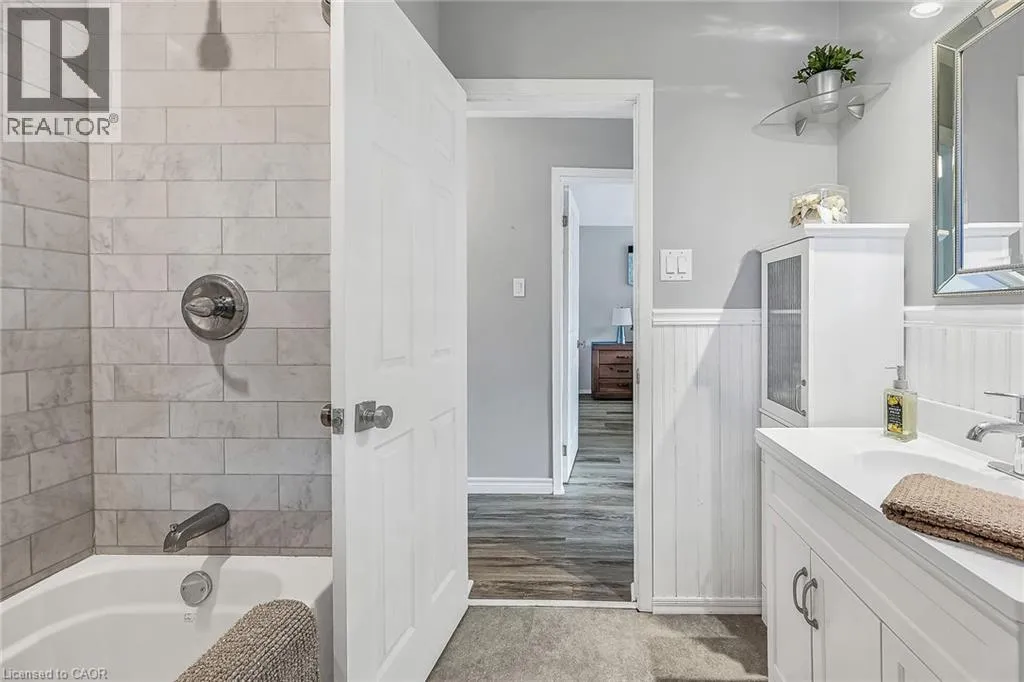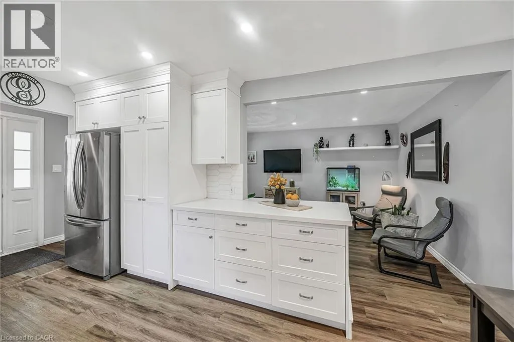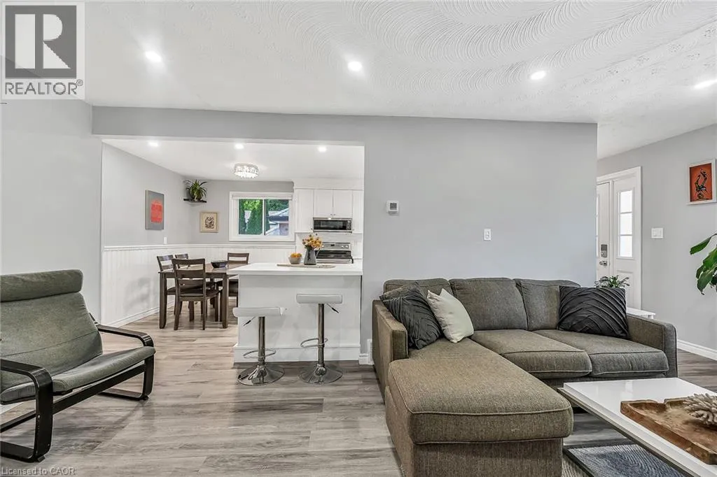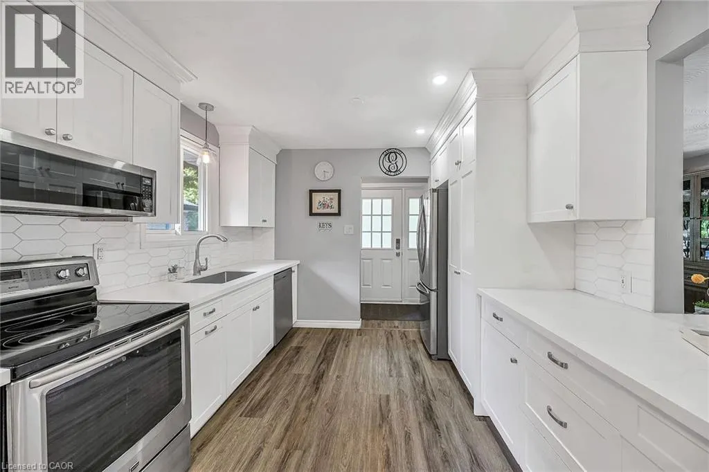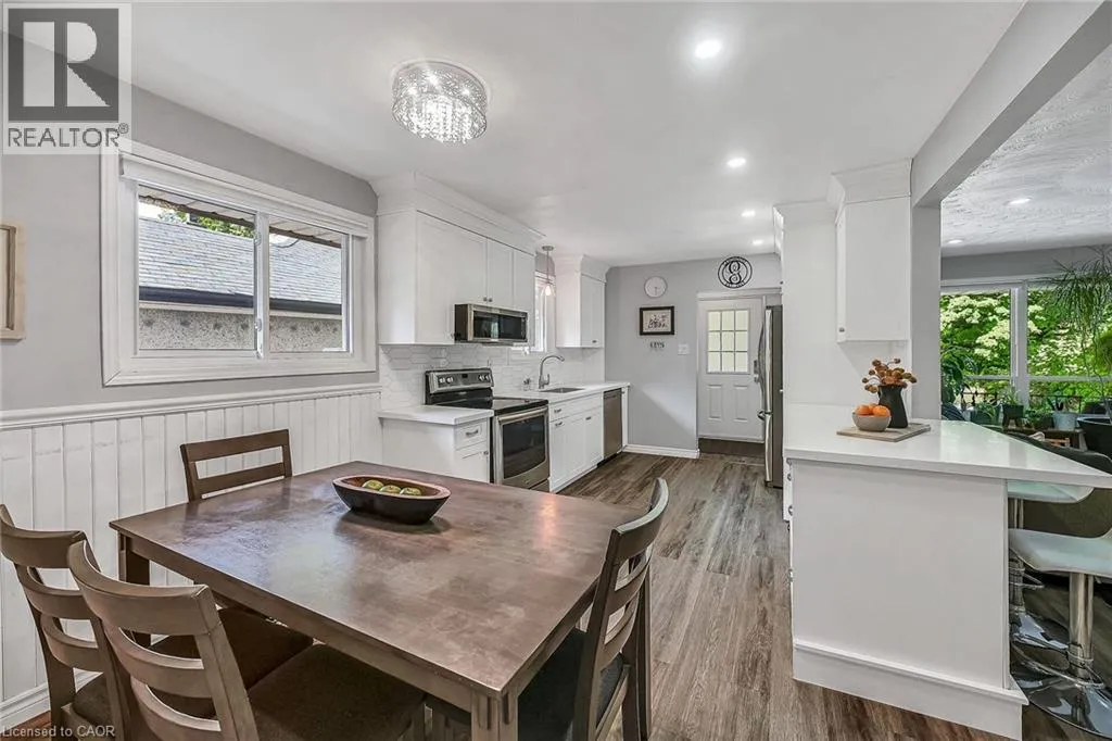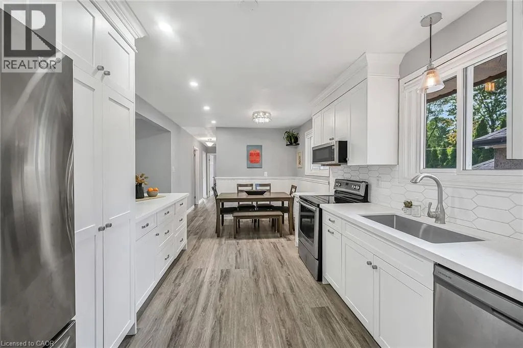 KING ST TO MATILDA TO MACNAB Welcome to this beautifully updated 3+1 bedroom bungalow, perfectly situated just steps from vibrant Downtown Dundas. Walkability doesnât get any better than this â enjoy easy access to shops, cafés, restaurants, and trails, all while living on a quiet residential street. Built in 1978, this home offers the rare advantage of being newer than most in the neighbourhood, combining solid construction with thoughtful modern updates. Inside, youâll find fresh finishes throughout, including all new flooring, new pot lights, updated windows, and a refreshed kitchen featuring quartz countertops, sleek cabinetry, and stainless steel appliances. The main floor boasts a bright and inviting living space, three comfortable bedrooms, and a full bath, creating a warm and functional layout for everyday living. The fully finished lower level, with its own private side entrance, provides incredible flexibility. Complete with a spacious bedroom, 3-piece bath, and generous living area, itâs perfectly set up for an in-law suite, guest quarters, or even an income-generating apartment. Step outside to enjoy the large, fully fenced backyard â a rare find in this location â offering plenty of room for play, gardening, or summer entertaining. A shed with hydro provides extra storage or workshop potential, while the attached garage and private driveway add everyday convenience. With its unbeatable location, modern updates, and versatile living space, this Dundas bungalow is a rare opportunity not to be missed! (id:27476)