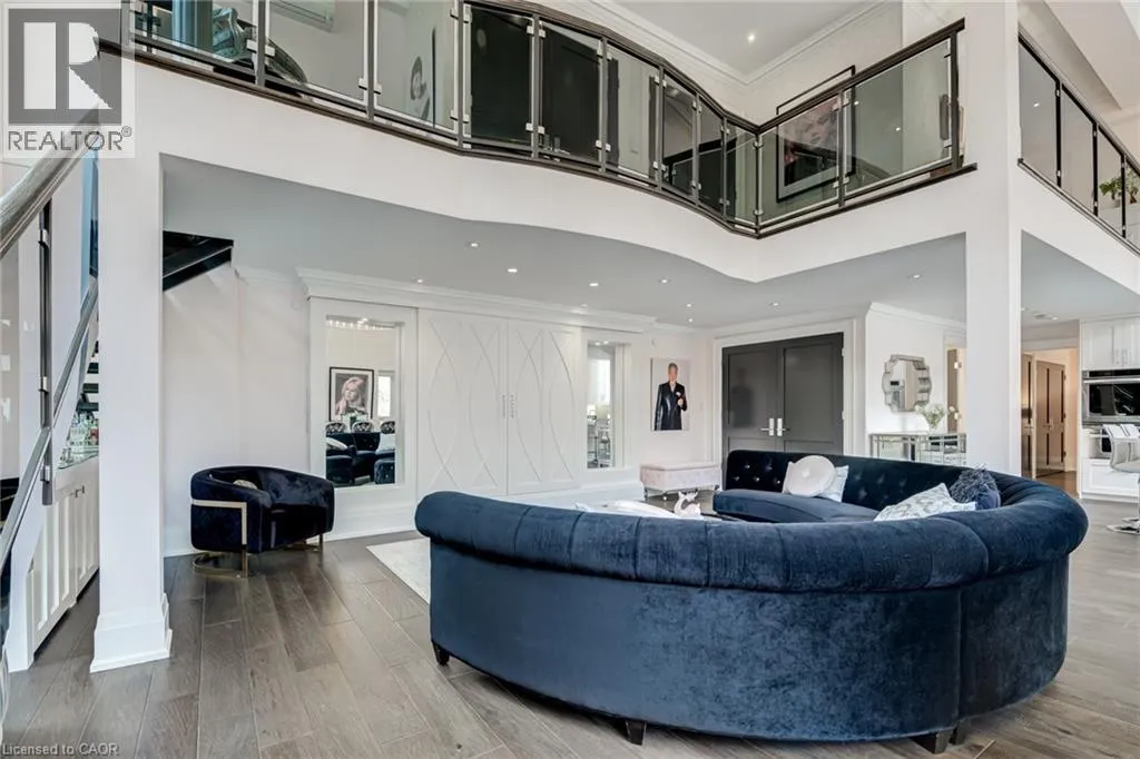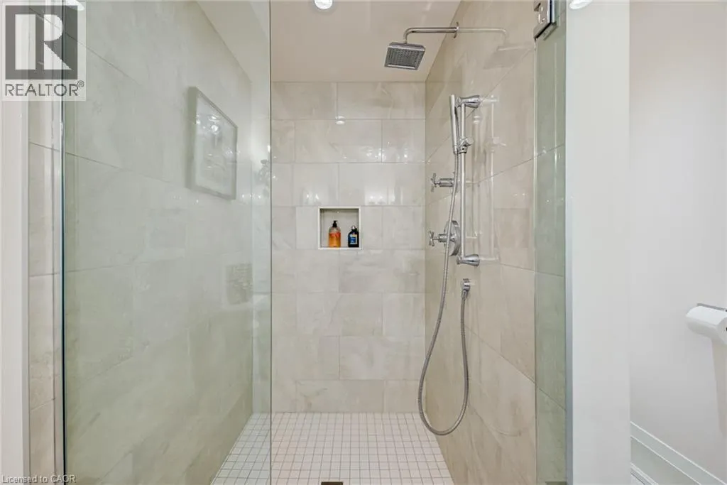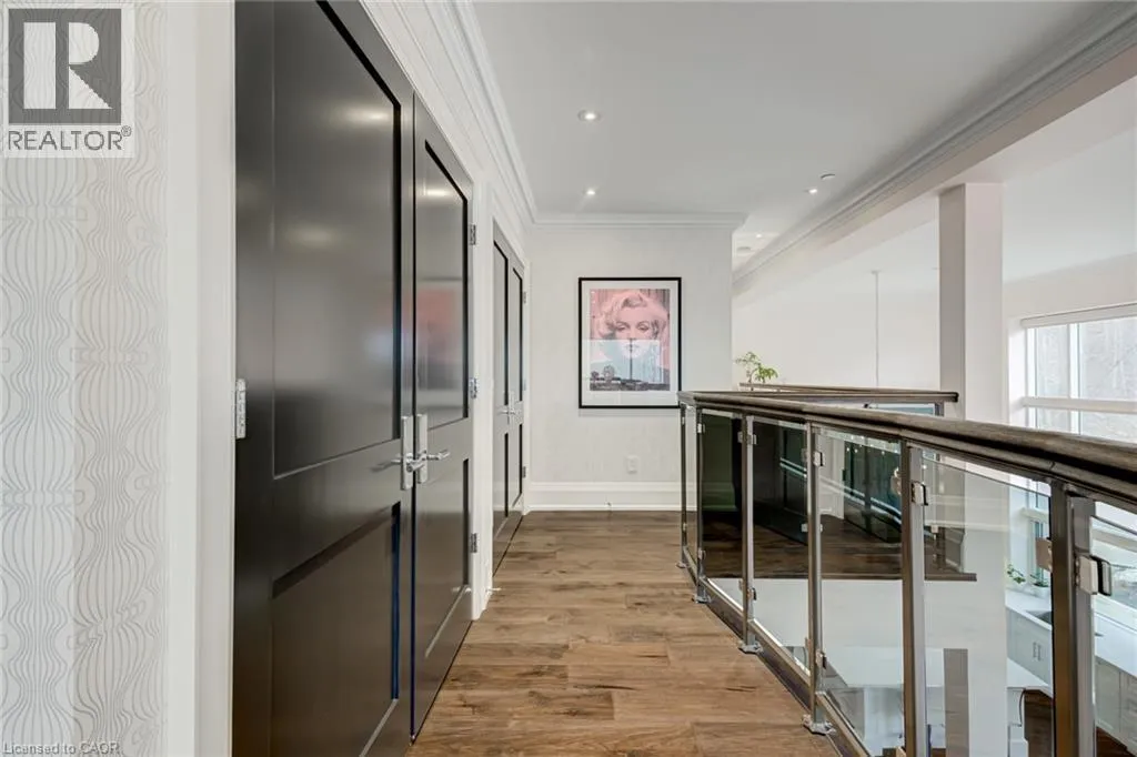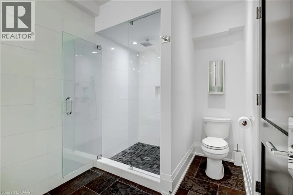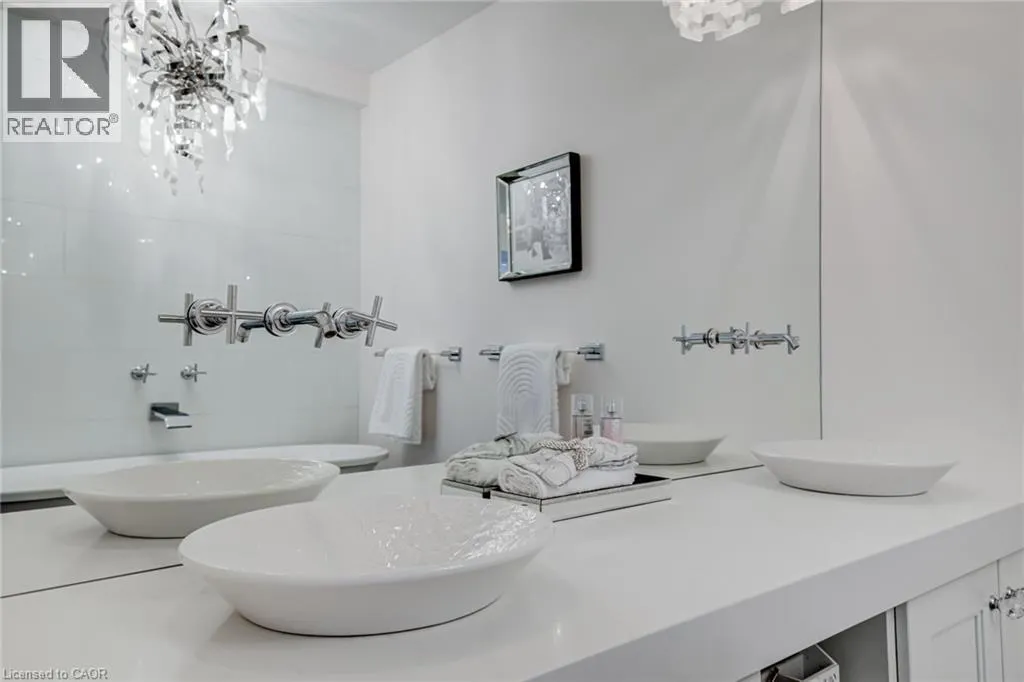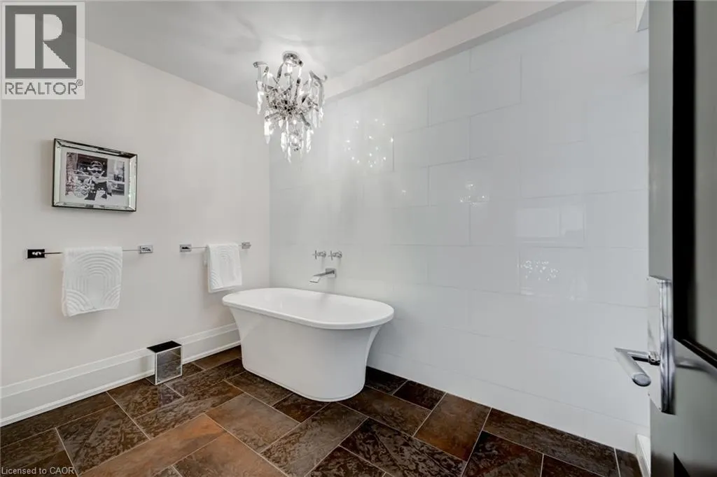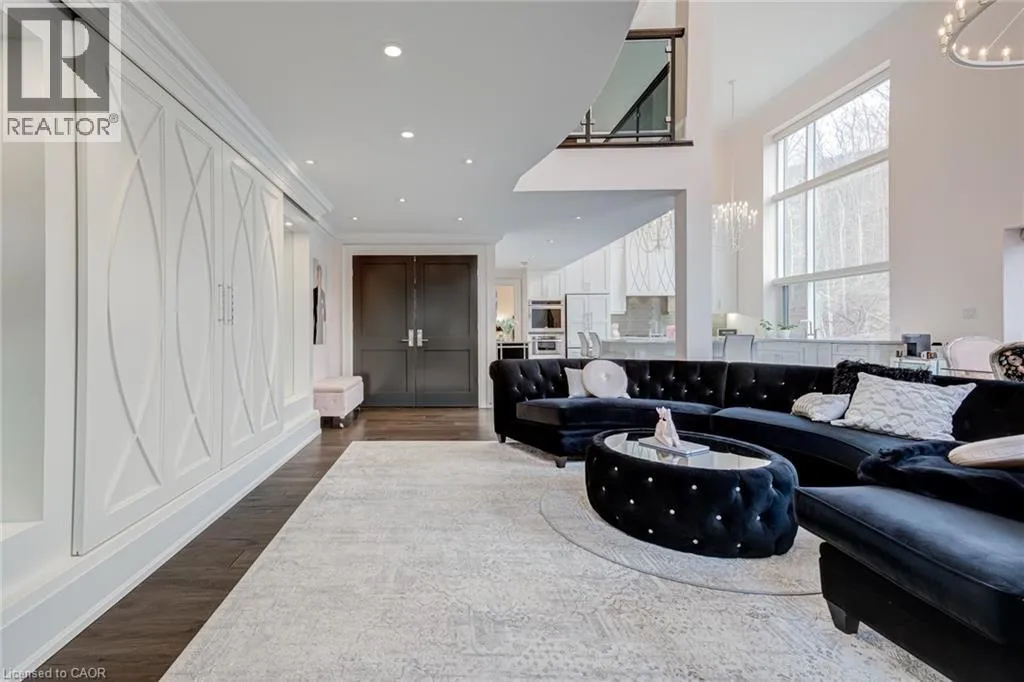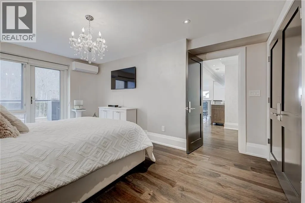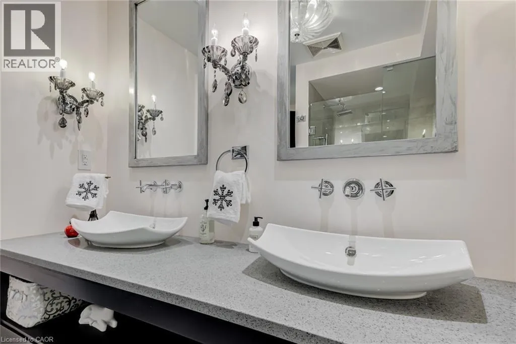 Highway 403 to Main Street West to Cootes Drive - Turns into King Street West. Visitors parking is available off Bond Street West. Stunning luxury at the District Lofts! Circa 1929 this boutique building was completely rebuilt in 2013 offering only 44 unique units. Unit 215 is one of the largest two units offering a rare opportunity for the discerning buyer. An over-sized double-car garage and a private entrance make it feel like living in a home without the exterior maintenance. Enjoy the grandeur of this loft style 2-storey condo. A spectacular open living space filled with natural light offers a 17-ft ceiling highlighted by a dramatic Restoration Hardware chandelier and breathtaking views of the Dundas Peak. The stunning gourmet kitchen has extended height cabinetry, high-end appliances, quartz counters and a large island with seating for six. This unit offers two spacious bedrooms and two spa-like bathrooms with upgraded fixtures. There are two private balconies, full-sized laundry, plenty of custom closet storage and fantastic upgrades: trim & millwork, Swarovski crystal handles and motorized blinds. The building offers state-of-the-art in-floor radiant heating and this unit has a brand-new a/c system. Amenities at the Lofts include a fitness studio, large locker exclusive to the unit, and a roof top patio for entertaining or relaxing (enjoy the views and tranquil sounds of the waterfall). Located at the foot of the Dundas Peak just steps to the Bruce Trail, Websterâs Falls, the Dundas Valley Golf and Curling Club and the historic Dundas downtown core with a vibrant mix of shops and restaurants. (id:27476)
