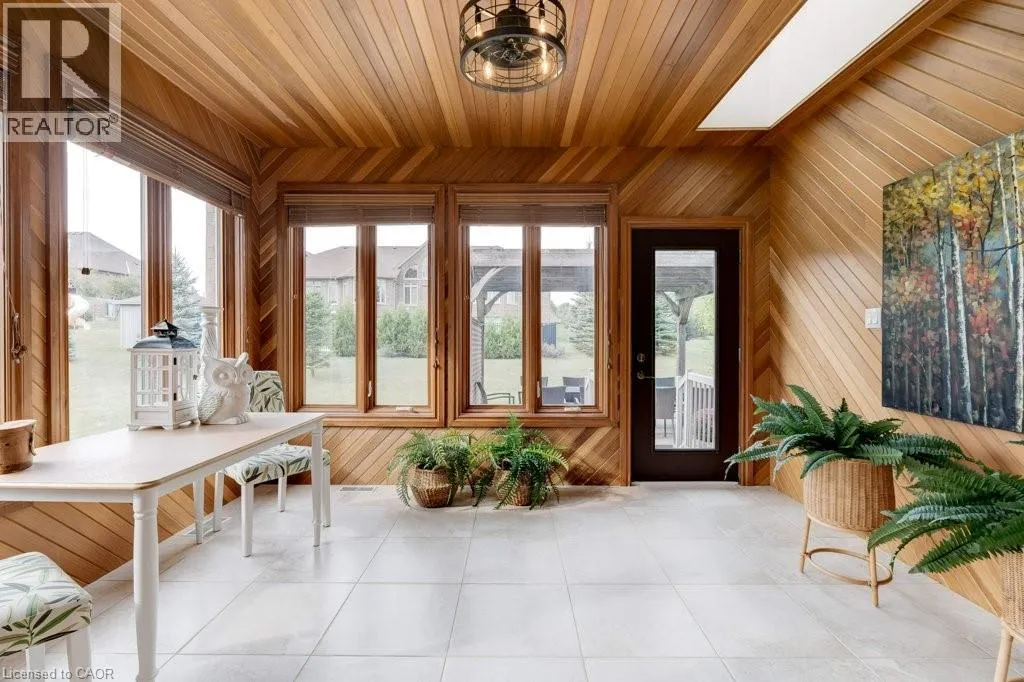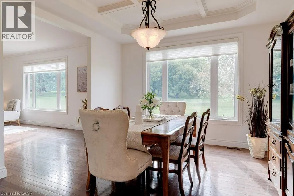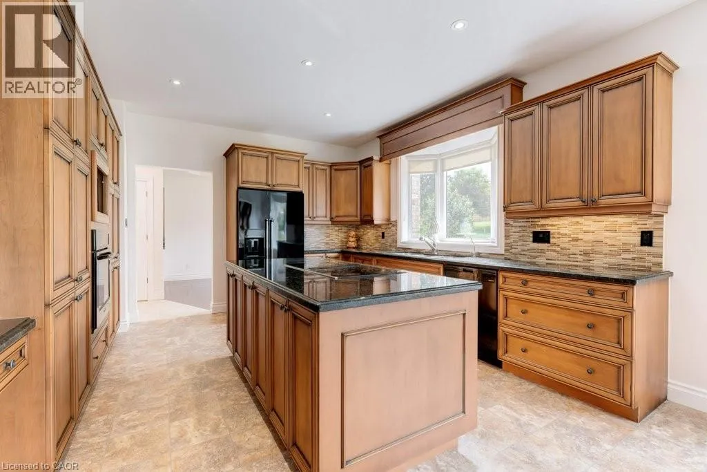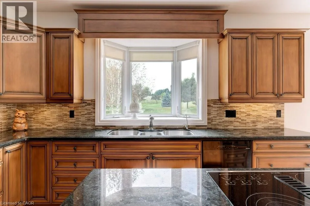 Brock Rd to Harvest Rd to Tews Lane Welcome to over 7,000 total square feet in one of the areaâs most sought-after estate neighbourhoods â just minutes from Spencer Gorge Conservation Area. This home doesnât just check boxes, it rewrites the list. Step inside to a spacious foyer with a walk-in closet that sets the tone for the expansive rooms and views to come. The main floor is an entertainerâs dream with a huge living room, elegant dining room with coffered ceiling, sunroom with walk-out to the patio, and a family room anchored by a cozy gas fireplace. The large kitchen steals the show with generous backyard views and room to create any meal you can imagine. Finished entertaining? Retreat to the primary suite the size of some condos â complete with his-and-her walk-in closets and not one, but two spa-worthy ensuites with heated floors. Another main floor bedroom also has its own ensuite, perfect for guests or extended family. Upstairs adds two large bedrooms, a bonus room, a solar-tube lit four-piece bathroom, and even a walk-in attic for storage. A commercial-grade washer/dryer has your back when laundry day comes. Car lover? The three-car garage with exposed aggregate driveway includes a heated workshop and wheelchair lift for accessibility. Outside, enjoy 1.4 acres of privacy and garden views. The basement with over 3,000 square feet is ready for your theatre, gym, or wine cellar. Efficient geothermal heating/cooling, two water heaters, reverse osmosis, and 400-amp service make you future-ready. Donât be TOO LATE*! *REG TM. RSA. (id:27476)