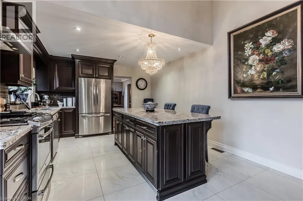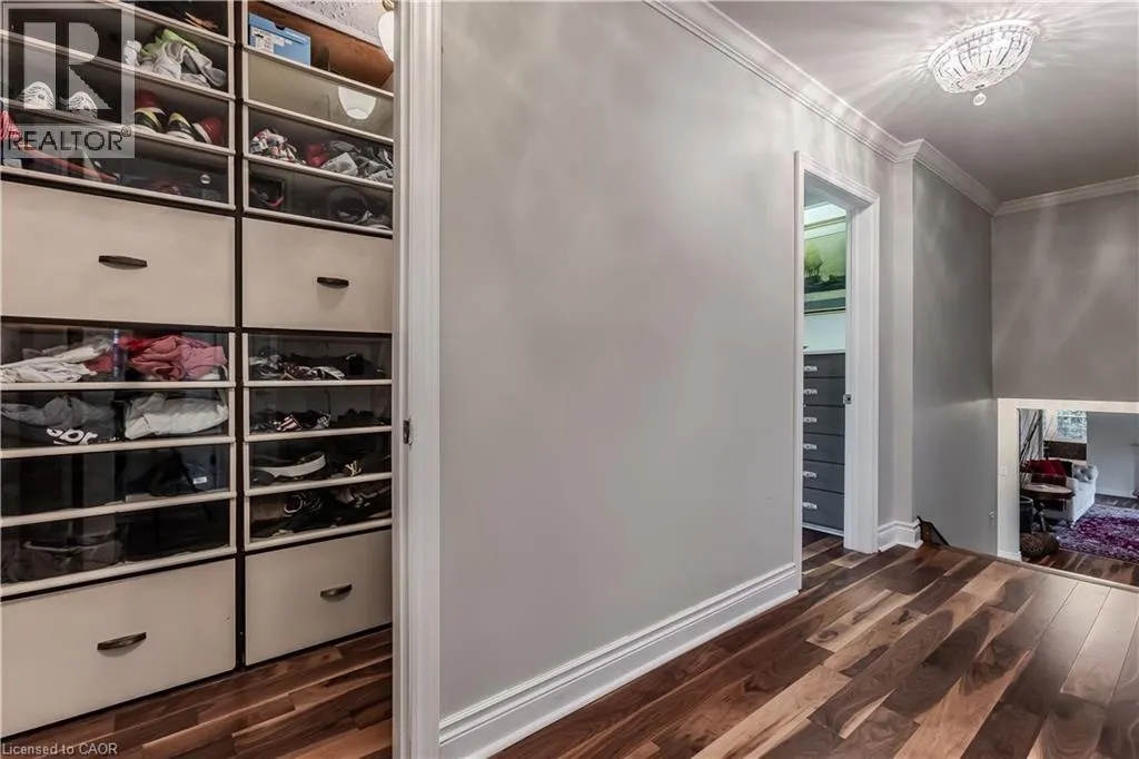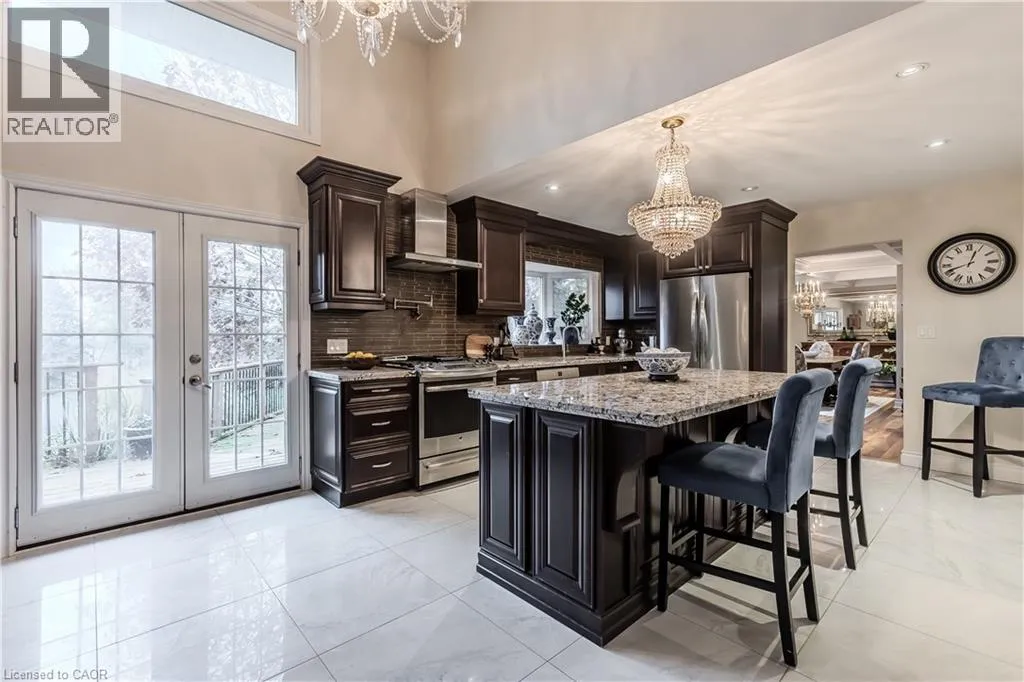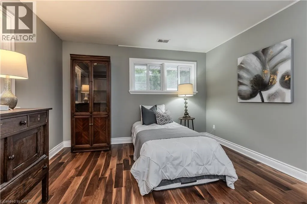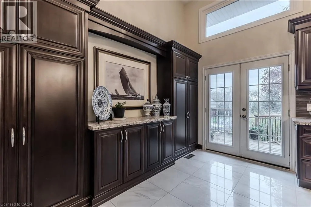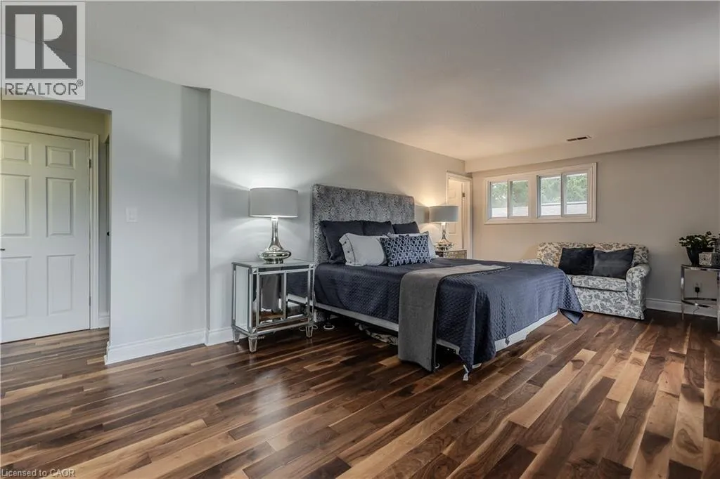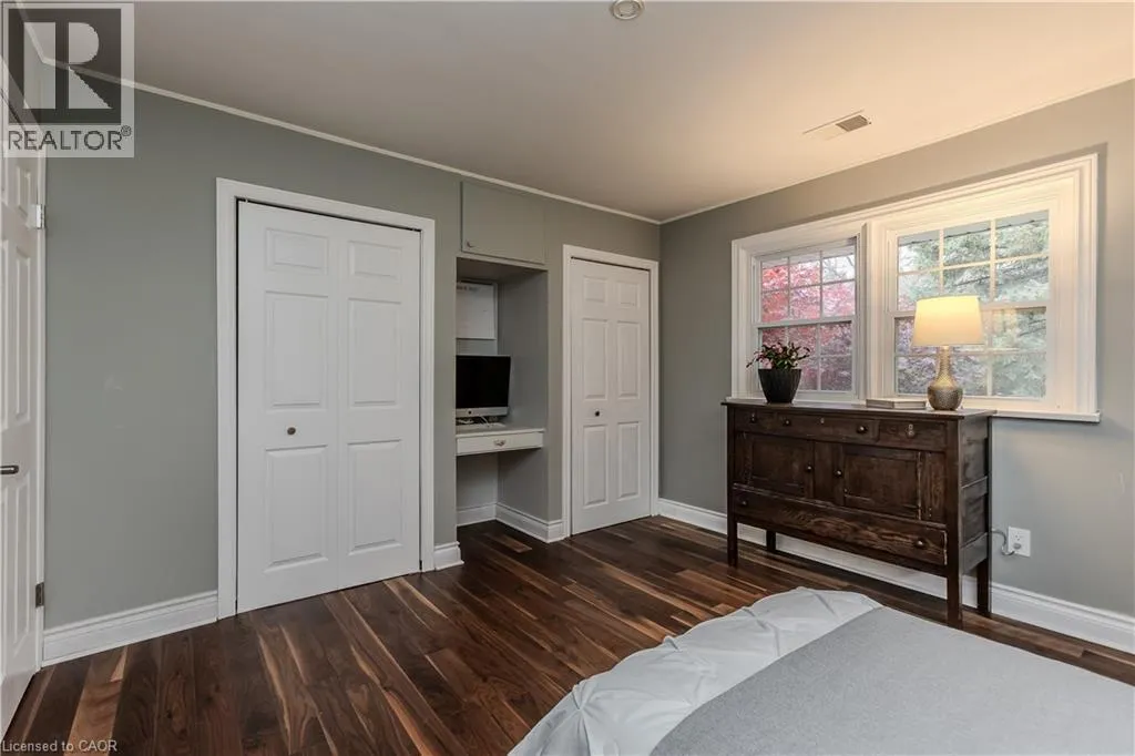 Highway 8 Welcome to this charming 4-level side split, originally crafted for the Grafton family in 1954. Situated on a serene 1.09-acre lot, this property boasts privacy and beauty with mature trees, a long driveway, and ample front yard space accommodating parking for 10+ vehicles, including a 20x40 garage with a lift. Perfectly located, itâs just 3 minutes from Dundas Valley Golf & Curling Club, 5 minutes to quaint downtown Dundas, and close to scenic trails, waterfalls, and major routes. Inside, find a bright, welcoming ambiance with hardwood throughout. The eat-in kitchen leads to a dining room with elegant coffered ceilings. The Great Room on the main level is a showstopper, featuring floor-to-ceiling windows, a wood burning fireplace, one of 5 fireplaces in the home, and an adjoining family room âideal for gatherings. Upstairs, enjoy a private primary sanctuary with views of the escarpment with a 4-piece ensuite, alongside an additional 3-piece bath with a glass shower. The lower level offers a partially finished walkup with a billiard room, which could be used as a fourth bedroom, patio access, storage, utility room, and a rough-in for a washroom. Outdoors, a private backyard oasis awaits, complete with a hot tub, a recently painted (2024) in-ground pool, and expansive views of the escarpment and golf course. New furnace installed in 2022. Don't miss this exceptional Greensville home! (id:27476)