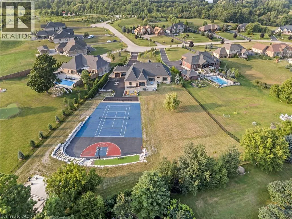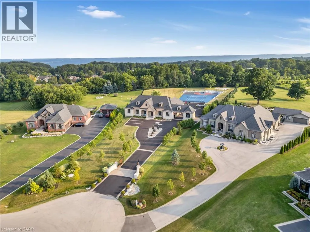 Near Harvest Road and Old Brock Road Discover the epitome of luxury at 47 Tews Lane, a sprawling bungalow on 1.85 acres in Dundas, just 7 Minutes from downtown. This magnificent property boasts over 8,600 sqft of living space with 14 foot ceilings, 6 bathrooms, 3 fully equipped kitchens, a theatre room and a professional grade tennis court. Perfect for extended families, it offers separate entrances for up to 3 households or can be enjoyed as one grand mansion. Car enthusiasts will appreciate the oversized 4 car garage. A rare opportunity for elegant living in a prime location.Call L.A for details of rent to own. (id:27476)
