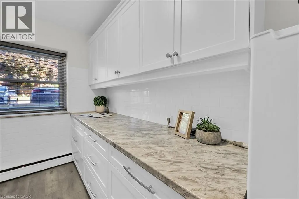 Main St W to Osler Dr to Grant Welcome to Sun Valley Co-operative, Corner unit in a highly-sought after, well maintained, adult-oriented building in the heart of Dundas. This awesome fully renovated 2 bedroom main-floor unit offers modern comfort and convenience just steps from University Plaza, McMaster Hospital and quick access to Downtown Dundas, Ancaster and Hamilton. Over $60,000 in quality renovations (2018-2024) including flooring, lighting, mirrored closet doors, walk-in shower stall with seat, stunning custom kitchen and stainless steel appliances included. This unit comes with great space, is carpet-free, filled with natural light, ground-level private patio, ideal for retirees, empty nesters or professionals seeking turnkey living. Enjoy the wheelchair-accessible main-floor location with easy access to parking-no elevators needed. Extraordinarily well-managed co-op includes property taxes, building insurance, heat, water, cable TV, phone, internet, parking and locker in monthly fee-offering outstanding value. Common laundry, secure entry and beautifully maintained grounds complete the package. Prime Dundas location across from University Plaza, with grocery stores, dining, banks and bus stops just steps away. Minutes to highway 403, Ancaster Meadowlands, Costco, Conservation trails and the charm or Downtown Dundas. A rare opportunity to own a fabulous, move-in ready home in a quiet, friendly community! (id:27476)