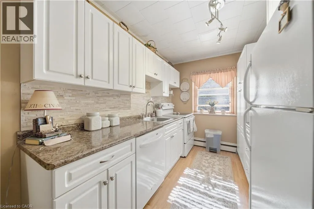 Main St W to Osler Dr to Grant Welcome to 9 Grant Boulevard, Unit 102, in the highly sought-after University Gardens community of Dundas. This bright and well-maintained 2-bedroom, 1-bath co-operative apartment offers easy living in a quiet, convenient location just steps from McMaster University, public transit, shopping, restaurants, and more. This main-floor unit features a spacious living and dining area with large windows that fill the space with natural light. The functional updated kitchen includes all appliances and plenty of storage, while both bedrooms are generous in size. Window coverings are included for added comfort. Enjoy the convenience of the unit being close to your exclusive parking space and wheelchair accessibility. The monthly co-op fee covers heat, water, building insurance, cable TV, parking, and common elements, making budgeting simple. Building amenities include an elevator, visitor parking, and shared laundry facilities. Set in a quiet, mature neighbourhood, this solid brick building offers peaceful surroundings while keeping you close to the best of Dundas and West Hamilton, including hospitals, parks, and community amenities. Perfect for downsizers or anyone seeking affordable ownership in a friendly, well-cared-for community. (id:27476)