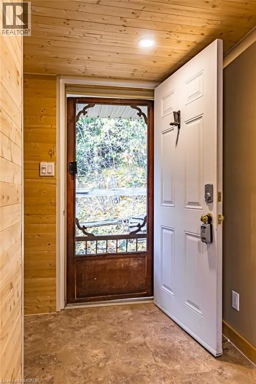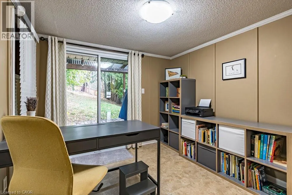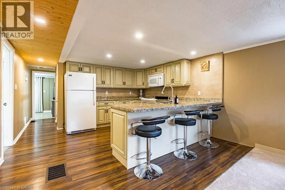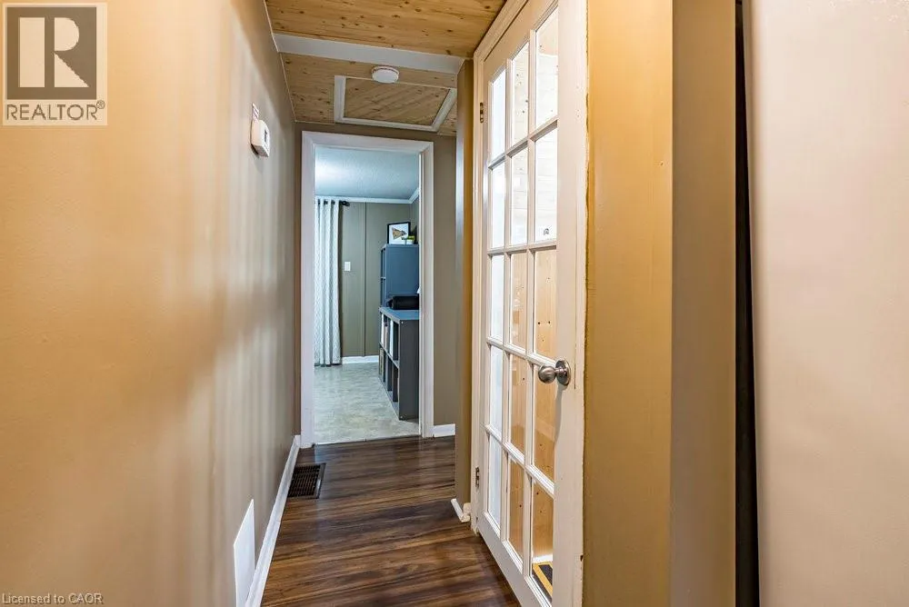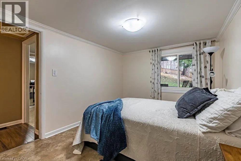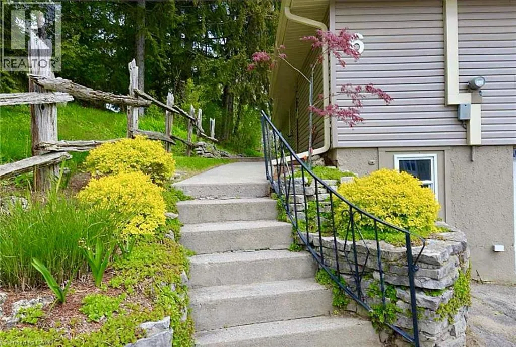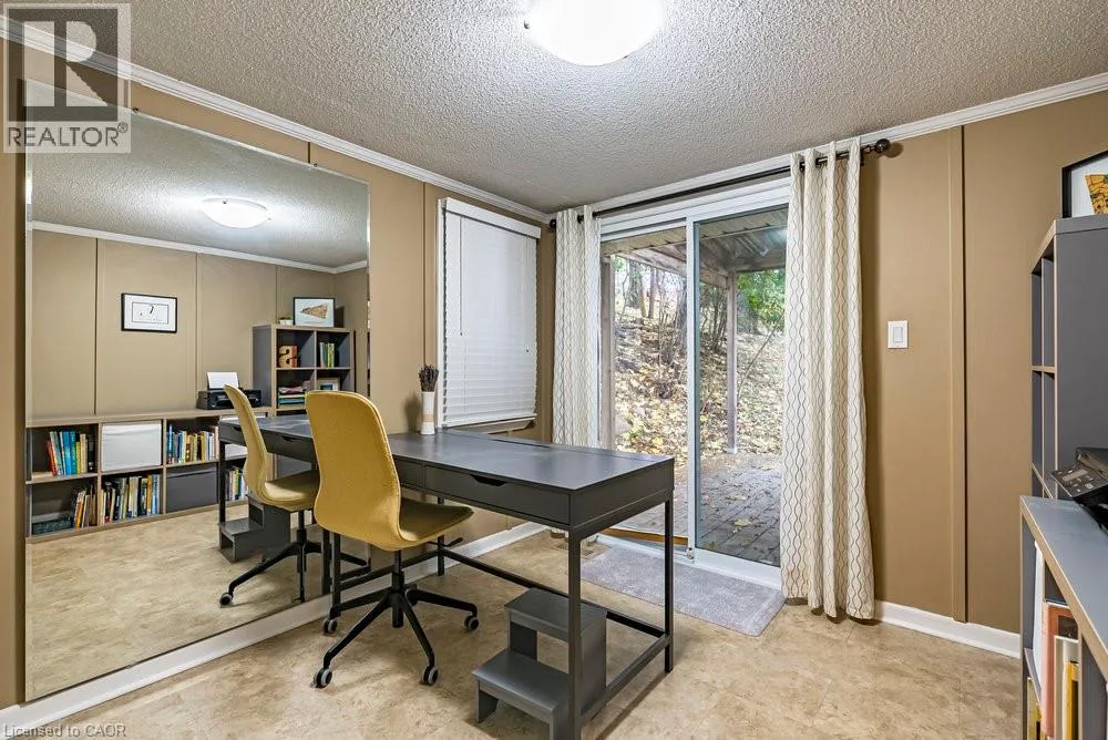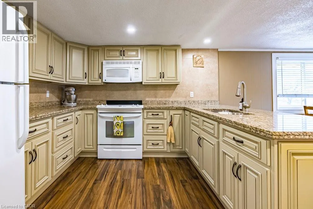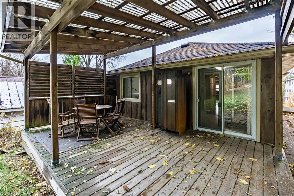 Governor's Rd to Creighton to Begue Welcome to Whispering Pines Cottage Better Than Condo Living! Enjoy the charm of Dundas living in this fabulous detached bungalow, just a short stroll from the vibrant downtown core. Nestled on a picturesque 33' x 161' treed lot, this home offers a peaceful connection to nature right in the heart of town. Step inside to a bright, open-concept Living and Dining area with new broadloom and large windows that fill the space with natural light. The spacious Kitchen features granite counters, a handy peninsula, and built-in appliances-perfect for everyday living and entertaining alike. The 4-piece Bathroom provides a touch of luxury with its granite countertop and ceramic flooring. The Primary Bedroom overlooks the beautifully landscaped backyard, while the second Bedroom-currently used as an office-walks out to a covered deck, ideal for morning coffee or evening relaxation. Recent updates include: roof stripped and reshingled (Oct. 2025), fresh décor, updated plumbing, replaced windows, doors, siding, eaves, and electrical. Whether you're downsizing or buying your first home, this sweet bungalow is a rare find-quiet, convenient, and move-in ready. Steps to conservation trails, schools, public transit, shopping, and all the charm of downtown Dundas! (id:27476)