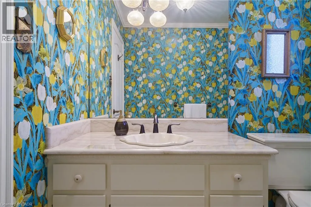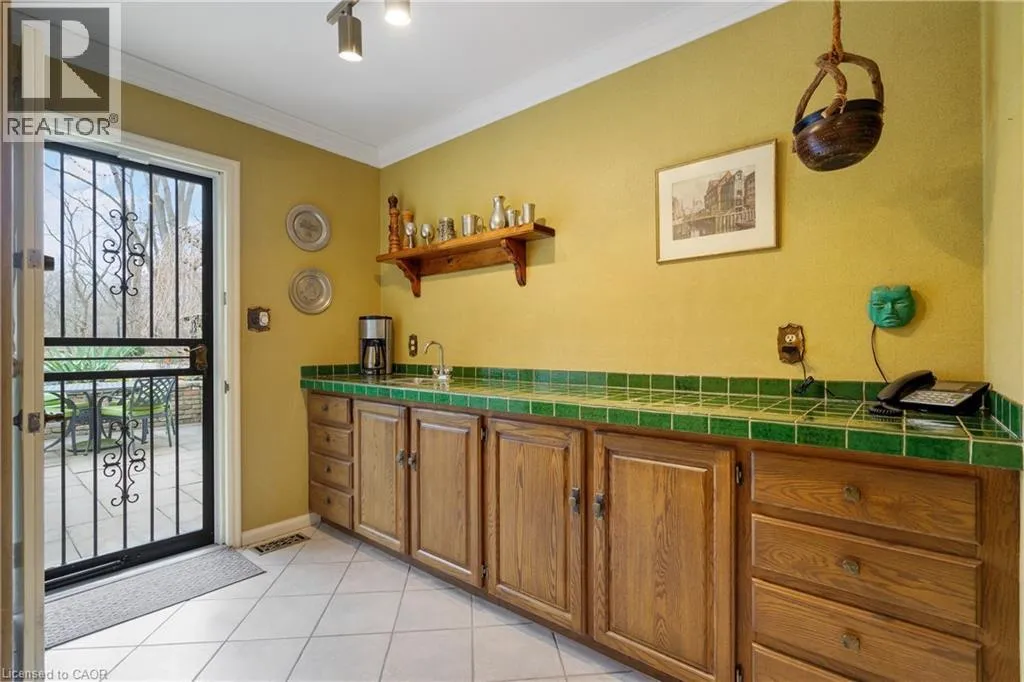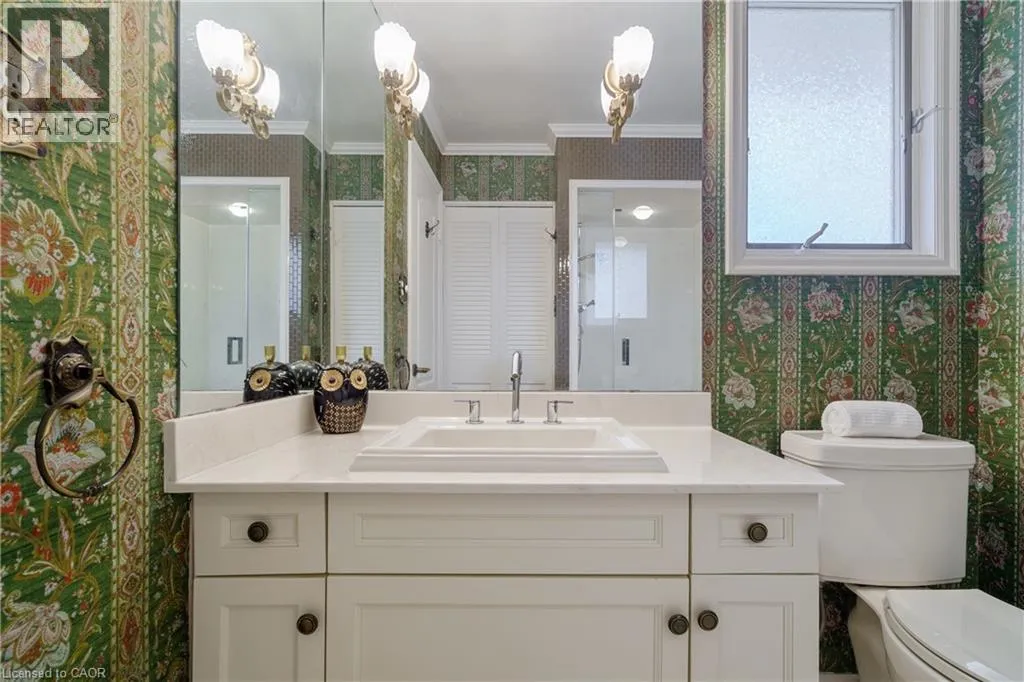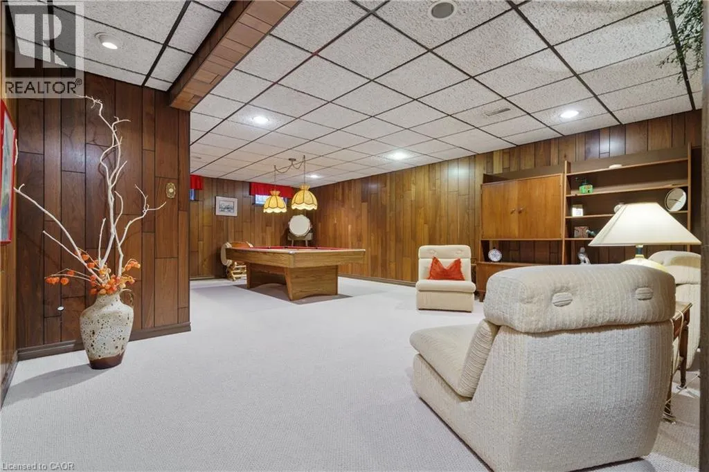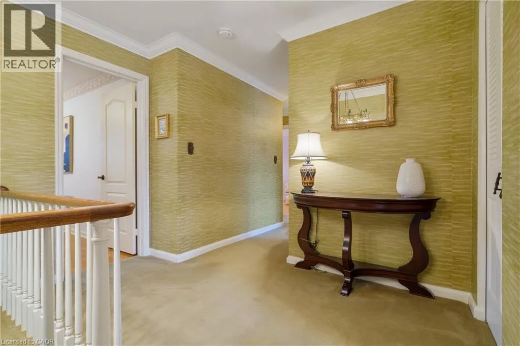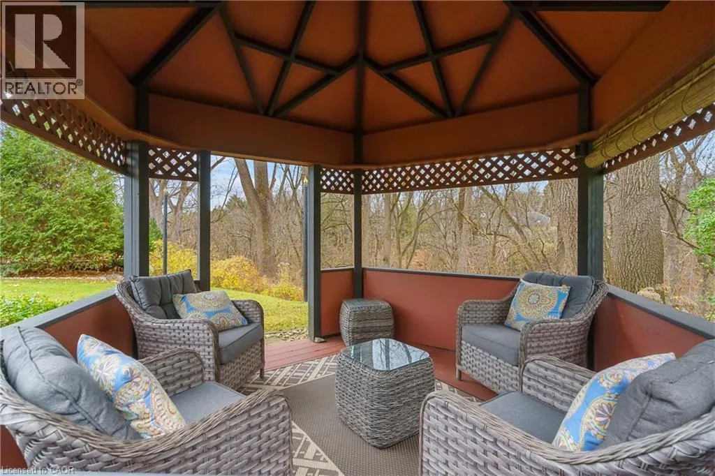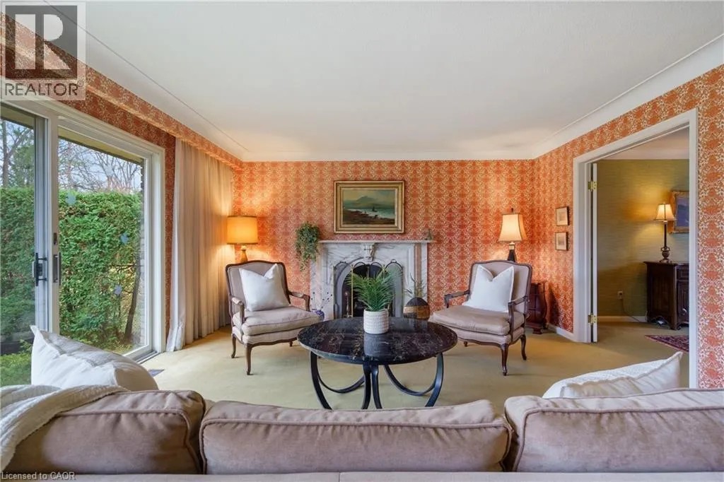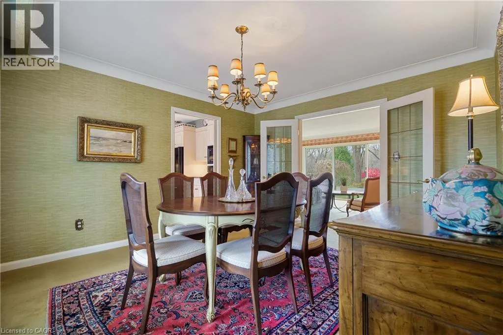 Governors Rd to Overfield St to Walnut Grove Nature Lovers Dream! This one-of-a-kind 4-level side split offers 4 bedrooms and 2.5 bathrooms on an extraordinary 200+ ft deep Dundas Valley ravine lot with unmatched privacy. In prestigious Highland Hills, the property boasts lush perennial gardens and breathtaking Spring Creek views from a custom lookout deck, along with an inground pool and gazebo that create a truly special backyard oasis! Step into the spacious foyer where the main floor features a bright family room with floor-to-ceiling windows, a walk-out to a covered patio overlooking the ravine, a convenient powder room, and a wet bar with rear yard access for exceptional indoor/outdoor living. The second floor offers wool carpeting throughout the sunlit living and dining rooms, where a stunning gas fireplace with a marble mantle adds warmth and elegance, and sliding doors lead directly to the backyard sanctuary. A pocket door opens to the inviting eat-in kitchen, a true delight for any home chef. This space features sleek black appliances including cooktop, built-in wall oven and microwave, with ample cabinetry, and a perfect setting for warm gatherings. The third floor showcases the primary bedroom with a 3 piece ensuite and sliding doors to a private balcony with unparalleled panoramic ravine views. Three additional bedrooms with hardwood floors and the main bathroom with a jetted tub complete this level. The finished basement includes a spacious rec room ideal for entertaining, a pool table area, a laundry room with a shower, a utility room with a workbenchâall with close to 9 ft ceilings!âand abundant crawl-space storage. Additional highlights include a 4-car driveway, 2-car garage with inside entry, and only one neighbouring property, with Conservation land beside the home for added privacy. A truly rare find, close to walking trails and minutes from downtown, act fast to own this piece of paradise in Dundas! (id:27476)
