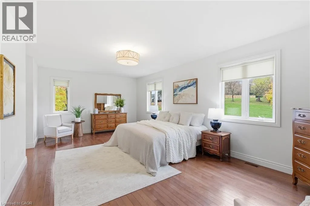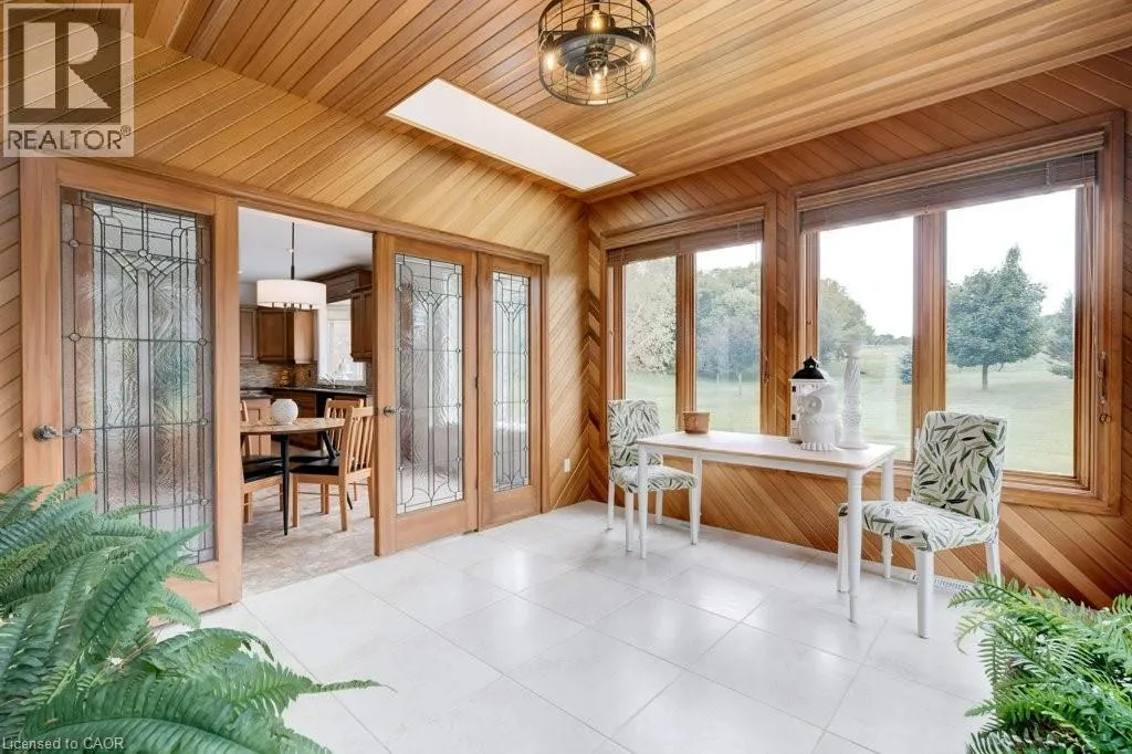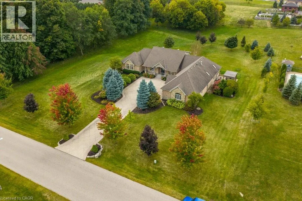 Brock Rd to Harvest Rd to Tews Lane Welcome to the epitome of refined, one floor living in one of the regionâs most prestigious estate neighbourhoods â just minutes from the natural beauty of Spencer Gorge. From the moment you step into the grand foyer with its walk-in closet, the home reveals a level of scale and sophistication that is simply rare. Crafted for exceptional main-floor living, the principal rooms flow effortlessly: an expansive living room, elegant coffered dining room, sunlit four-season room with walk-out to the patio, and a warm, inviting family room anchored by a gas fireplace. The oversized kitchen offers commanding views of the expansive grounds and the space to create at any level of culinary ambition. The main-floor primary suite feels like a private luxury retreat, featuring his-and-her walk-in closets and two spa-caliber ensuites with heated floors. A second main-floor bedroom with its own ensuite provides perfect flexibility for children, guests, or elegant multi-generational living. The upper level offers two generous bedrooms, a bonus room, a bright four-piece bath with solar tube lighting, and a walk-in attic for storage. A commercial-grade washer/dryer adds practical convenience. Car enthusiasts will appreciate the three-car garage with exposed aggregate driveway, heated workshop, and wheelchair lift for added accessibility. Outdoors, 1.4 acres of landscaped privacy create a serene backdrop for your outdoor endeavours. The lower level delivers over 3,000 square feet ready for your theatre, fitness studio, or wine cellar (or all of the above). Geothermal heating/cooling, dual water heaters, reverse osmosis, and 400-amp service ensure this home is as future-ready as it is luxurious. Donât be TOO LATE*! *REG TM. RSA. (id:27476)