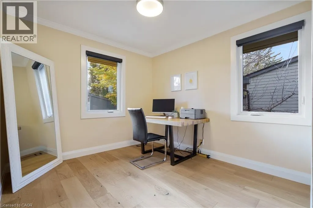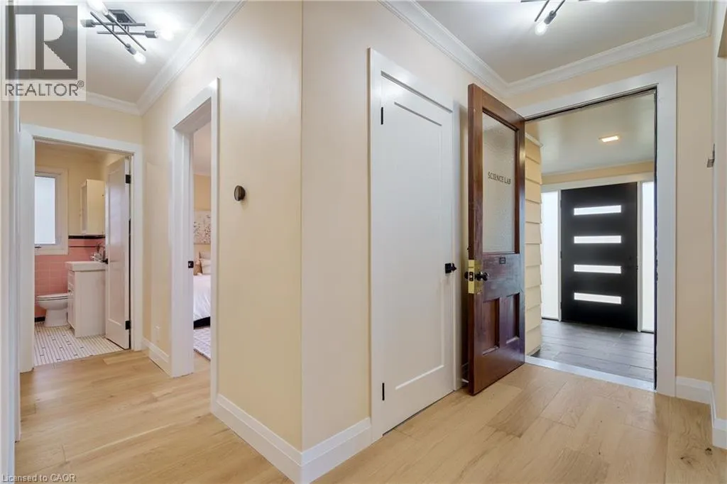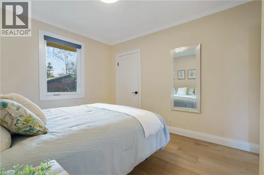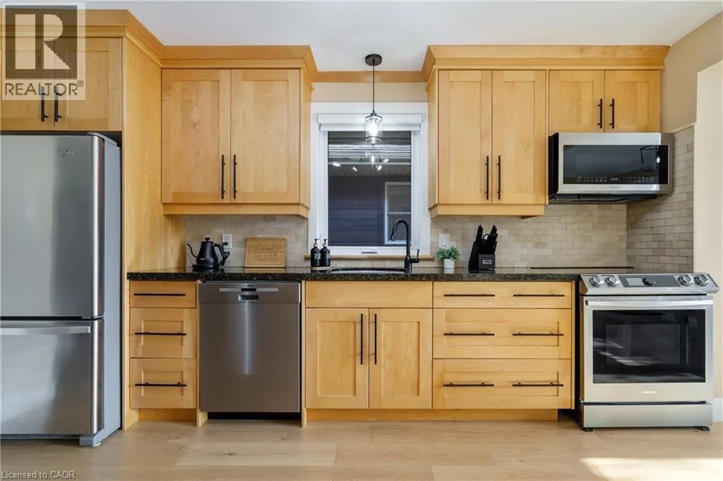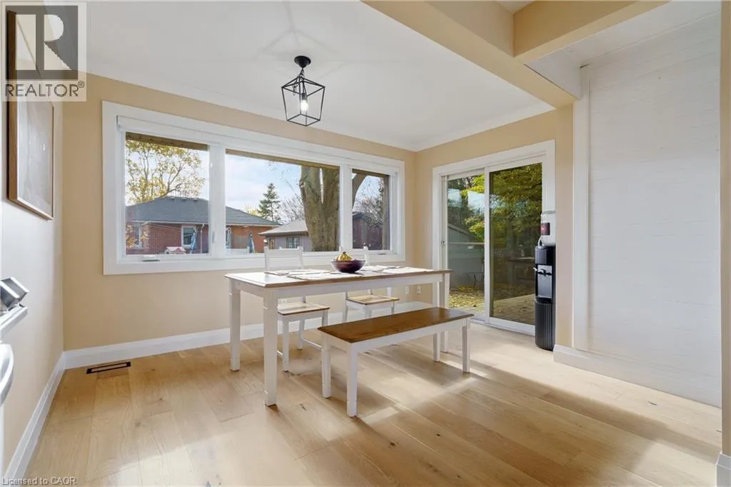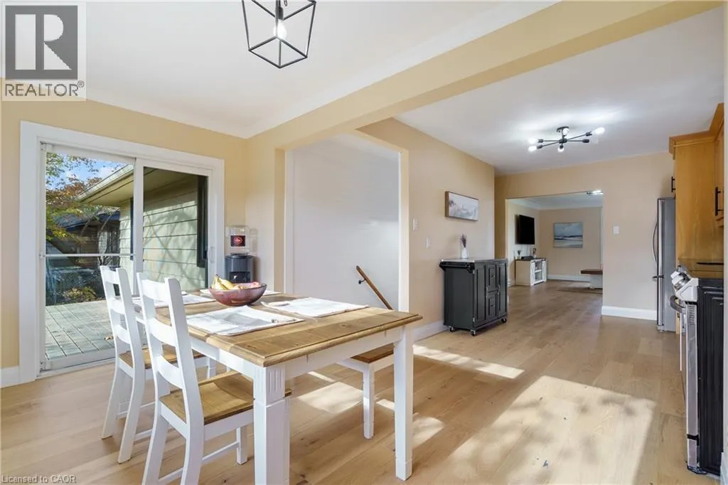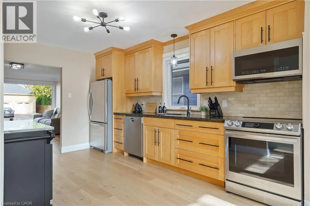 Osler Dr to Grant Blvd to Desjardins Ave to McMaster Ave Welcome to this charming and impeccably maintained bungalow in the highly desirable University Gardens neighbourhood of Dundas. Offering elegant curb appeal with a large front yard, recently replaced black-trim windows, and a modern front door, this home makes a striking first impression. Inside, the front vestibule acts as a convenient mud room and entrance into the main living space with newly recently installed flooring and a bright, beautifully updated kitchen. A dedicated dining area is perfect for everyday living and entertaining where sun-filled windows and patio doors frame views of the private fully fenced backyard, enhancing the homeâs warm and inviting atmosphere. With 3 bedrooms and 2 baths, this beautiful residence is ideal for first-time buyers, downsizers, or anyone seeking a low-maintenance lifestyle in a quiet, mature setting. The fully renovated lower level adds exceptional value, offering a second bathroom and spacious and versatile rec roomâan ideal space for family gatherings, games room, work-out space, or a cozy retreat. Located just minutes from University Plaza, McMaster University and Hospital, schools, parks and the amenities of Downtown Dundas and Westdale, this move-in-ready home combines comfort, convenience, and exceptional neighbourhood charm. Nothing to do but settle in and enjoy. (id:27476)