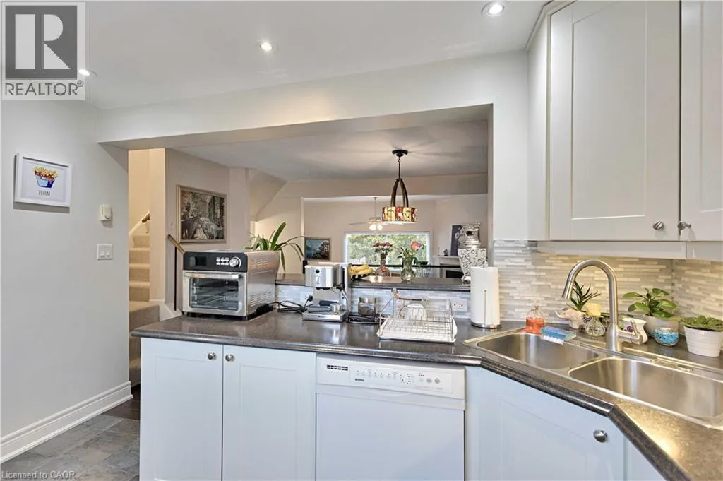 Governors Rd to Creighton Rd, Left on Ann St. Welcome to 90 Ann St in the lovely town of Dundas. This beautiful and meticulously maintained END unit townhome is just what you desire. Enjoy maximum level of privacy with no neighbour on one side and fall in love with the picturesque view to the rear. Thatâs right, the property backs on to greenspace! Youâll get to enjoy the best of both worlds, whether itâs taking in the view every day or going for a nice and peaceful walk through the trees. The long driveway accommodates multiple vehicles and a nice sized garage. Step inside and be welcomed by a warm and inviting atmosphere. The bright and open foyer leads you to a 2 piece powder room and a nice and cozy family room with a gas stove where you can sit and enjoy your hot beverage during the winter months. And during the summer months, enjoy the backyard through the walk-out. In the upper level, youâll fall in love with the high ceilings and elegant crown moulding in the living room, a gas fireplace and large windows that provide an abundance of natural light and that view we were talking about. The spacious and open dining area is the perfect spot for those memorable gatherings with close ones. The opulent kitchen with high kitchen cabinets, pot lights, a nice choice of colours, and great amount of space will make cooking your favourite meals that much more delightful! Upstairs, you are provided by 3 spacious bedrooms and a 4 piece bathroom that is truly unique with a high level of workmanship in every area you look. Recent upgrades; Roof (2025), Exterior Siding (approx. 3 years), Home has been freshly painted (2025). The home is within a short walking distance to downtown Dundas, Parks & Trails for all the nature lovers. Conveniently located near grocery stores, Shoppers, Coffee shops, and much more. Start living your dream life today! (id:27476)