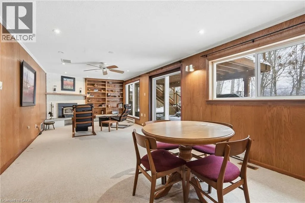 Little John Rd to Robinhood Dr RARE OPPORTUNITY! Nestled on a quiet street w/ seamless access to both Ancaster & Dundas, this charming home offers a rare blend of functional living & a private connection to nature. Backing directly onto the prestigious Dundas Valley Conservation Area, the property is a sanctuary for local wildlife, where deer & birds are your most frequent neighbours. The main floor radiates character w/ its original hardwood flooring & a cozy gas fireplace, featuring 3 spacious bedrooms & updated 3-pc bath. Step through the patio doors onto the expansive deck (2018) to enjoy panoramic views of the lush greenery - the perfect spot for morning coffee or evening relaxation. The home is designed for versatility, boasting a full walk-out basement that serves as a complete in-law suite w/ stairs down from the front of the house as well. This lower level includes a 4th bedroom, a second 3-pc bath, & a rustic wood-burning stove that adds warmth to the living space. With its own set of patio doors leading to a professional interlock brick patio, the suite offers true independence & easy access to the outdoors. Practicality is woven throughout the property, from the shared laundry facilities to the impressive parking capacity, including a 2-car garage & a large driveway that fits 3 vehicles. Significant investments in the homeâs infrastructure provide lasting peace of mind. The kitchen was tastefully updated in 2011, while the mechanical systems are well-maintained w/ the furnace & A/C installed in 2013. Most notably, the shingles were replaced in 2023, ensuring the home is protected for years to come. Baseboards provide a secondary heat source in the basement. Whether you are looking for a multi-generational family home, investment property or a peaceful retreat that feels miles away from the city while being minutes from every amenity, this property delivers an unmatched lifestyle in one of the regionâs most beautiful settings. You must see the view to truly appreciate this opportunity! (id:27476)