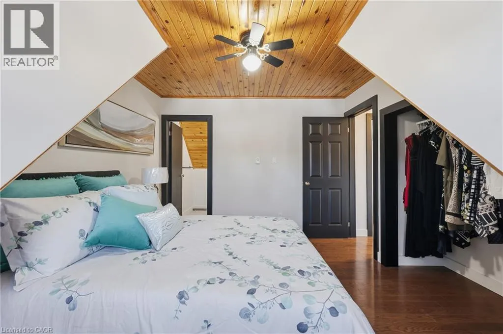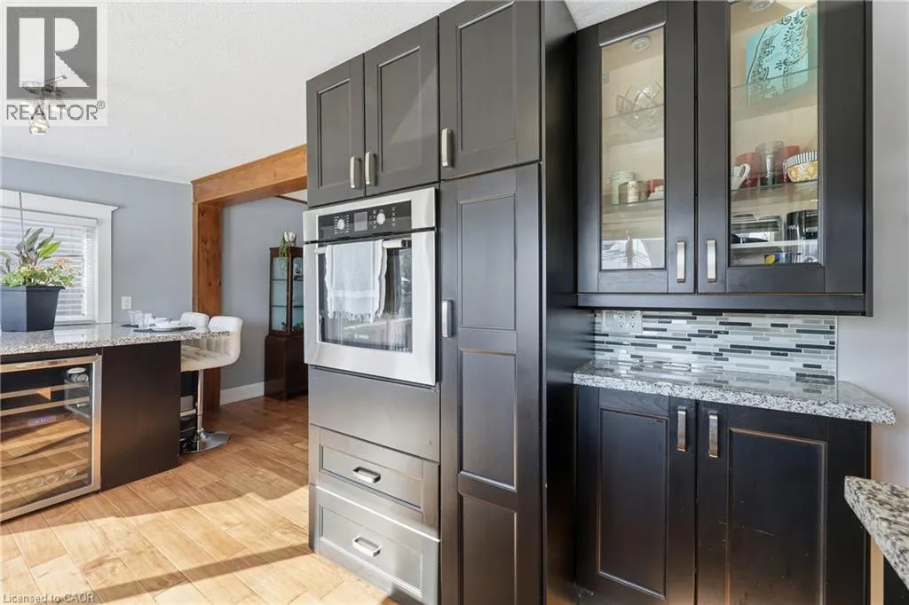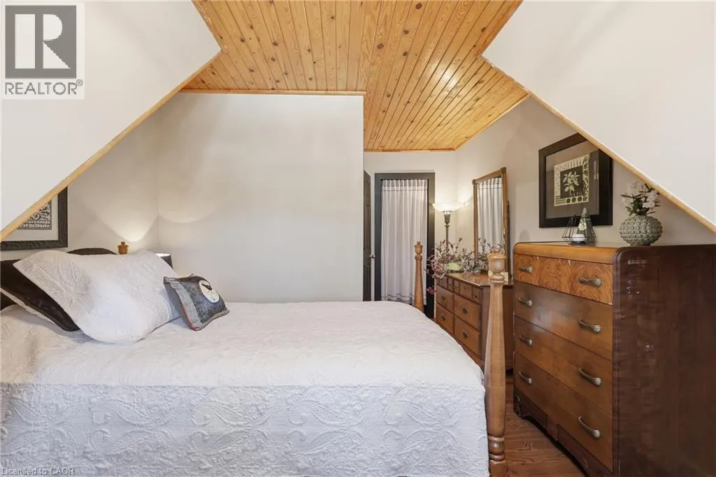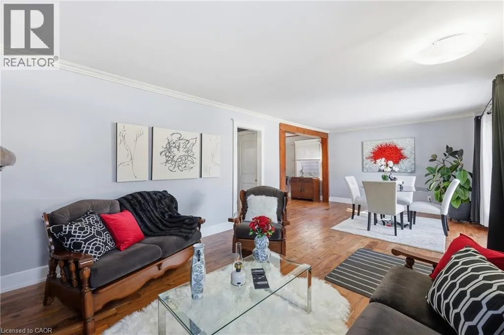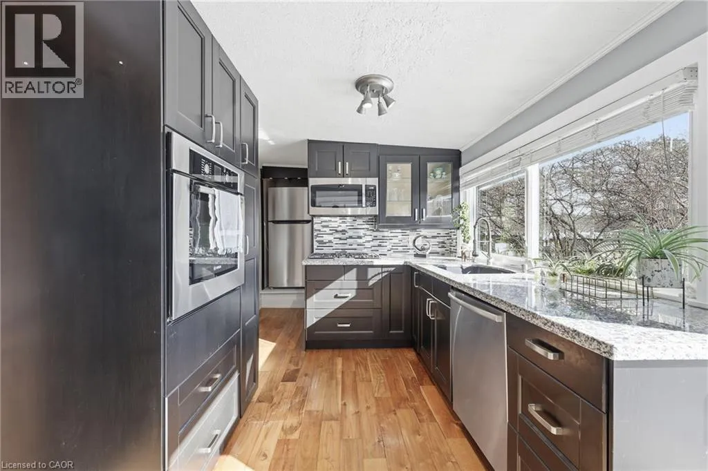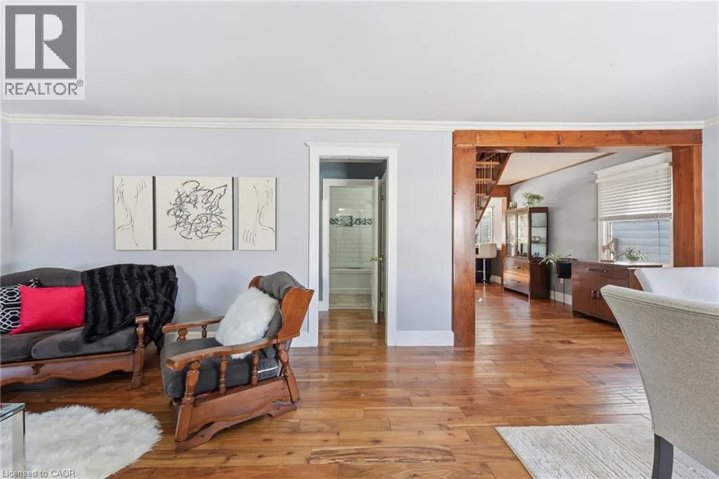 Cootes Dr. to East St. N. to Hunter St. Located on a premium lot in desirable Dundas, this charming home offers three levels of fully finished living space on a quiet street with exceptional walkability, just minutes from McMaster University and downtown Dundas. Ideal for families, downsizers, or investors seeking flexibility in a highly sought-after community. The enclosed foyer welcomes you into a bright open-concept living and dining area, highlighted by a large picture window that fills the space with natural light. The main floor features a comfortable bedroom and an updated 4-piece bath, providing the convenience of one-level living. At the heart of the home, the functional kitchen is designed for gathering, featuring granite countertops, upgraded appliances, and an oversized island with built-in wine fridge, all overlooking the private, fully fenced backyard. The refurbished deck (2025) extends the living space outdoorsâperfect for morning coffee, summer dinners, and entertaining. Hardwood flooring runs throughout the main and upper levels, adding warmth and continuity. Upstairs, youâll find three inviting bedrooms, including a primary suite with a private 2-piece ensuite. The fully finished basement with a separate entrance and new carpeting (2025) adds valuable additional living space, including a recreation room, office area, and a flexible fifth room ideal for guests or in-law potential. Recent updates include furnace (2024), basement waterproofing (2021), water heater (2026) and second level windows (2024). Classic wood siding enhances curb appeal, complemented by a long three-car driveway and a large newer shed (2021). Enjoy proximity to Dundas Driving Park with trails, playgrounds, and green space, as well as easy access to Westdale Village, downtown Hamilton, Highway 403, and Hamilton & Aldershot GO stations. A true turn-key property offering comfort, convenience, and long-term value in one of Dundasâ most desirable neighbourhoods. (id:27476)