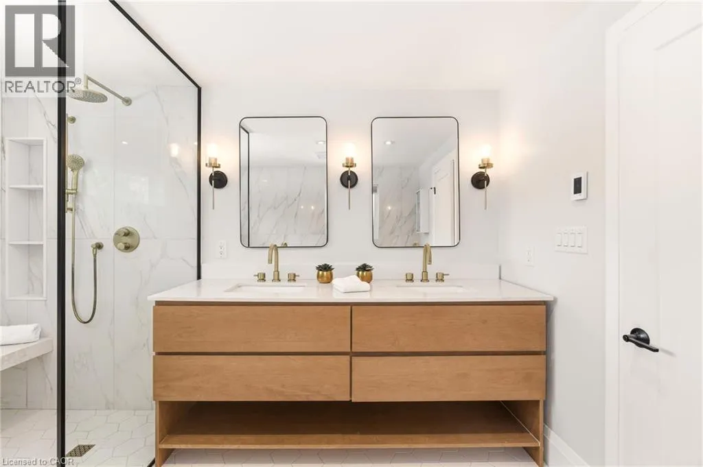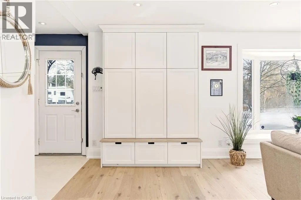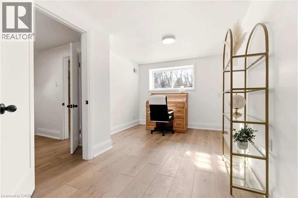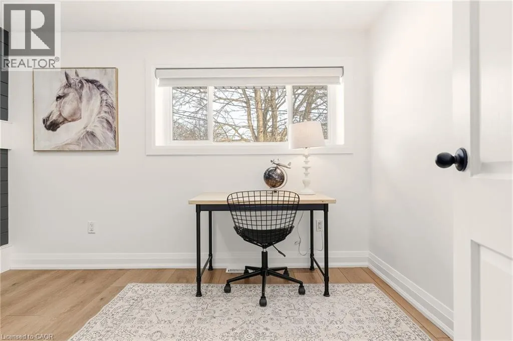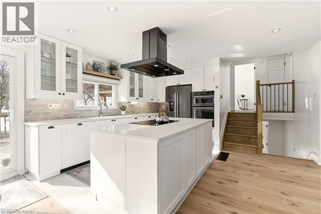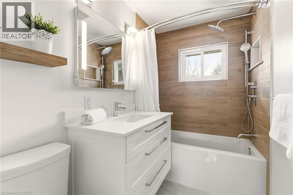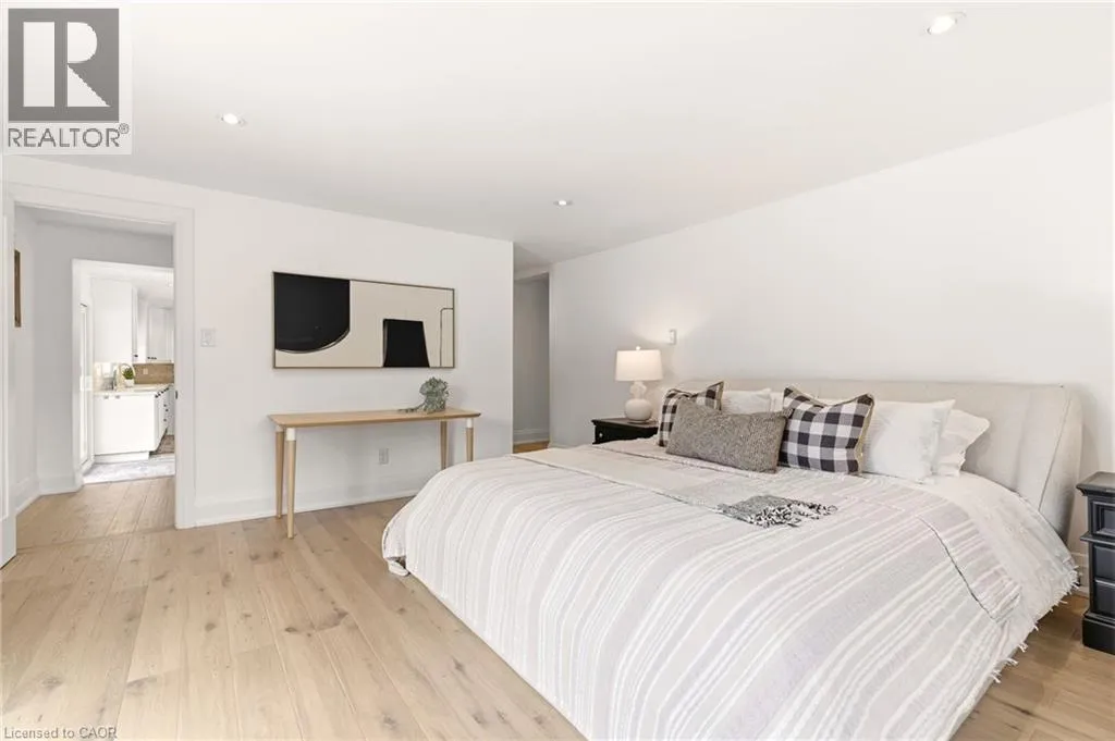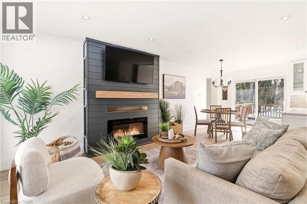 Hwy 8 to Rosebough St, just past Valleydale Crt Welcome to this beautifully renovated four-bedroom, three-bathroom side-split home in the sought-after Grand Vista Community of Greensville. Perfectly designed for families, this property is located directly across from a park and offers a private backyard ideal for relaxing or entertaining. The open-concept main floor features beautiful hardwood flooring throughout, a stunning fireplace feature wall and a remodeled kitchen complete with quartz countertops, a large cooktop island, a walk-in pantry and modern finishesâperfect for everyday living and hosting. A standout feature is the main floor primary retreat, offering a spacious walk-in closet, an incredible five-piece ensuite, and its own private balconyâyour personal escape. The childrenâs bedrooms are thoughtfully positioned on the opposite side of the home and share a beautifully renovated bathroom, creating both privacy and functionality. The lower levels feature a large bedroom which is currently being used as a gym/office, and a finished rec room with durable concrete floors and a walk out to the two-car attached garage. With stylish renovations throughout and a layout that balances togetherness and privacy, this move-in-ready home checks all the boxes. A rare opportunity to live in one of Greensvilleâs most desirable family-friendly communities. Donât be TOO LATE*! *REG TM. RSA. (id:27476)