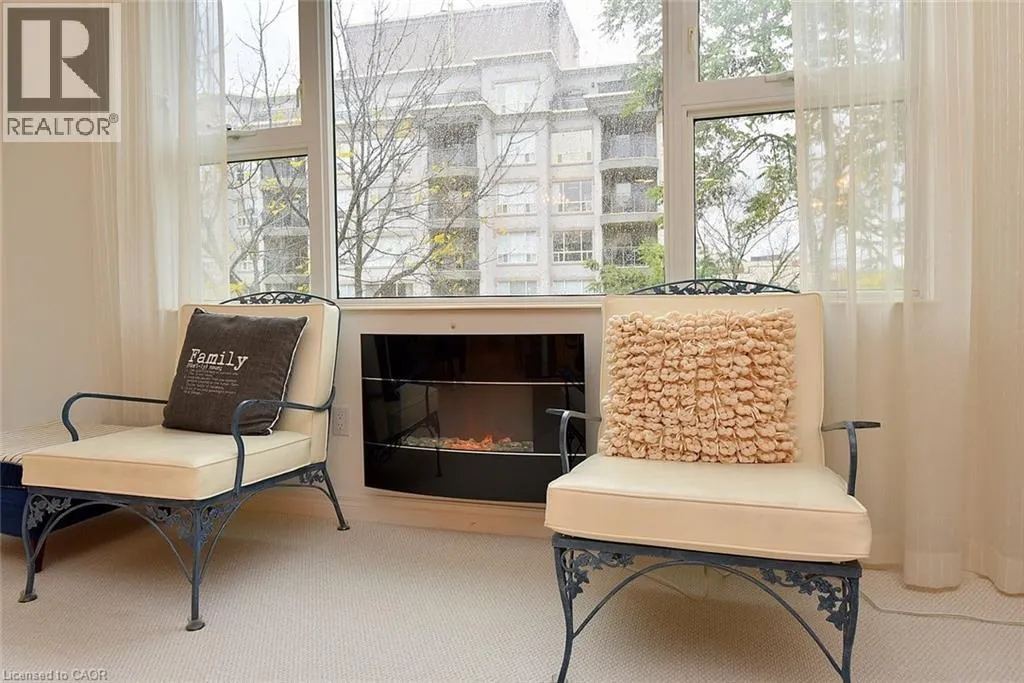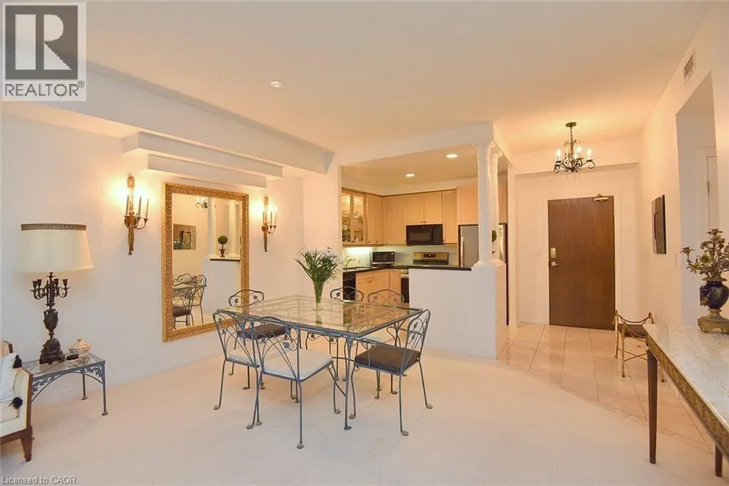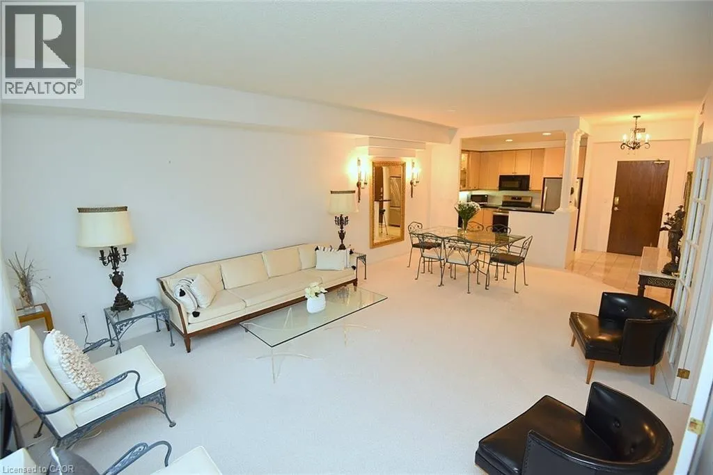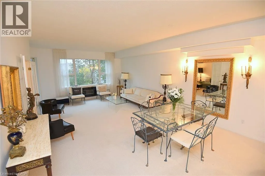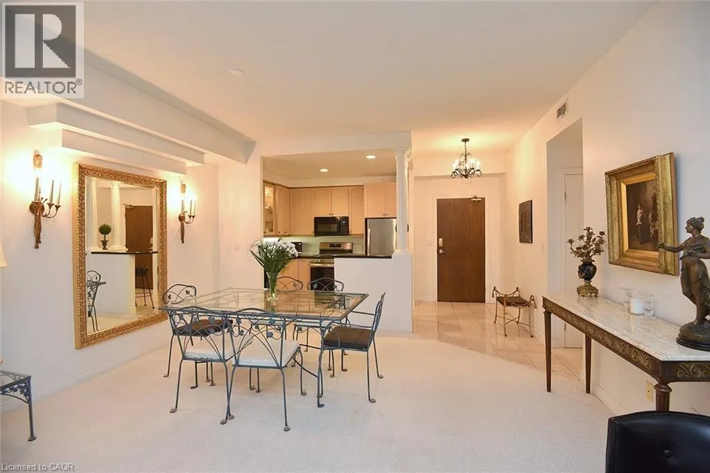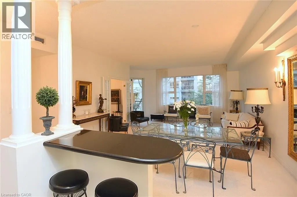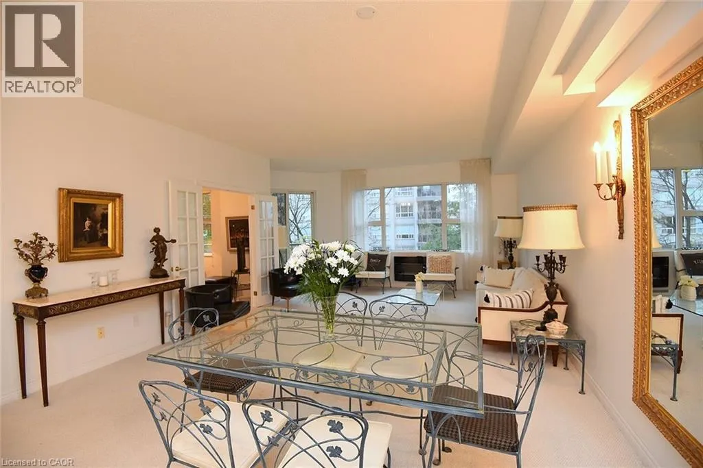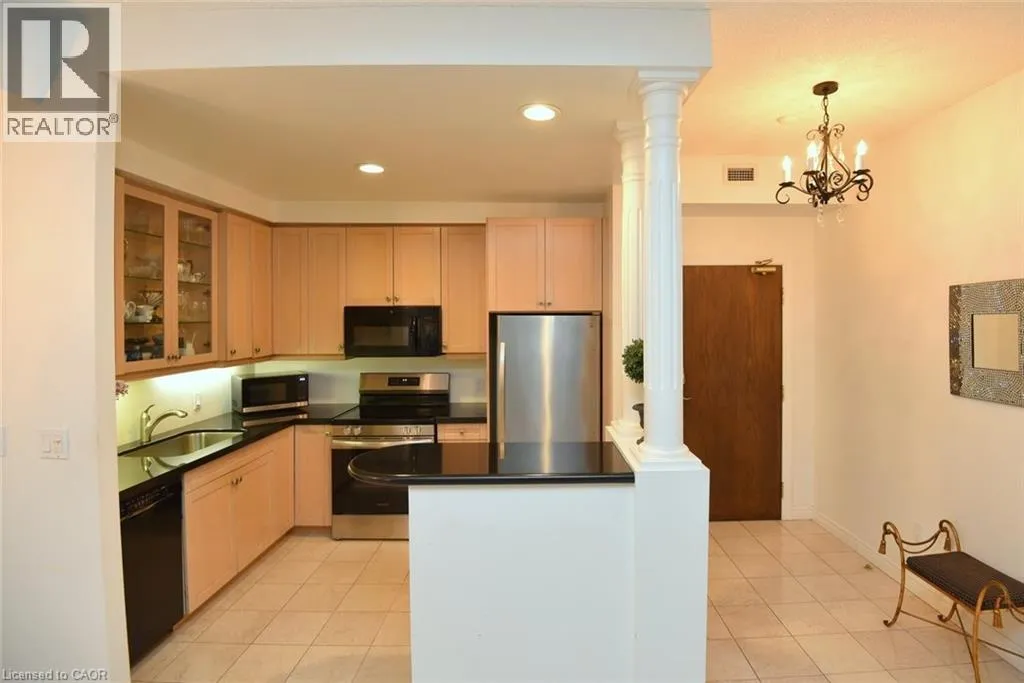 Corner of Governors Rd. and Ogilvie Welcome to this beautifully maintained 1,200 sq. ft., two bedroom, condo in one of Dundasâ most sought-after buildings! Boasting 9â ceilings and an open-concept design, this bright and inviting home offers the perfect blend of comfort and convenience. The generous living and dining areas flow seamlessly into the well-appointed kitchen, creating an ideal space for both everyday living and entertaining. Step out onto the private balcony and enjoy peaceful views of the treed area and Spencer Creek â a serene backdrop right at home.The spacious primary bedroom features a walk-in closet and a 4-piece ensuite bath, providing a private retreat within this lovely unit. The second bedroom can be used as a family room or home office. Immaculately cared for, this condo is clean, bright, and move-in ready. The condoâs amenities include a guest suite, fitness room, sauna and a party room that boasts a full kitchen and a terrace with a BBQ, perfect for entertaining. Located close to all amenities, public transit, and scenic walking trails, this is condo living at its best in beautiful Dundas. Donât miss your chance to call this exceptional property home! (id:27476)