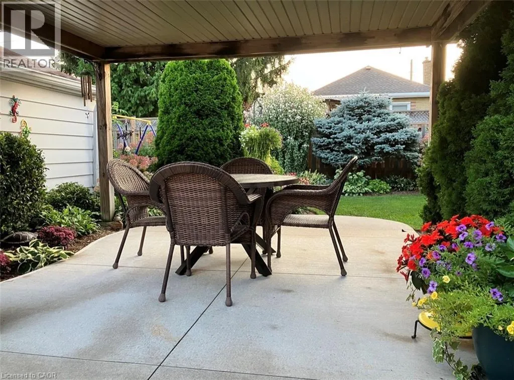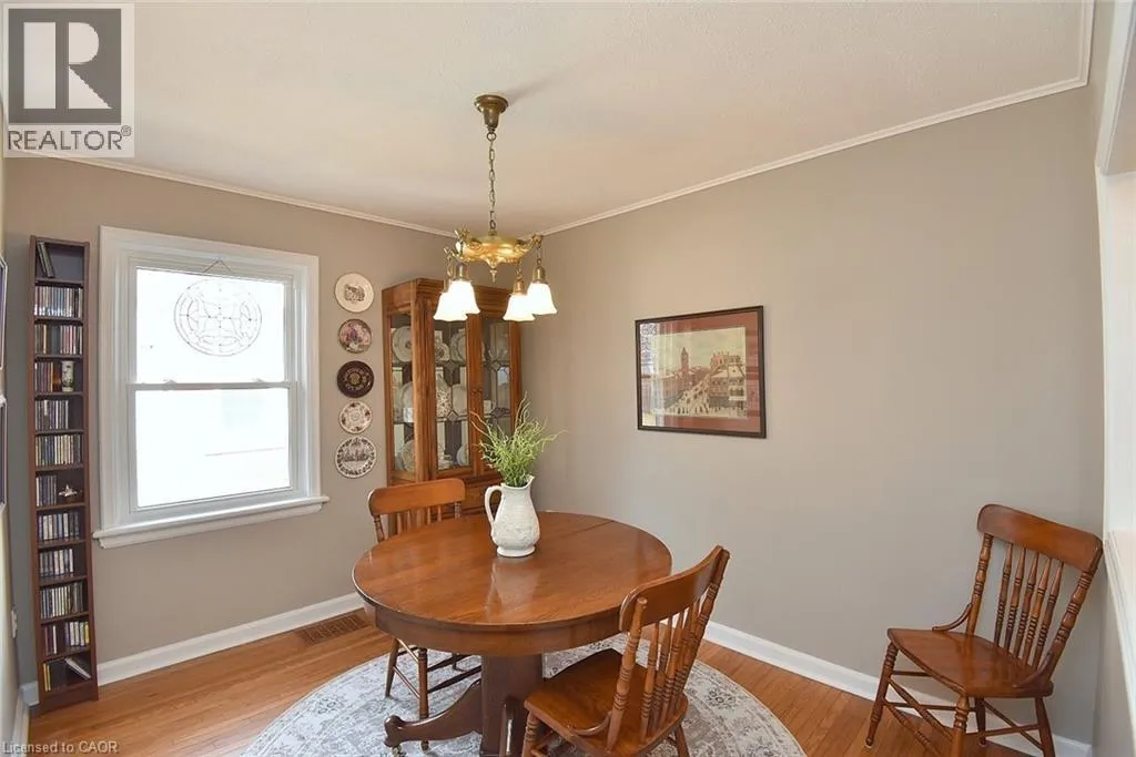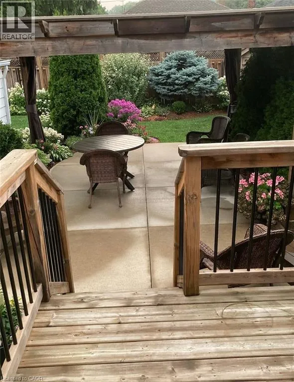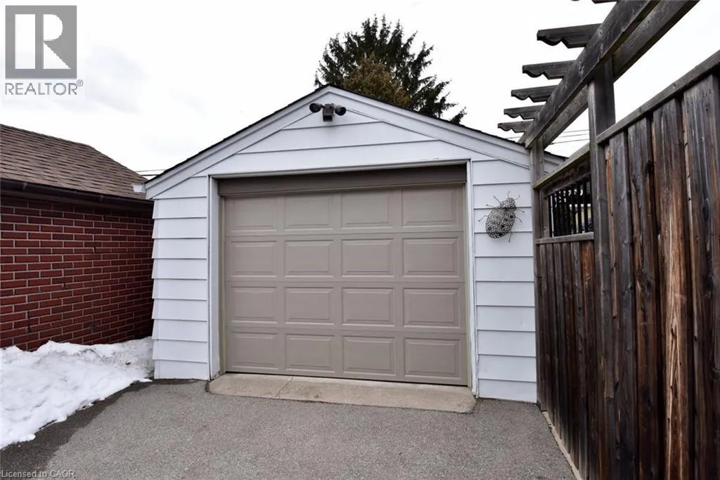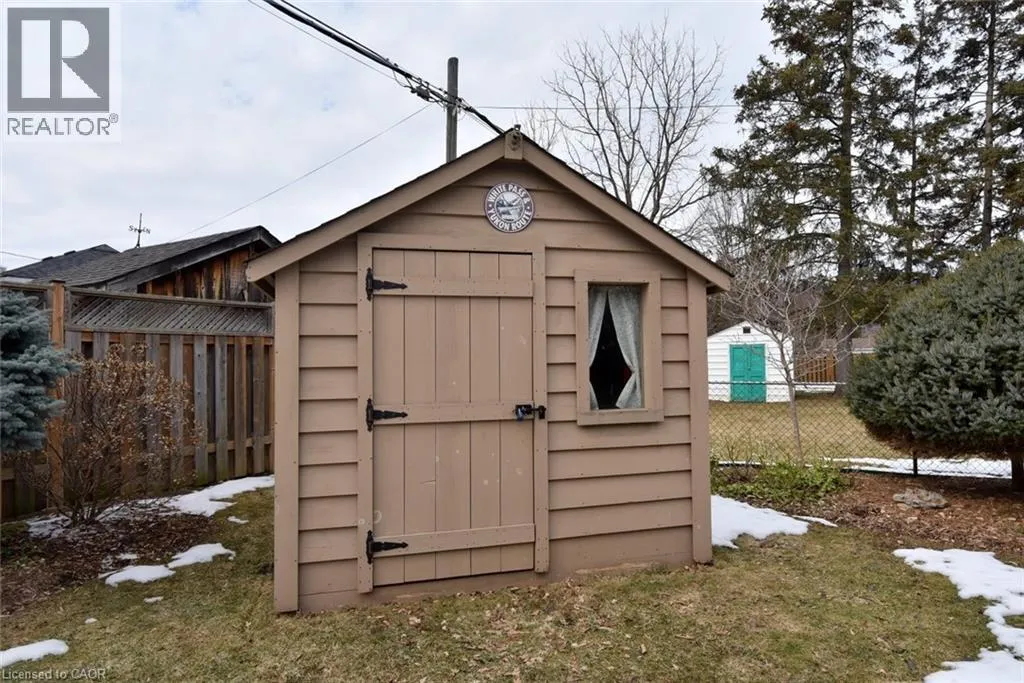 Bungalow. Bungalow. Bungalow. The home downsizers wait for, bungalow hunters chase, and families grow into. This solid all-brick bungalow offers 3+1 bedrooms and 2 baths, with the third main-floor bedroom currently styled as a dining room that could easily be converted back. Eat-in kitchen with stainless steel appliances, newer windows throughout, and a carpet-free main level. The primary bedroom features a walk-out to the deck, creating easy indoor-outdoor living. The finished basement includes a bedroom, bath, rec room, dedicated laundry room, utility/workshop space, and ample storage-plus a separate side entrance, making it ideal for a teen suite or in-law suite potential. Set on a fully fenced, landscaped, treed lot with Gazebo, large poured concrete patio, deck, and shed, plus a 1-car garage. Close to schools and walkable to downtown, everyday amenities, and Dundas Driving Park. (id:27476)