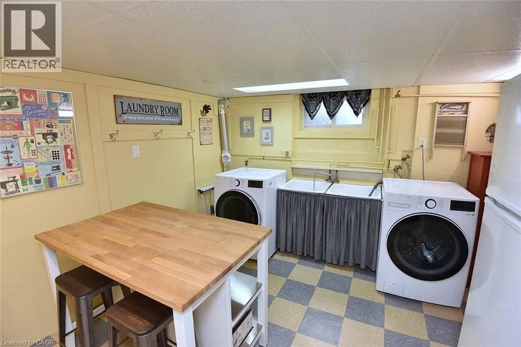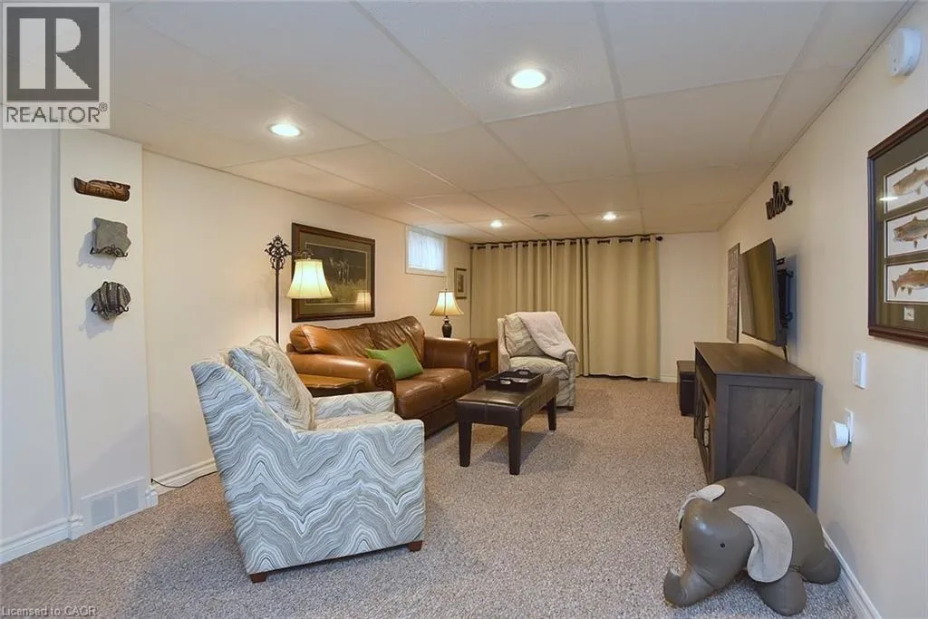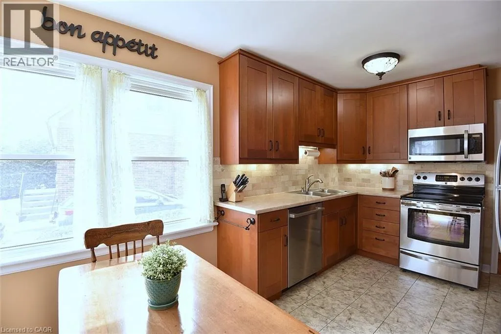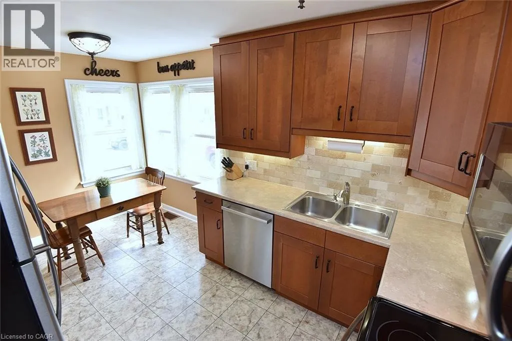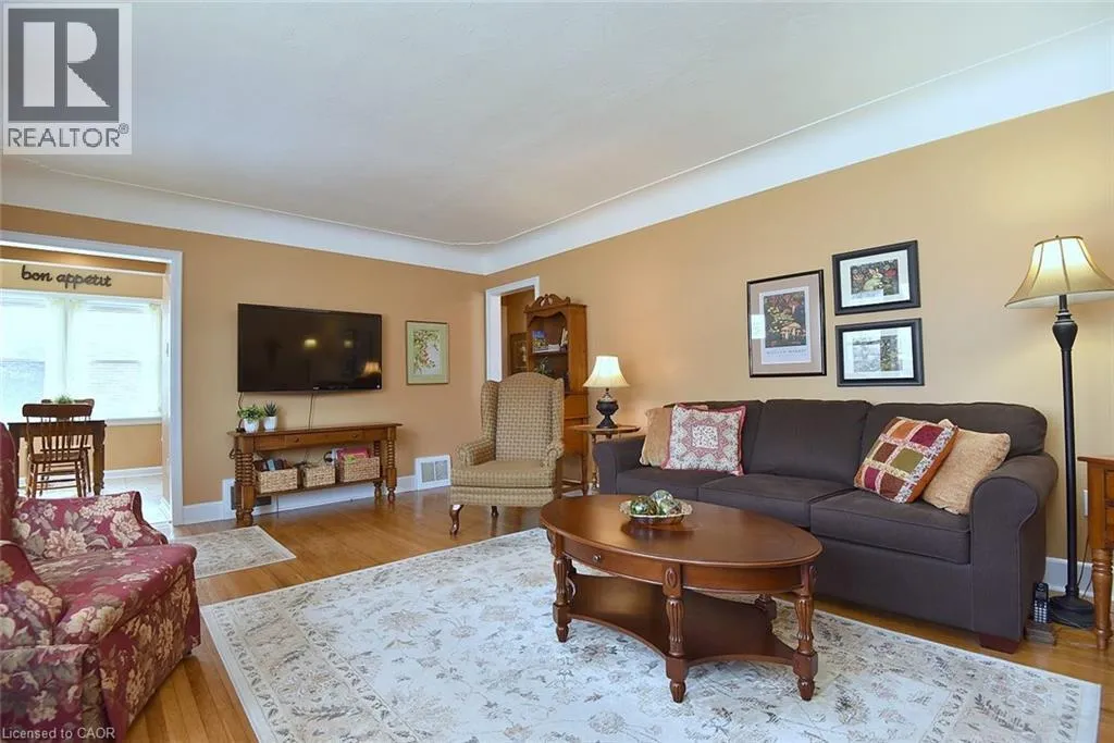 Bungalow. Bungalow. Bungalow. The home downsizers wait for, bungalow hunters chase, and families grow into. This solid all-brick bungalow offers 3+1 bedrooms and 2 baths, with the third main-floor bedroom currently styled as a dining room that could easily be converted back. Eat-in kitchen with stainless steel appliances, newer windows throughout, and a carpet-free main level. The primary bedroom features a walk-out to the deck, creating easy indoor-outdoor living. The finished basement includes a bedroom, bath, rec room, dedicated laundry room, utility/workshop space, and ample storage-plus a separate side entrance, making it ideal for a teen suite or in-law suite potential. Set on a fully fenced, landscaped, treed lot with Gazebo, large poured concrete patio, deck, and shed, plus a 1-car garage. Close to schools and walkable to downtown, everyday amenities, and Dundas Driving Park. (id:27476)