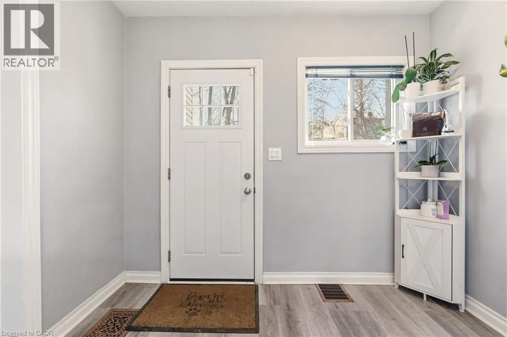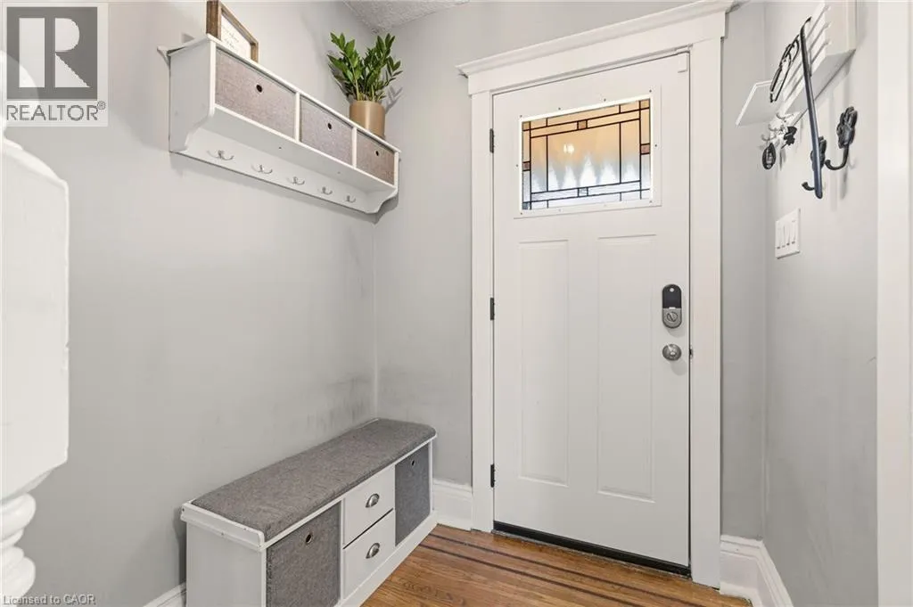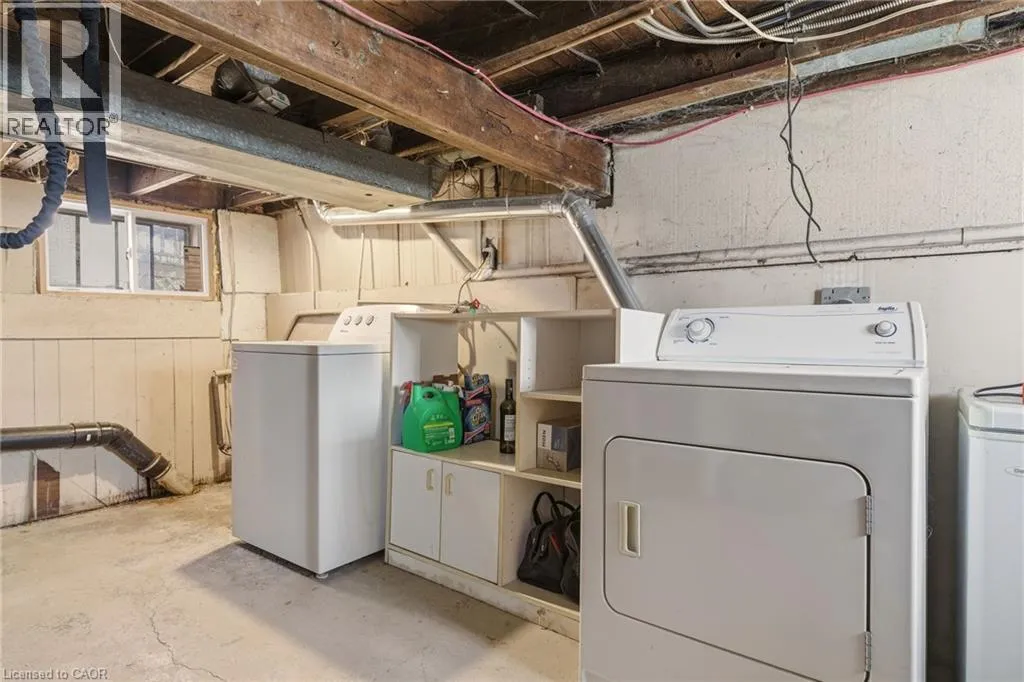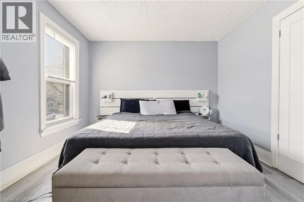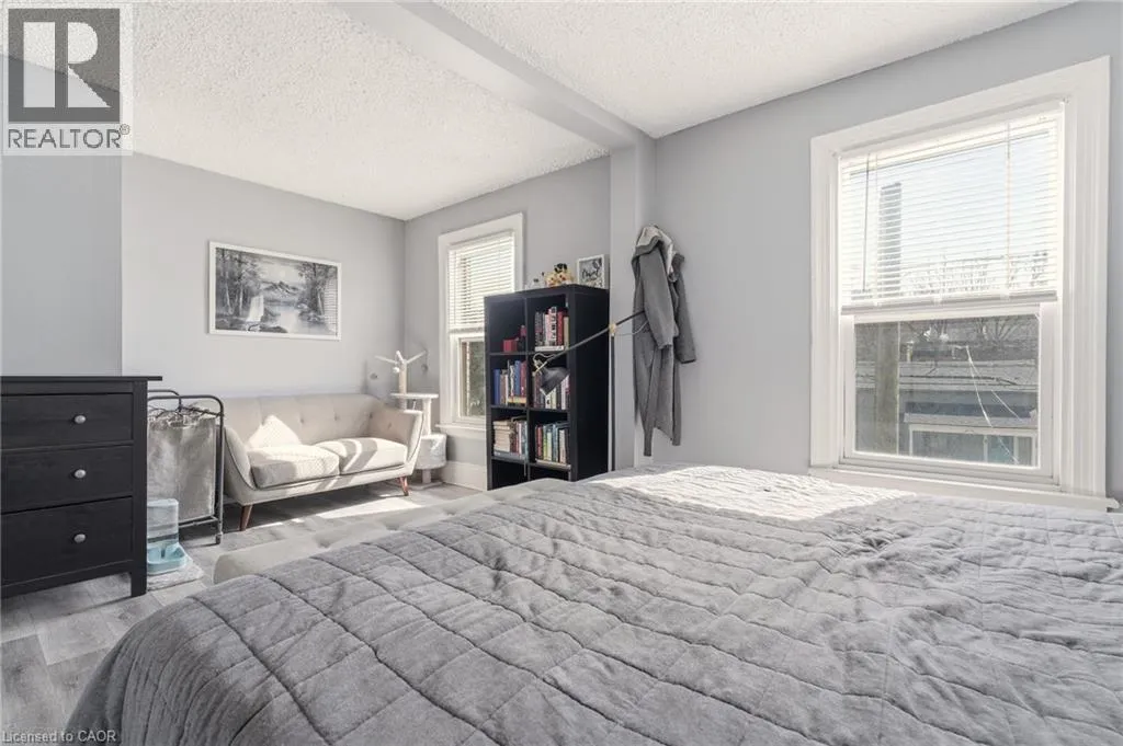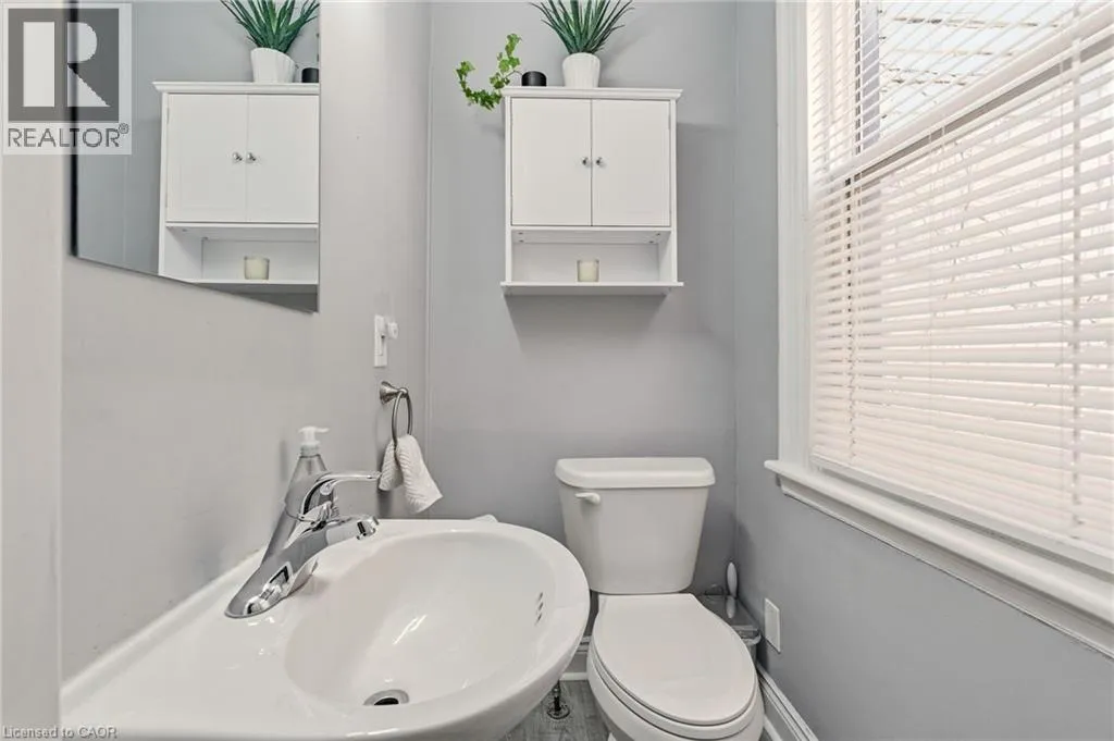 Main St to Dundas St Welcome to this charming fully detached two-story home, perfectly situated on a massive **60 x 106** lot in the vibrant heart of Dundas! As you enter, youâll be greeted by a warm foyer that leads to a formal dining room, featuring a large window, natural hardwood flooring, and crown moulding. The inviting living room, with beautiful hardwood floors and sunny windows, flows seamlessly into the updated large eat-in kitchen. The kitchen comes equipped with white wood cabinets, updated hardware, counter-tops and stylish laminate flooring, a suite of 4 appliances including a gas stove along with ample space for a dining area, along with convenient access to the backyard deck. Venture upstairs to discover the oversized master bedroom, complete with a spacious closet and an abundance of natural light from its large windows. The second bedroom also features a generous window over looking the private backyard and a single closet. The upper level is completed by an updated four-piece bathroom, showcasing a tub-shower combination with a stylish subway tile backsplash and a single vanity. The lower level includes laundry facilities and a blank canvas for your finishing touches, allowing for additional living space or personalized storage. Outside, enjoy the expansive lot featuring ample parking for 6 cars and two sheds, offering endless potential for gardening, play, or future expansion. This home truly presents a wonderful opportunity in a sought-after location, walk to downtown Dundas, Shops, Restaurants, Hiking Trails and easy access to major highways and McMaster University! Donât miss your chance to make it yours! (id:27476)