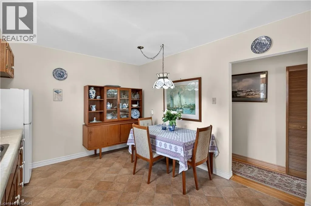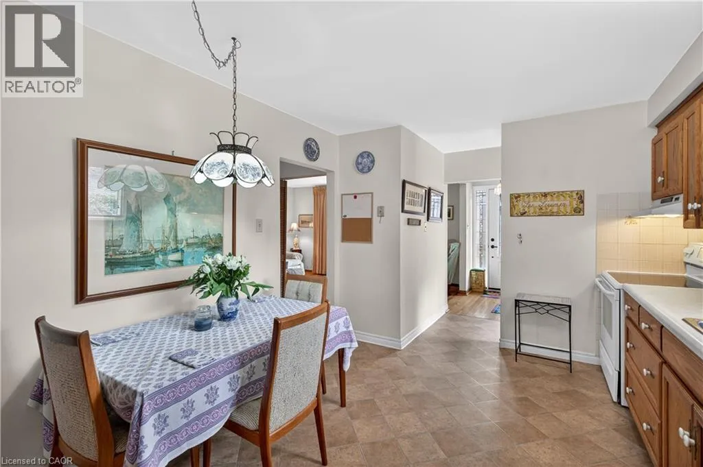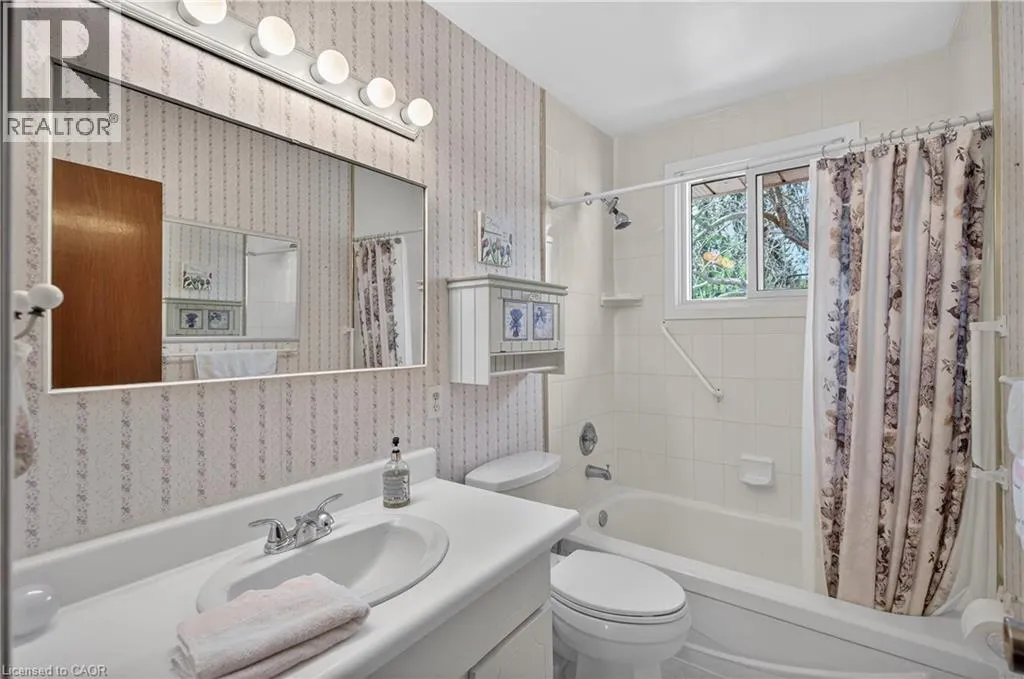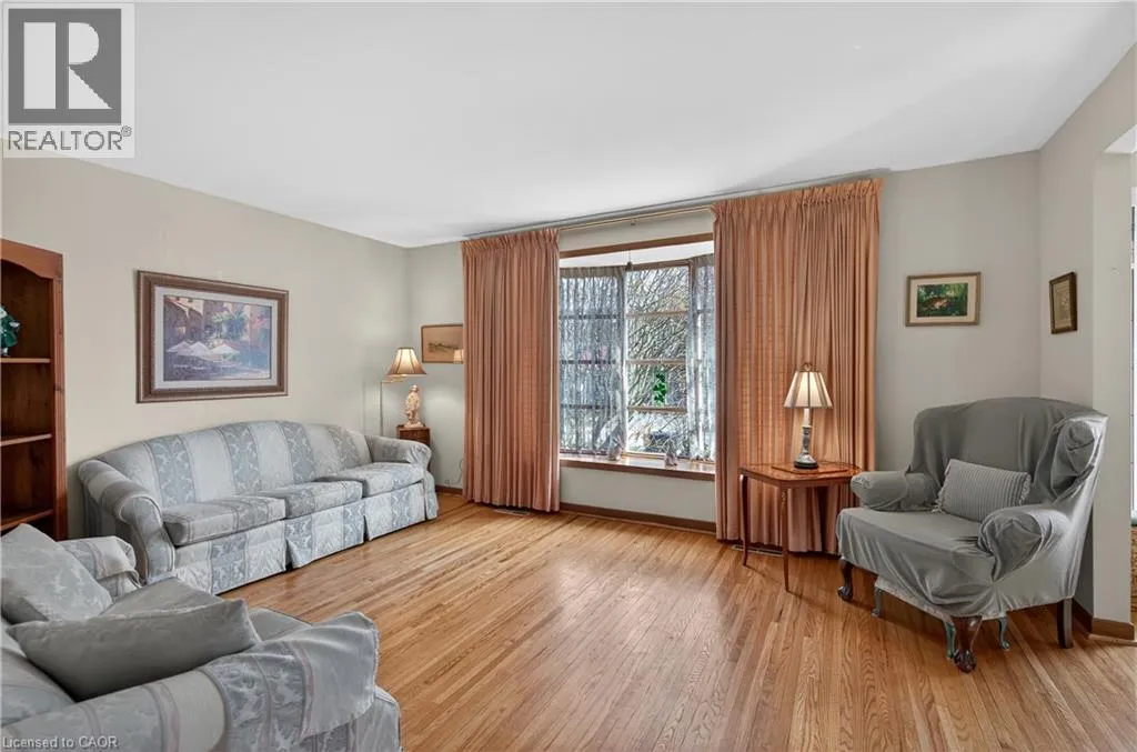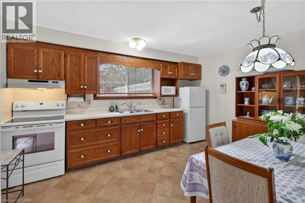 From King E/York, N on York, W on Helen Welcome to 34 Helen Street, a charming brick bungalow ideally situated in the heart of the picturesque town of Dundas. Set on an expansive 50â x 179.22â property (irreg) surrounded by mature trees and lush greenery, this lovingly maintained home offers exceptional outdoor space and a peaceful setting rarely found this close to the vibrant downtown core. Opportunities on this quiet, established street are uncommon, making this a truly special offering in one of Dundasâ most desirable neighbourhoods. An updated front door with sidelight welcomes you into a functional foyer w/ convenient storage closet, opening to a bright and inviting living room filled with natural light from a large bay window & hardwood flooring. The functional eat-in kitchen provides a practical and welcoming environment for preparing meals & family dining. The main level also features 3 spacious bdrms, each complete with hardwood flooring. A well-appointed 4-pc bath with a shower/tub combo offers convenience and functionality. A side-door entrance adds flexibility w/ direct access to both the main and lower levels. The p-fin lower lvl expands the living space w/ a large rec rm perfect for relaxing, hobbies, or entertaining. A den currently utilized as a 4th bdrm, along with laundry facilities & storage/utility space round out the lower lvl. Outside, the deep mature yard provides a private outdoor retreat framed by established foliage. The property also offers impressive parking w/ surfaced parking for 6+ vehicles w/ a convenient carport. Ideally located just minutes from downtown Dundas, residents enjoy easy access to charming boutiques, cafés, restaurants, schools, & everyday amenities. The nearby Dundas Driving Park is a beloved local destination featuring playgrounds, sports fields, tennis, picnic areas, and more. A rare opportunity to own a meticulously maintained home on a deep property in one of Dundasâ most established and sought-after neighbourhoods. (id:27476)