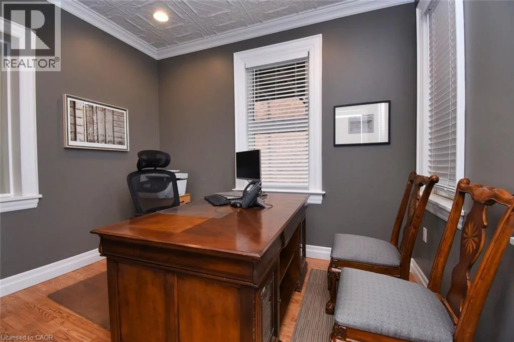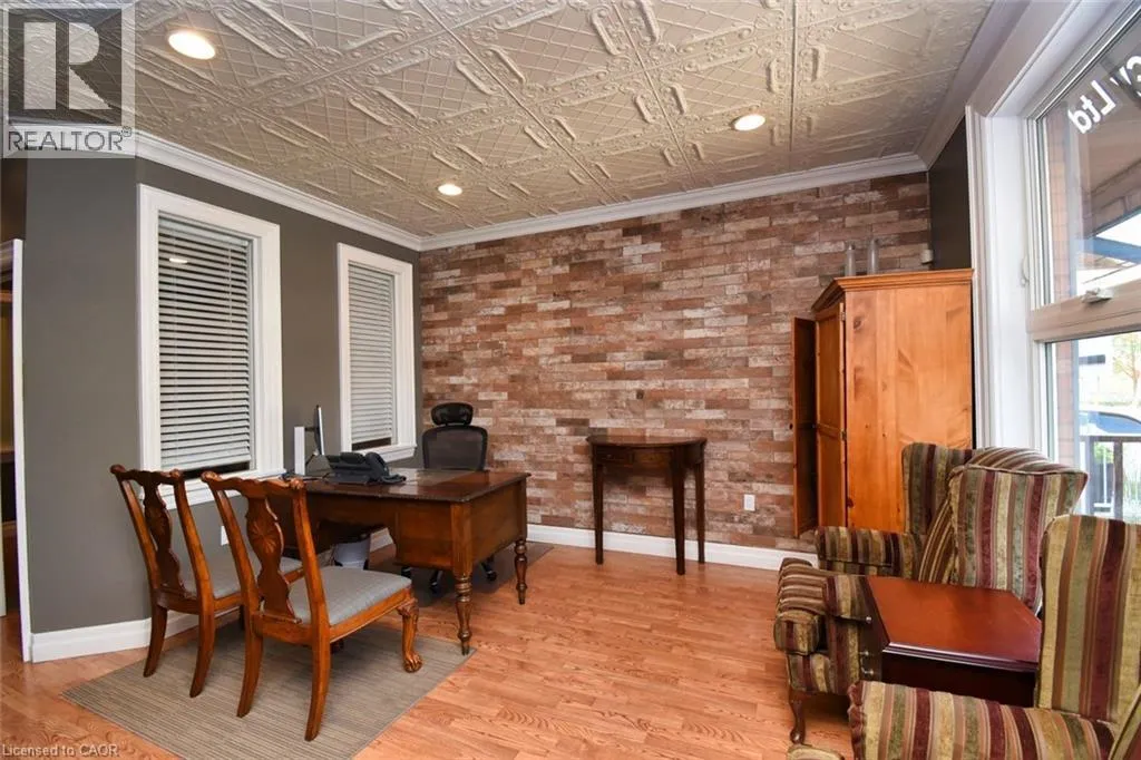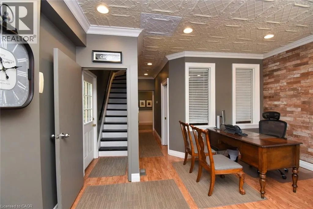 Desirable Dundas! Mixed use zoning. Great live/work set up or investment opportunity. Located just steps away from vibrant downtown Dundas. Total square footage for the building is 1729 sq. ft., maintenance free exterior and single car driveway. The main floor commercial space measures approximately 654 sq. ft. and consists of 2 offices and a reception area. There is a 2 piece bath, small kitchen prep area (counter and sink) and storage in the basement ( approximately 654 sq. ft. below grade) The upper apartment with loft measures approximately 1075 sq. ft. and has a sharp, trendy vibe! The upgraded kitchen has SS appliances and subway tile. The 3 piece bath has a walk in shower with glass doors and there is in-suite laundry. There is a balcony off the sitting room. The present room layout can be easily re-arranged to accommodate a different floor plan. Amazing opportunity. (id:27476)