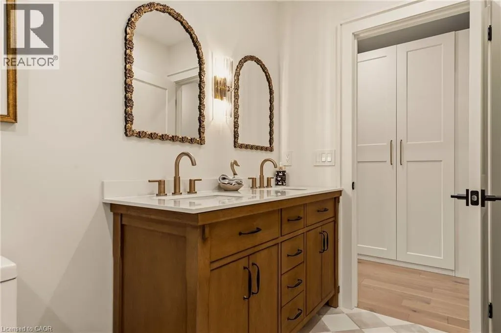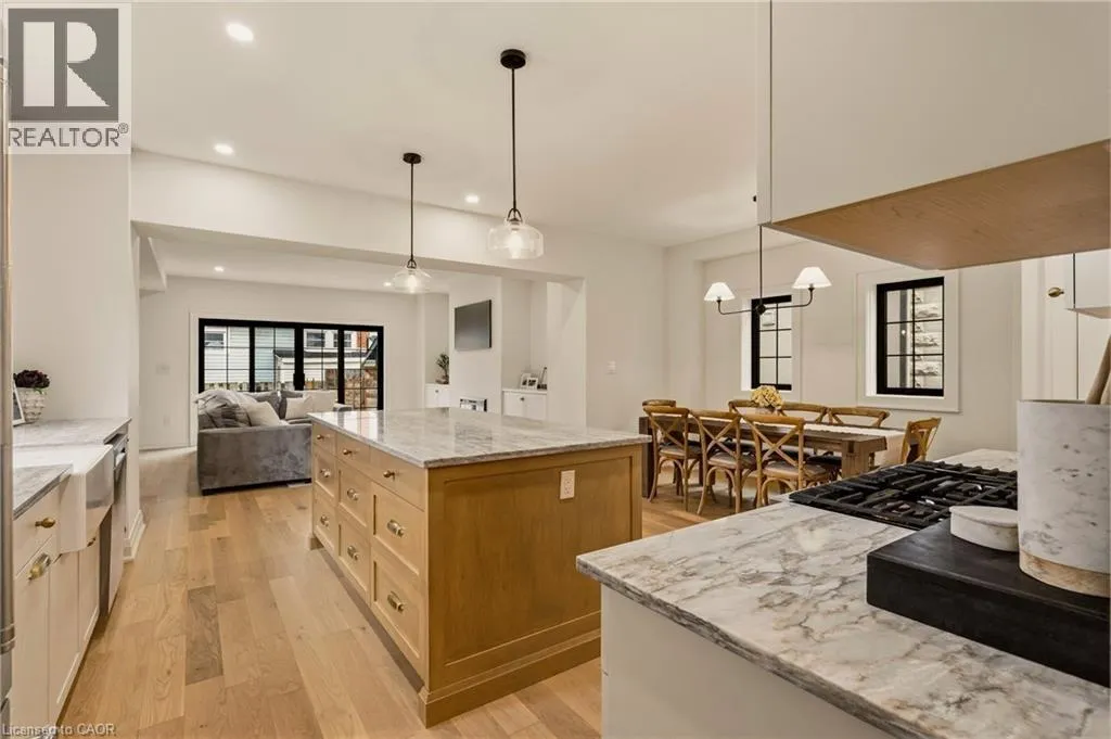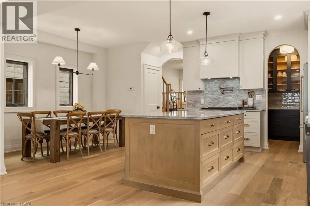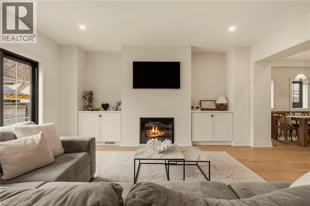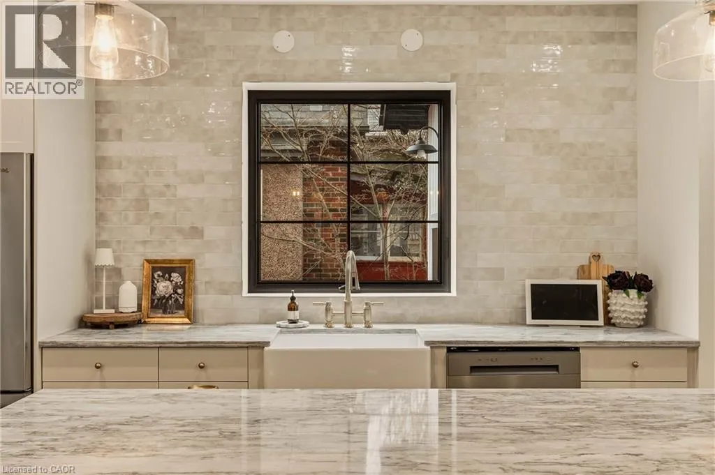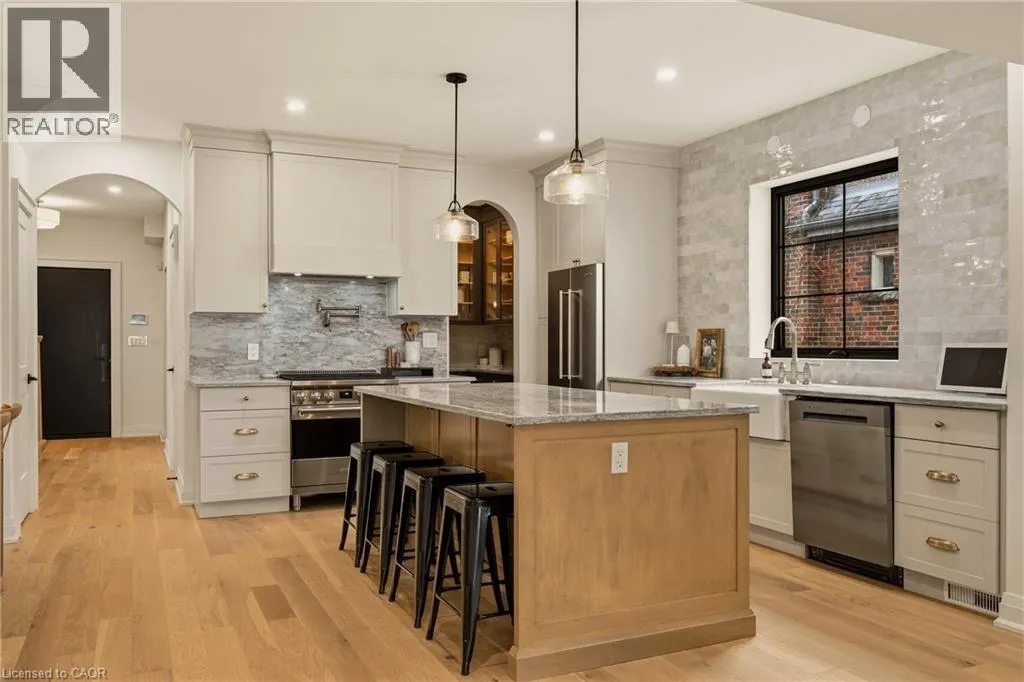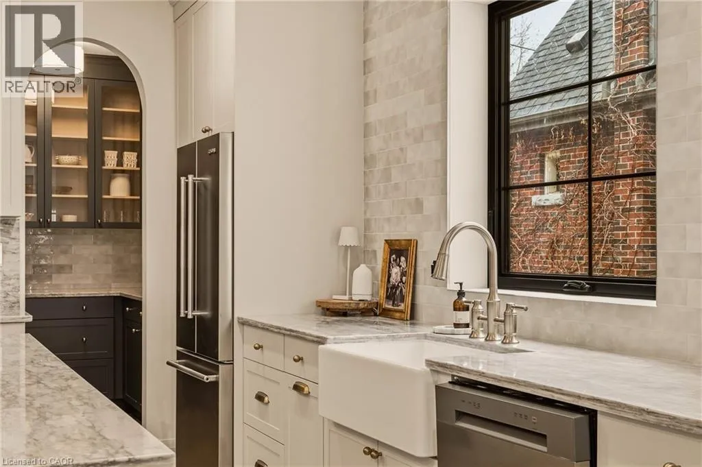 FROM KING ST W (DOWNTOWN DUNDAS) TURN NORTH ONTO MATILDA ST N Step into a beautifully reimagined turn-of-the-century 2.5-storey brick home, where extensive renovations and thoughtful additions have transformed it into a stunning blend of historic charm and modern livingâall perfectly set in the heart of downtown Dundas. A charming interlock walkway winds through lush perennial gardens to a welcoming covered front porchâan ideal spot to enjoy your morning coffee while taking in the peaceful, highly sought-after neighbourhood. Inside, timeless character blends beauty with thoughtful modern updates. The fully renovated main floor, complete with a seamless addition, showcases a dream kitchen designed to inspire both everyday living and effortless entertaining. Rich hardwood floors, beautiful office space, a warm and inviting living room, and a dedicated dining area create the perfect backdrop for gathering with family and friends, while a convenient mudroom offers easy access to the 3/4 garage. Upstairs, a stunning second-floor addition and renovation elevate the home with a beautifully finished primary retreat, featuring a spacious walk-in closet and a spa-like 5-piece ensuite. Additional bedrooms are generously sized and complemented by a well-appointed main bathroom. The third level offers even more versatility, with two extra bedrooms, perfect for that growing family or as exercise and creative spaces. This move-in ready gem offers the perfect balance of historic charm and modern livingâan exceptional opportunity in one of Dundasâ most desirable locations. (id:27476)
