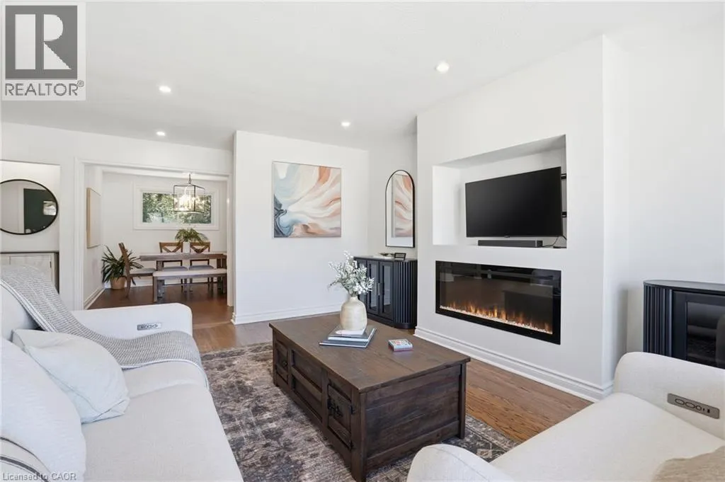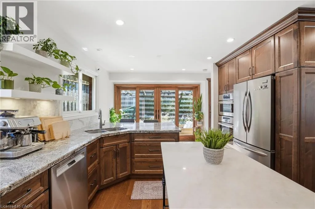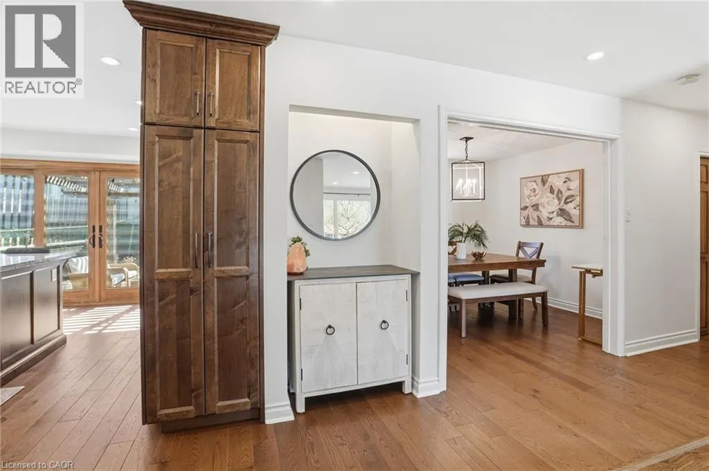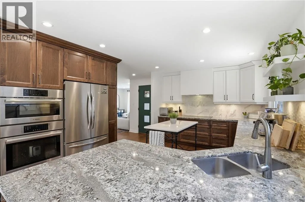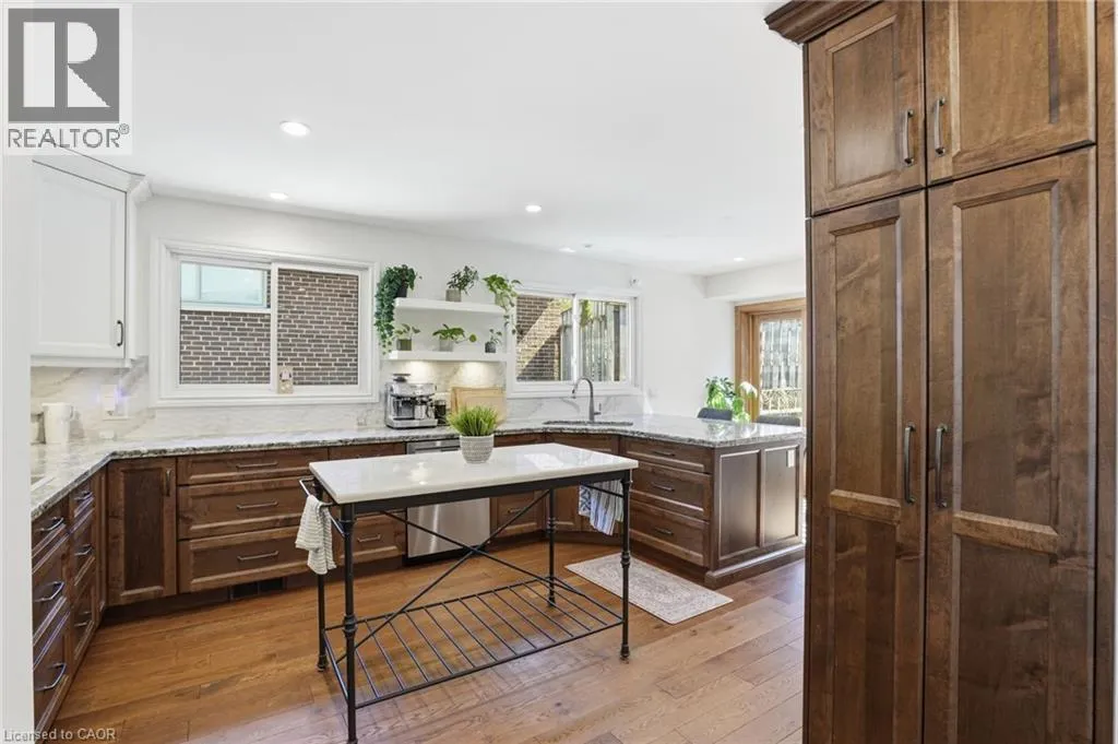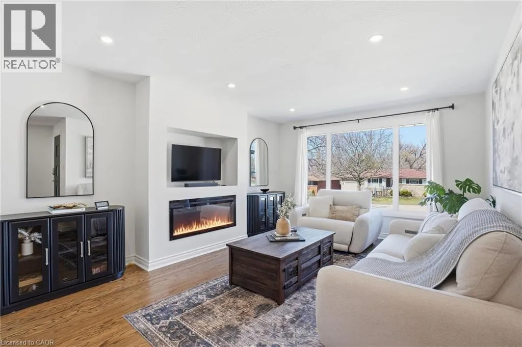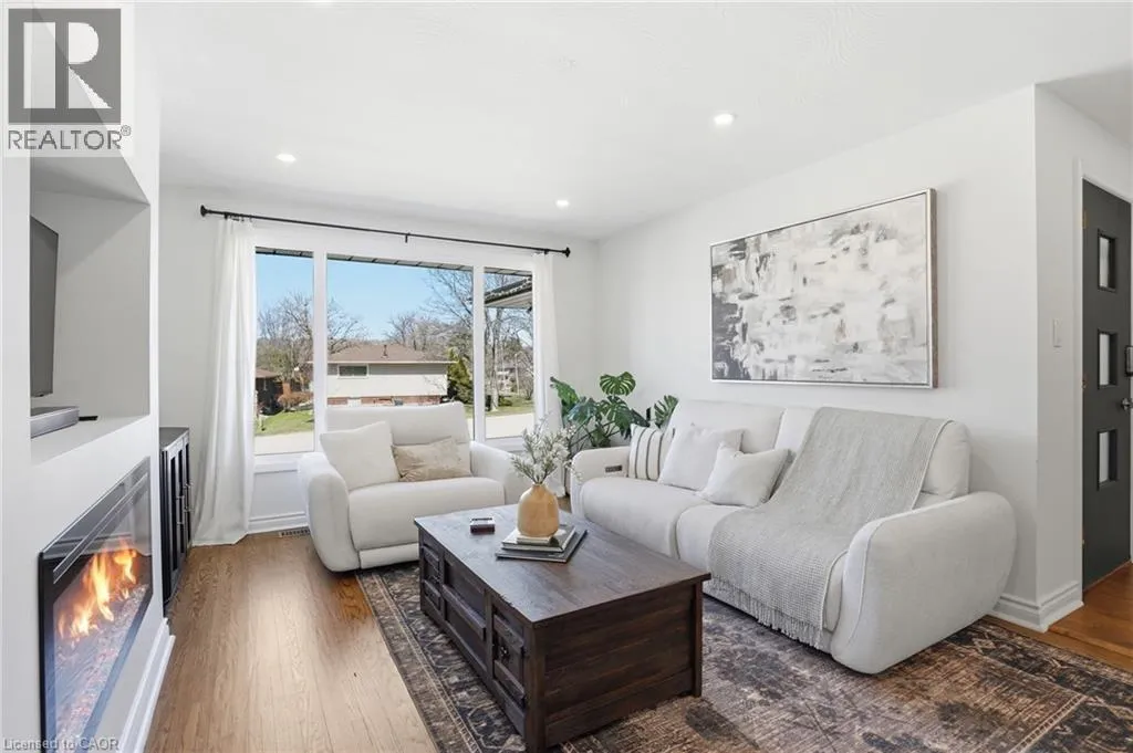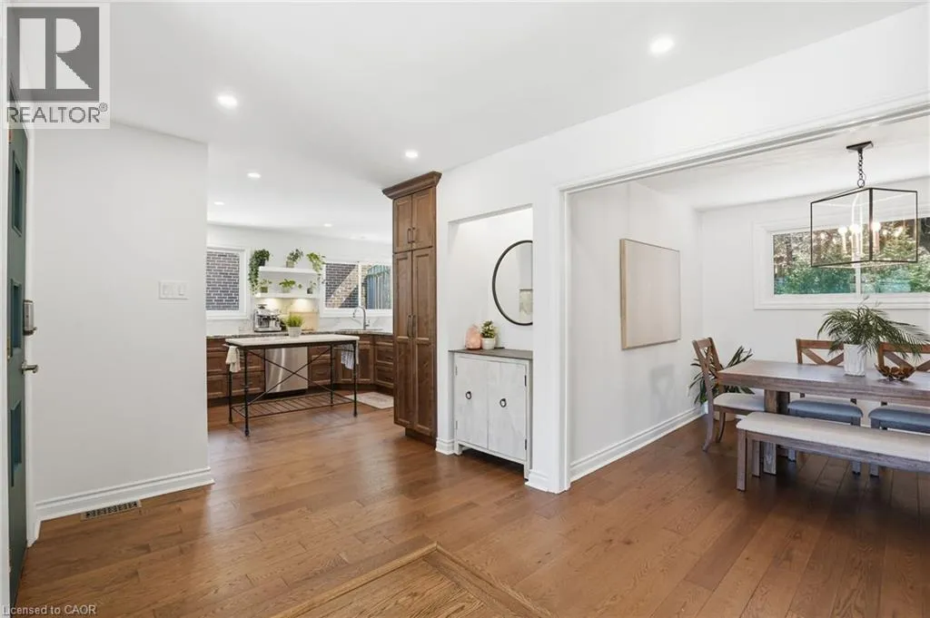 Old Ancaster Rd to Pleasant Ave Welcome to 84 Pleasant Avenue - a beautifully updated and move-in-ready 3-bedroom, two-bathroom home. The open-concept main floor features hardwood floors, custom millwork, and a gorgeous, gourmet kitchen with granite counters, Bosch appliances, peninsula seating, double sinks, and a porcelain backsplash. It includes a walkout to a private, landscaped yard with a pergola, 2 patios, and a gas BBQ hookup. Completing the main floor is a separate dining room (could be converted back to a bedroom - custom doors in garage), naturally bright and spacious living room with a built in electric fireplace, an updated, designer inspired main bathroom plus two bedrooms. Downstairs you'll find the fully finished basement (taken down to the studs in 2022). It features a huge rec room with bar area + gas fireplace, third bedroom, laundry with additional storage area / gym area, recently updated bathroom, separate room for office / craft room, plus a separate entranceâideal for an in-law set up or teen retreat. Additional updates include pot lights throughout, beautifully finished hardwood , updated fixtures, landscaping and so much more. Parking for 4 cars plus a garage. Minutes to trails and close to everything Dundas has to offer. (id:27476)