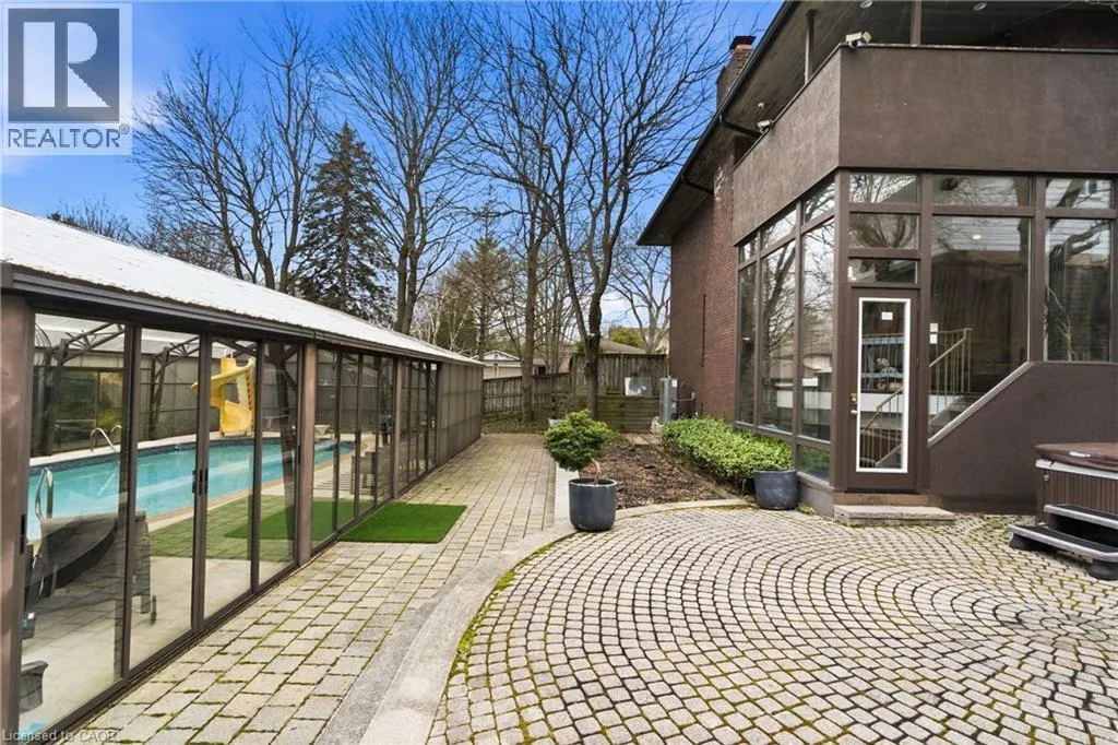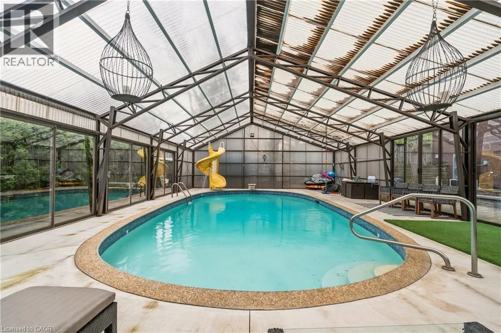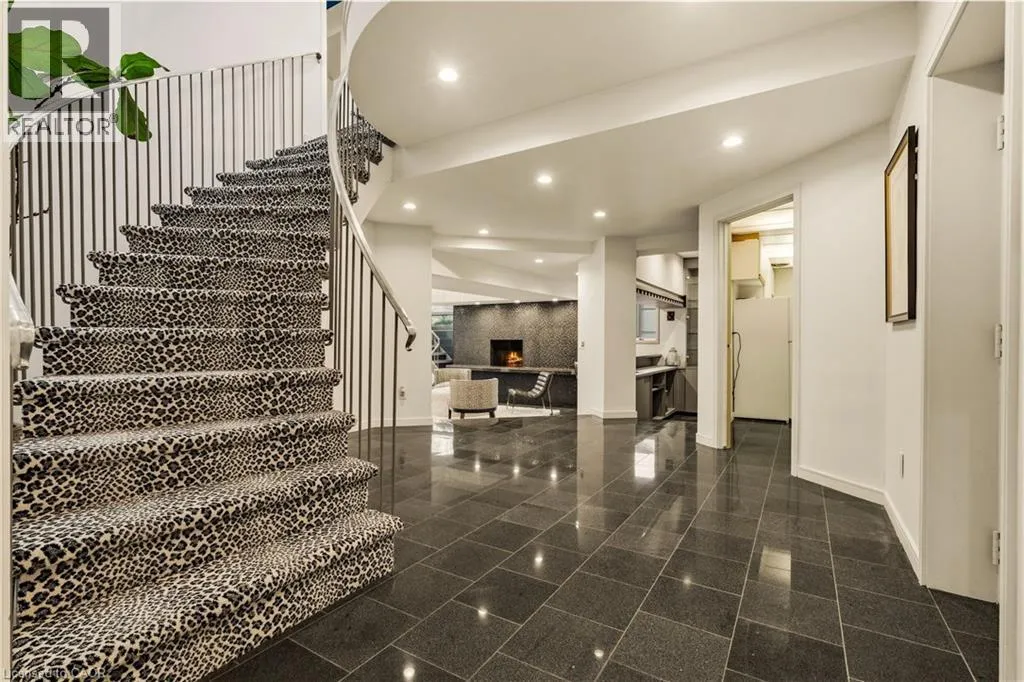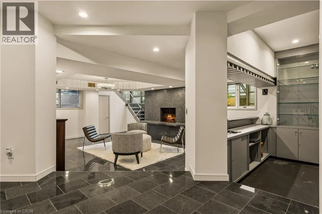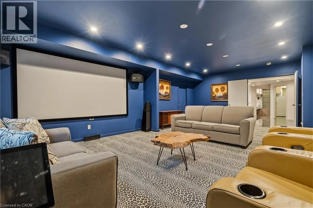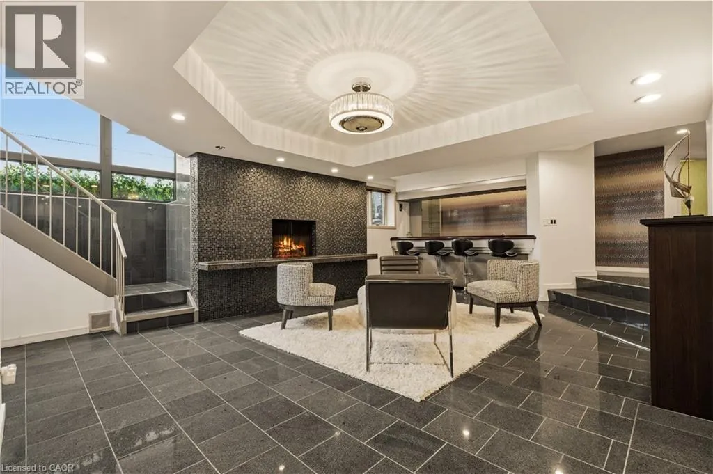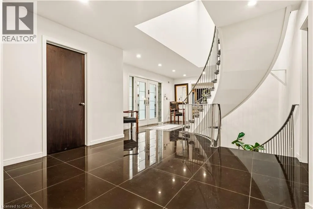 From Old Ancaster Rd continue onto Turnbull Rd, then turn left onto Terrace Dr In the picturesque Dundas community of Pleasant Valley sits this extraordinary custom residence offering an elevated standard of living defined by impeccable craftsmanship and timeless design. Built by McConnell Homes, this distinguished all-brick two-storey spans over 4,500+ sqft above grade, plus 2,200+ sqft of exquisitely finished living space below. A grand double-door entry introduces an opulent Bisazza Italian stone foyer, setting the tone for the elegance that unfolds throughout. A sweeping staircase, adorned with luxurious Stark wool carpeting, anchors the home with architectural grace. The principal living spaces are thoughtfully designed for both grand entertaining and intimate gatherings, featuring wire-brushed hardwood floors and an effortless flow from formal living and dining areas into the heart of the home. The chef-inspired kitchen is a culinary showpiece, appointed with premium KitchenAid appliances, bespoke cabinetry, and generous prep space. The adjoining great room is equally captivating, highlighted by a striking imported Bisazza fireplace and seamless access to a private, resort-style backyard. Upstairs, natural light pours through a dramatic skylight, illuminating a spa-inspired ensuite featuring a jacuzzi tub, separate shower, dual walk-in closets, a private office, and a secluded terrace overlooking the gardens. Three additional bedrooms and two beautifully appointed bathrooms complete the upper level. The lower level is an entertainerâs dream, with a richly finished family room, fireplace, granite flooring, wet bar, private theatre, kitchenette, and guest suite with ensuite bath. Walk-out to the multi-tiered interlock patio, covered in-ground concrete pool, and dedicated pool lounge - an outdoor retreat surrounded by mature landscaping, set on an oversized double lot. The property offers dual driveways from both Turnbull and Terrace, and a double garage with interior accessâan exceptional offering of sophistication, comfort, and prestige. (id:27476)