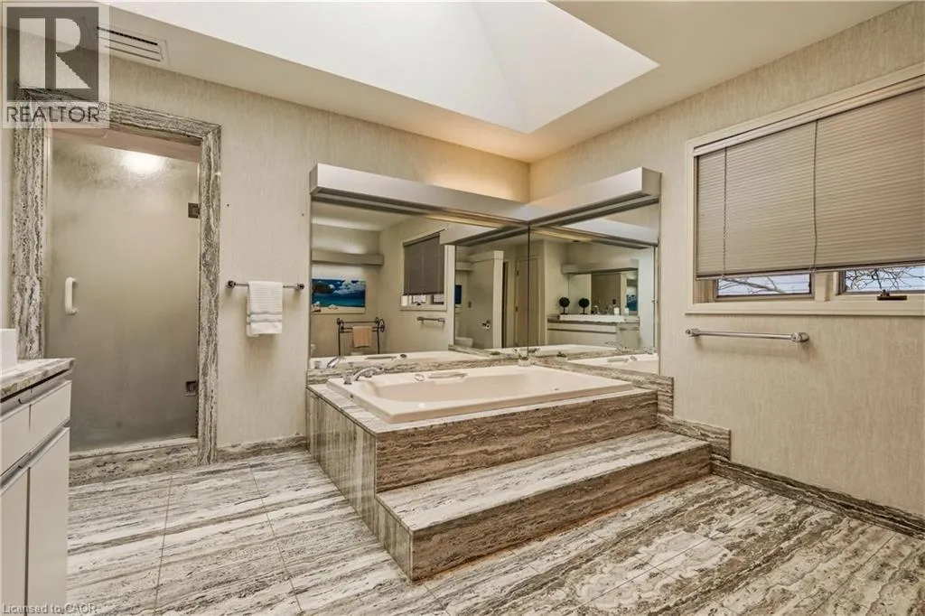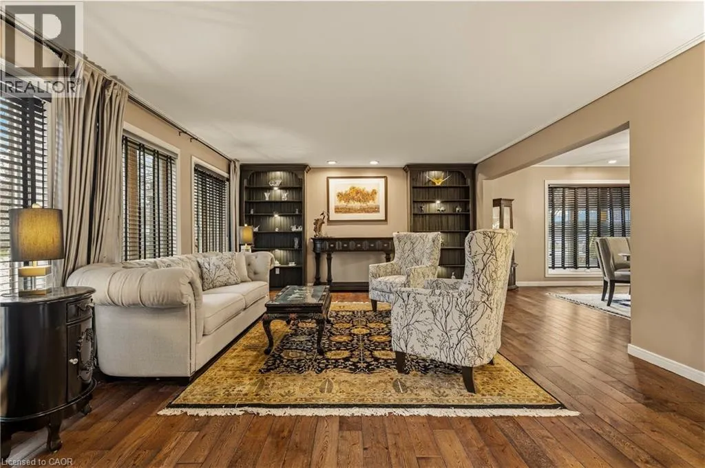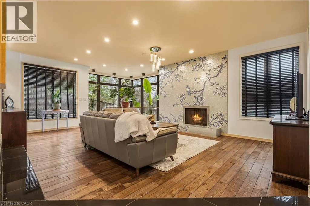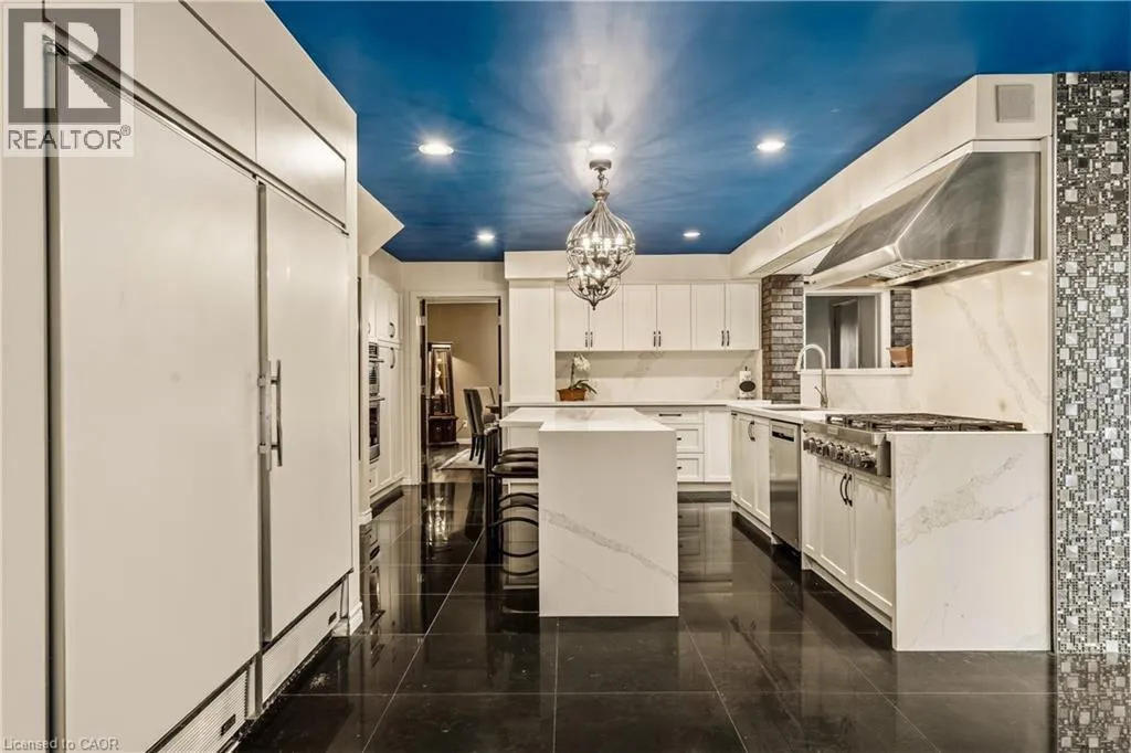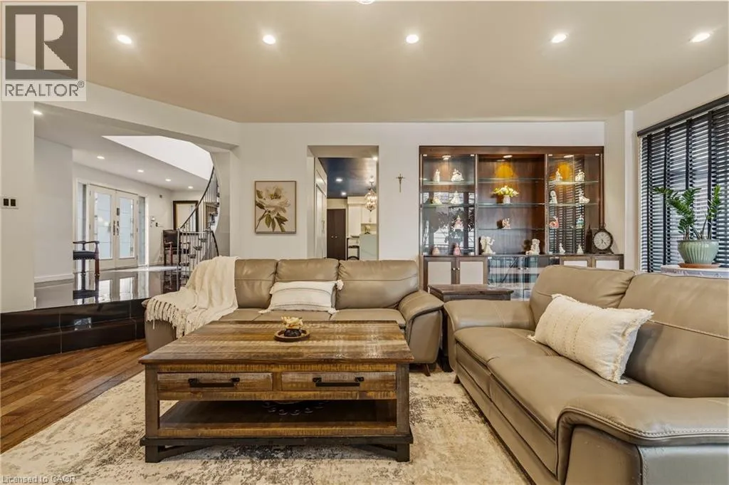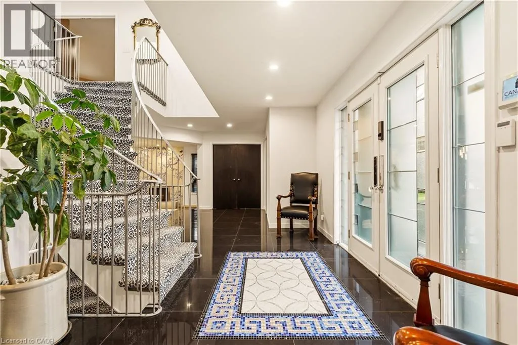 From Old Ancaster Rd continue onto Turnbull Rd, then turn left onto Terrace Dr In the picturesque Dundas community of Pleasant Valley sits this extraordinary custom residence offering an elevated standard of living defined by impeccable craftsmanship and timeless design. Built by McConnell Homes, this distinguished all-brick two-storey spans over 4,500+ sqft above grade, plus 2,200+ sqft of exquisitely finished living space below. A grand double-door entry introduces an opulent Bisazza Italian stone foyer, setting the tone for the elegance that unfolds throughout. A sweeping staircase, adorned with luxurious Stark wool carpeting, anchors the home with architectural grace. The principal living spaces are thoughtfully designed for both grand entertaining and intimate gatherings, featuring wire-brushed hardwood floors and an effortless flow from formal living and dining areas into the heart of the home. The chef-inspired kitchen is a culinary showpiece, appointed with premium KitchenAid appliances, bespoke cabinetry, and generous prep space. The adjoining great room is equally captivating, highlighted by a striking imported Bisazza fireplace and seamless access to a private, resort-style backyard. Upstairs, natural light pours through a dramatic skylight, illuminating a spa-inspired ensuite featuring a jacuzzi tub, separate shower, dual walk-in closets, a private office, and a secluded terrace overlooking the gardens. Three additional bedrooms and two beautifully appointed bathrooms complete the upper level. The lower level is an entertainerâs dream, with a richly finished family room, fireplace, granite flooring, wet bar, private theatre, kitchenette, and guest suite with ensuite bath. Walk-out to the multi-tiered interlock patio, covered in-ground concrete pool, and dedicated pool lounge - an outdoor retreat surrounded by mature landscaping, set on an oversized double lot. The property offers dual driveways from both Turnbull and Terrace, and a double garage with interior accessâan exceptional offering of sophistication, comfort, and prestige. (id:27476)