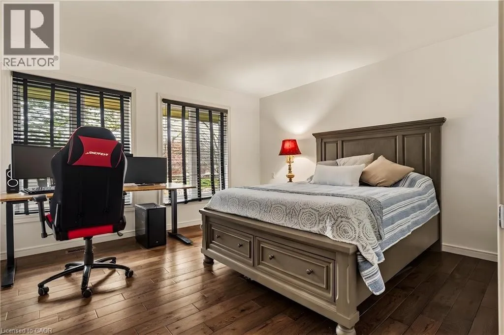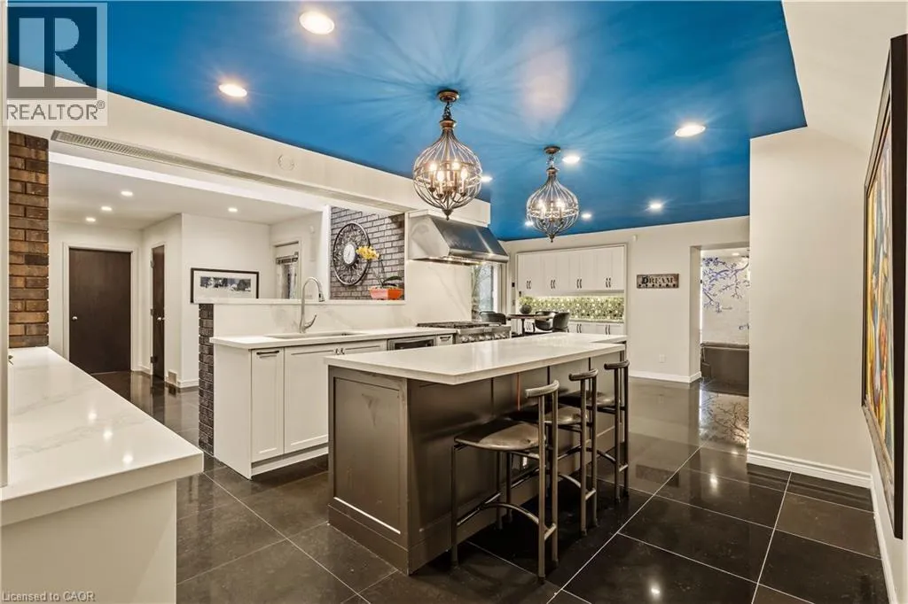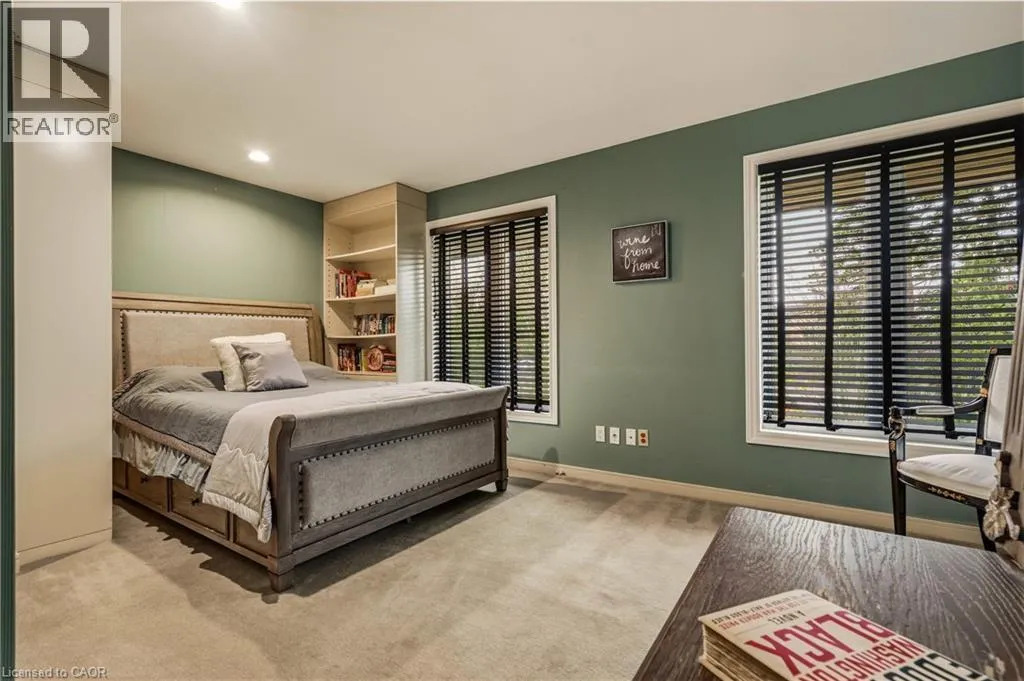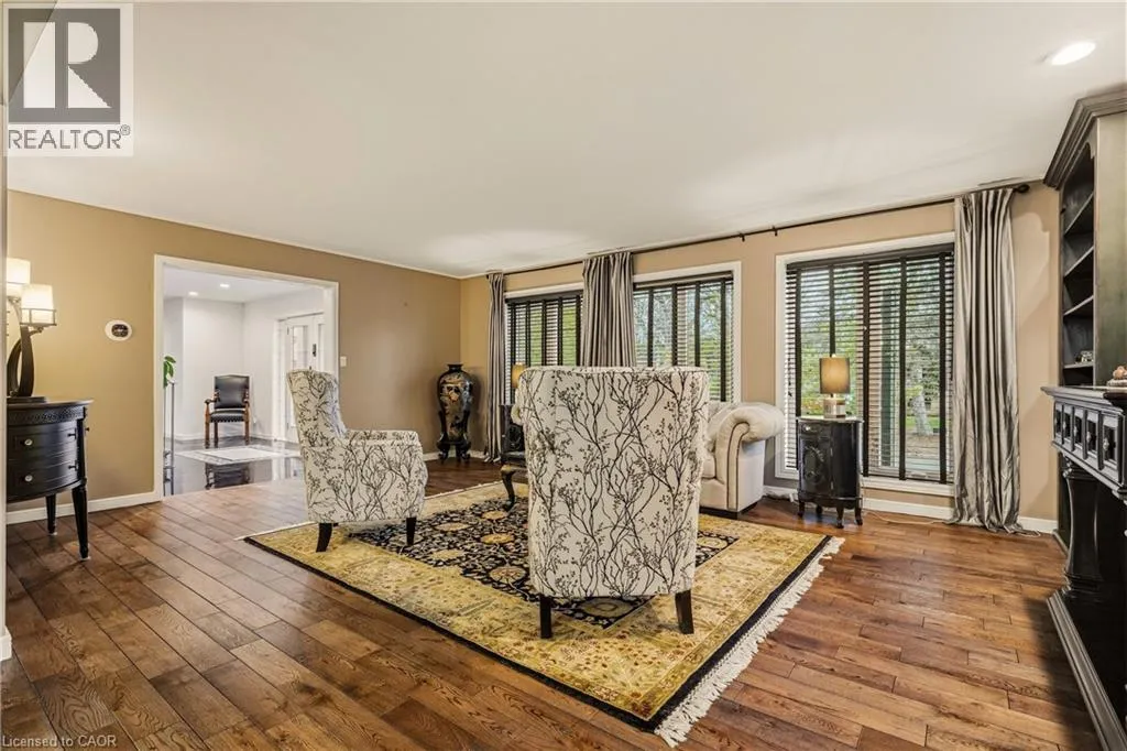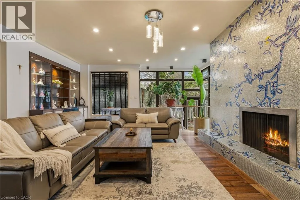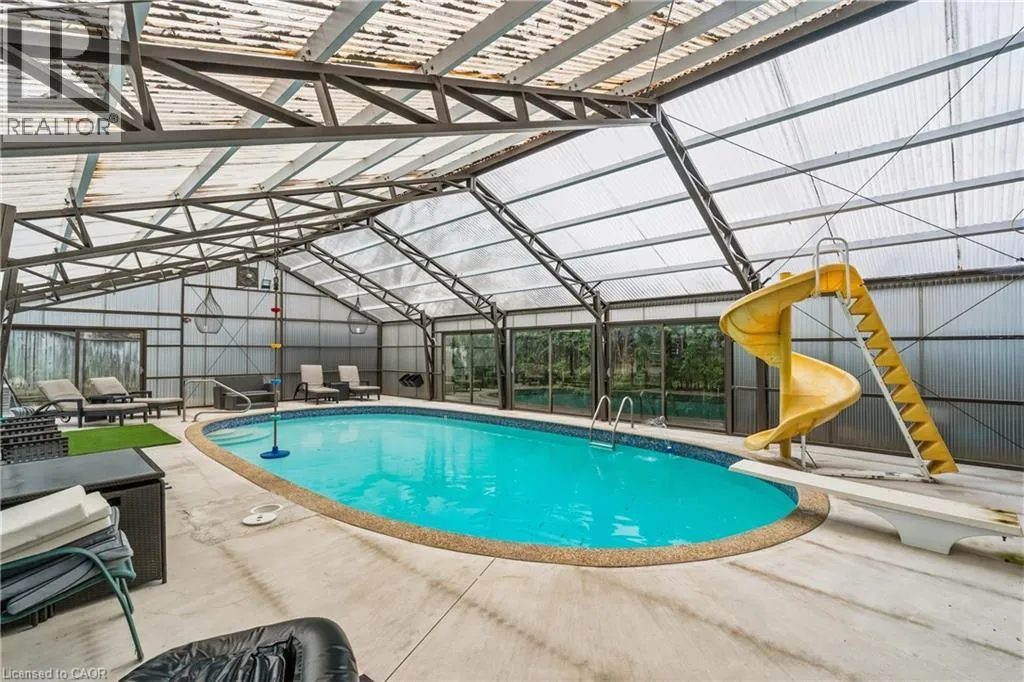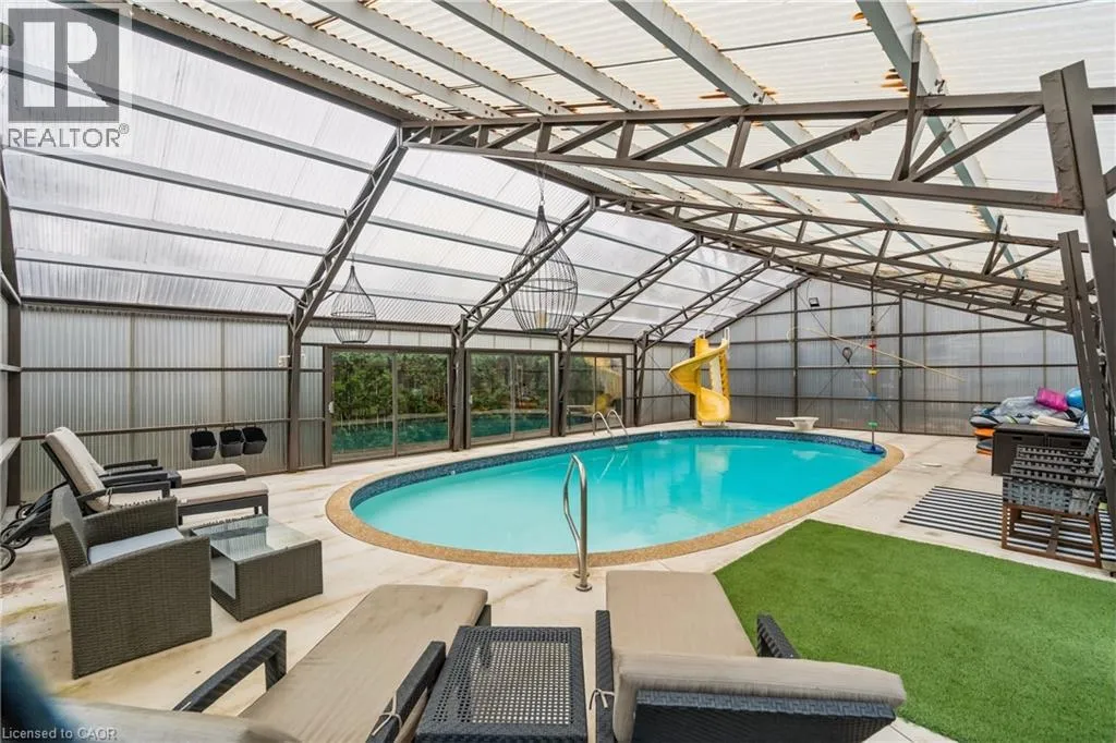 From Old Ancaster Rd continue onto Turnbull Rd, then turn left onto Terrace Dr In the picturesque Dundas community of Pleasant Valley sits this extraordinary custom residence offering an elevated standard of living defined by impeccable craftsmanship and timeless design. Built by McConnell Homes, this distinguished all-brick two-storey spans over 4,500+ sqft above grade, plus 2,200+ sqft of exquisitely finished living space below. A grand double-door entry introduces an opulent Bisazza Italian stone foyer, setting the tone for the elegance that unfolds throughout. A sweeping staircase, adorned with luxurious Stark wool carpeting, anchors the home with architectural grace. The principal living spaces are thoughtfully designed for both grand entertaining and intimate gatherings, featuring wire-brushed hardwood floors and an effortless flow from formal living and dining areas into the heart of the home. The chef-inspired kitchen is a culinary showpiece, appointed with premium KitchenAid appliances, bespoke cabinetry, and generous prep space. The adjoining great room is equally captivating, highlighted by a striking imported Bisazza fireplace and seamless access to a private, resort-style backyard. Upstairs, natural light pours through a dramatic skylight, illuminating a spa-inspired ensuite featuring a jacuzzi tub, separate shower, dual walk-in closets, a private office, and a secluded terrace overlooking the gardens. Three additional bedrooms and two beautifully appointed bathrooms complete the upper level. The lower level is an entertainerâs dream, with a richly finished family room, fireplace, granite flooring, wet bar, private theatre, kitchenette, and guest suite with ensuite bath. Walk-out to the multi-tiered interlock patio, covered in-ground concrete pool, and dedicated pool lounge - an outdoor retreat surrounded by mature landscaping, set on an oversized double lot. The property offers dual driveways from both Turnbull and Terrace, and a double garage with interior accessâan exceptional offering of sophistication, comfort, and prestige. (id:27476)