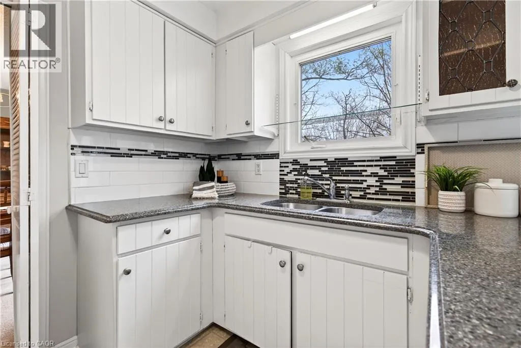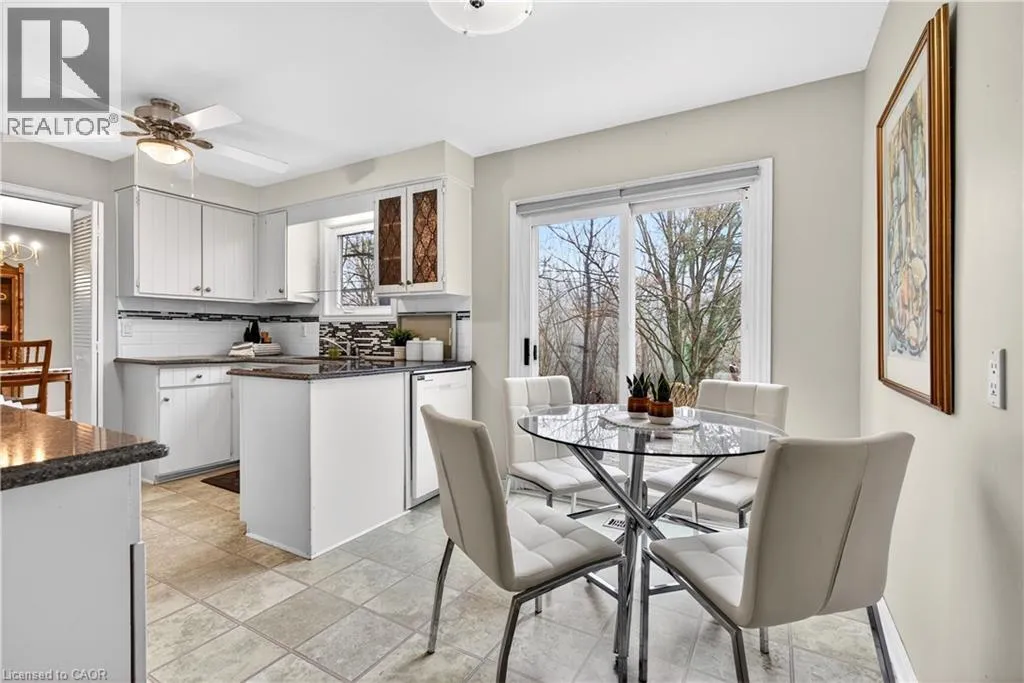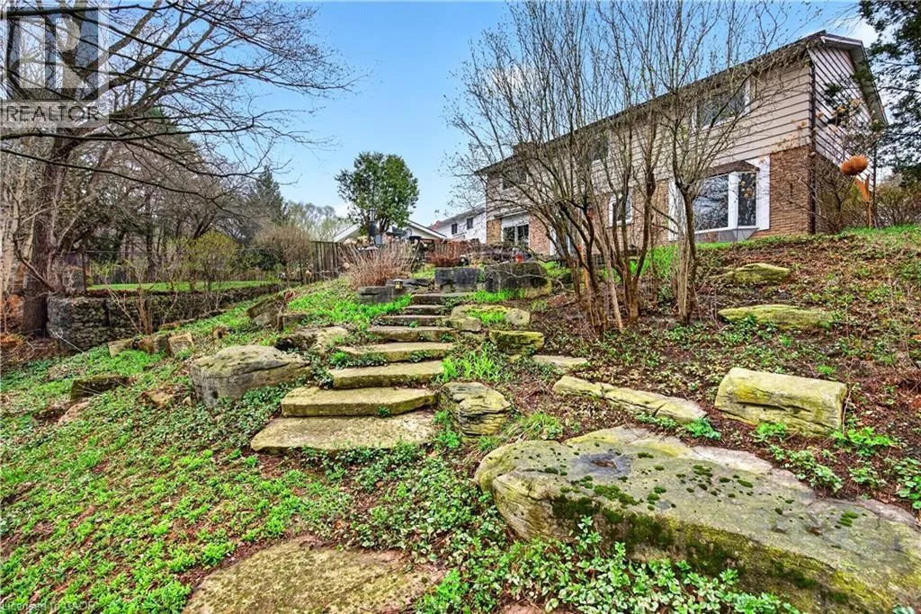 Old Ancaster Rd. to Turnbull Rd. Well-loved home, proudly cared for by the same owner for many years. Set on a quiet street where neighbours feel more like family. Just steps to nature trails at the end of the street, with beautiful ravine views, mature trees, wildlife and a peaceful stream. Thoughtful layout with a bright living room, eat-in kitchen, separate dining room, and a cozy den with fireplace. Main floor laundry. Upstairs features four good-sized bedrooms, including a spacious primary with walk-in closet and ensuite. Partially finished basement with a family room, plenty of storage, workshop space, and office. Deck and gardens overlooking the ravine, surrounded by trees and nature. Views like this donât come up often. (id:27476)