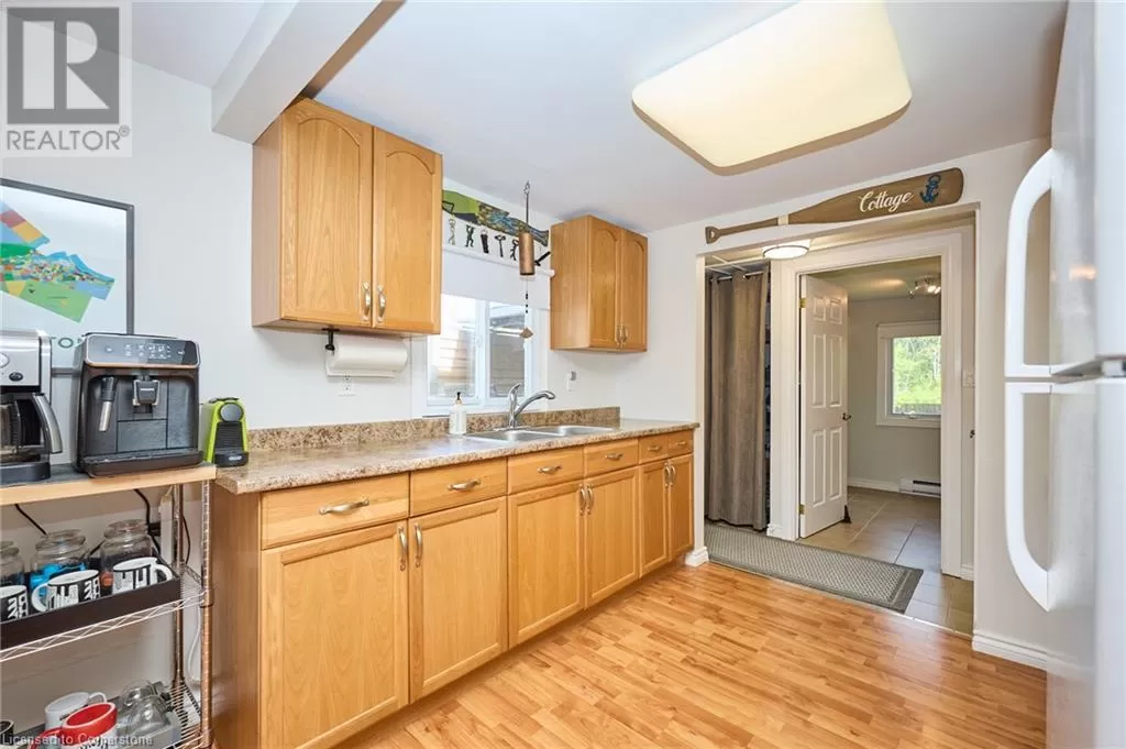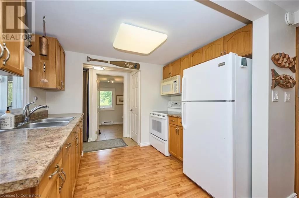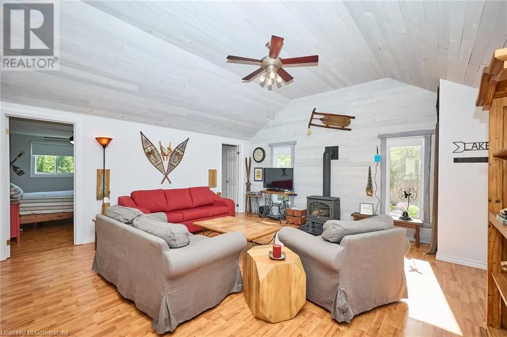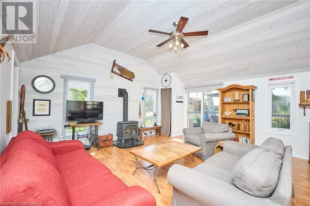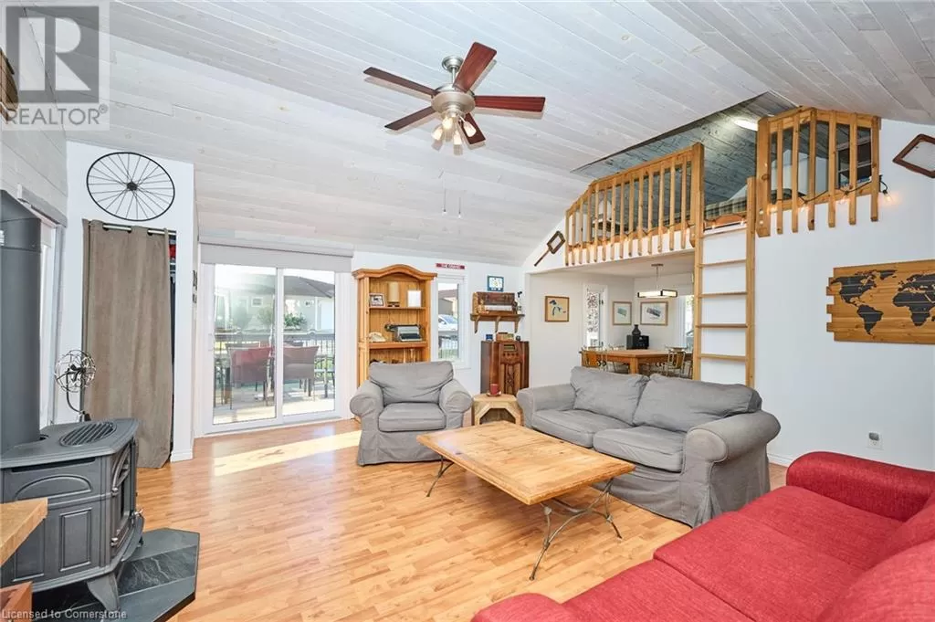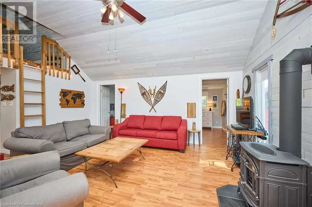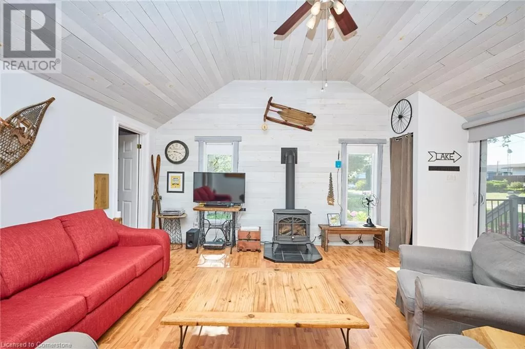 Take Rainham Road to Marshall Road and head South. Turn right on Kings row and left on Baygrove Line. Go right at the stop sign and house is on your right. Escape to your own piece of paradise with this beautifully renovated year-round dwelling by the lake â the perfect blend of comfort and modern amenities. Nestled just steps from the water, this 2 bedroom plus loft home offers a tranquil lifestyle ideal for fulltime living or a weekend getaway. From the moment you arrive, youâll be captivated by the inviting curb appeal. The property sits on a fully fenced yard, providing privacy, security, and a great space for kids and pets to play. Enjoy morning coffee or evening sunsets from the spacious deck, where gentle lake breezes and birdsong create a peaceful setting. Step inside to discover a bright, open-concept interior where every inch has been thoughtfully updated. The O/C kitchen offers updated counters and cabinetry with room to entertain, opening seamlessly to the living area â perfect for entertaining or cozy nights by the fire. High ceilings and large windows fill the space with natural light while offering glimpses of the lake. Bedrooms are comfortably sized, with a loft providing a space that can serve as a 3rd bedroom, office, or reading nook. The bathroom has been remodeled with stylish finishes and modern fixtures, giving a fresh, contemporary feel. Outside, youâll find ample space for gatherings, BBQ's, or simply relaxing under the stars. The fenced yard includes a storage shed â perfect for your outdoor gear, tools, or lake toys. Recent updates include metal roof and eaves, some windows, patio door and side entry door to raised BBQ deck, spray foam insulation, propane fireplace and BBQ line, updated bath including shower and toilet, electrical, shiplap ceilings, and exterior paint, offering true turnkey living with nothing left to do but move in and enjoy. Located just a short drive from town amenities yet surrounded by nature, this home delivers the ideal balance of convenience and escape. Whether youâre looking for a peaceful lakeside home or a stylish four-season getaway, this property has it all. (id:27476)