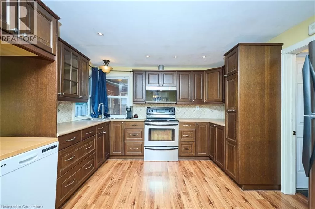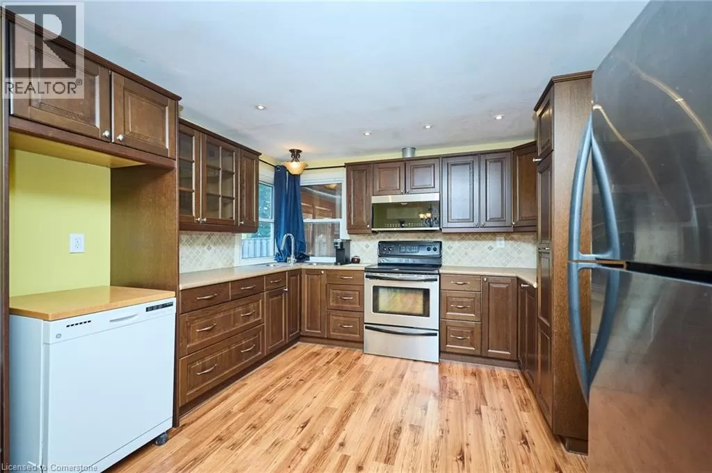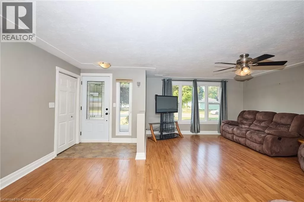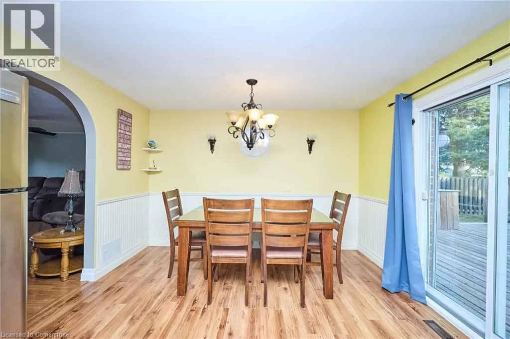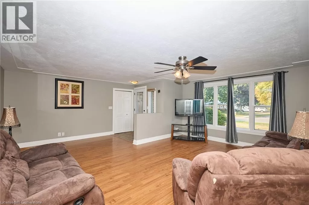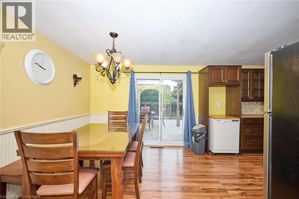 Take HWY #3 to Dunnville and head North to John Street. Go right on Park avenue and house is on your left Welcome to your dream home in the heart of Dunnville, where comfort, character, and convenience come together in this beautifully maintained 3+ 1 bedroom brick bungalow. Perfectly situated on a quiet, family-friendly street, this home offers everything you need for modern living in a peaceful small-town setting. From the moment you arrive, the home's classic brick exterior and neatly landscaped front yard make a warm and inviting impression. Step inside to find a bright and spacious living room with large windows that flood the space with natural light. The eat-in kitchen is both functional and stylish, featuring plenty of cabinetry, updated countertops, and a patio door to a large raised rear deck â perfect for family meals or entertaining guests. Just down the hall, youâll find three generously sized bedrooms, each with large windows, along with a recently updated 4-piece bathroom thatâs fresh and modern. But the real surprise awaits downstairs. The fully finished basement offers a huge amount of extra living space, ideal for a family room, games room, home gym, or even a potential in-law suite. There's also a separate laundry area, an additional bathroom, and lots of storage options. Step out to the private backyard, where youâll find a lovely deck and patio area, ideal for summer barbecues or simply relaxing with a good book. The attached garage and double paved driveway offers plenty of parking space for you and your guests. This home has been lovingly cared for and updated over the years, with major improvements including newer windows, furnace, and roof, giving you peace of mind for years to come. Located just minutes from local schools, parks, local hospital, the Grand River, and all of Dunnvilleâs shops and amenities, this home combines small-town charm with everyday convenience. Whether youâre a first-time buyer, downsizing, or looking for a solid investment, this home is a fantastic opportunity. Don't miss your chance to own this move-in ready bungalow. (id:27476)
