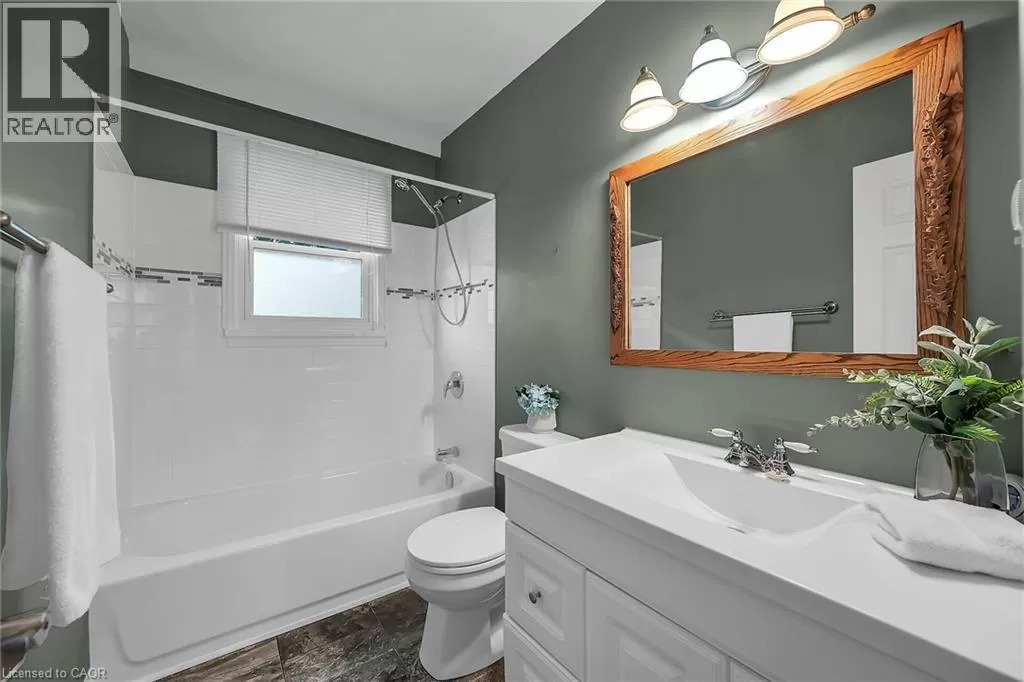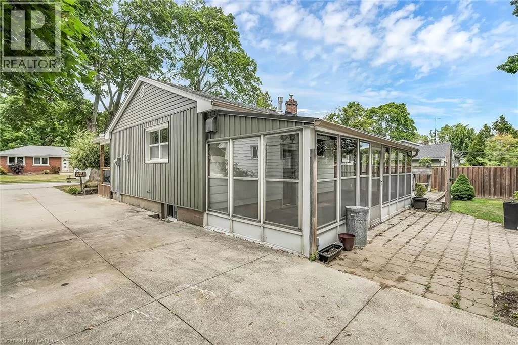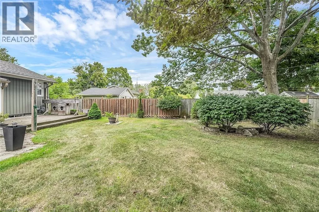 John Street & Park Street on Elizabeth Cr Solid, well maintained and updated bungalow on nice size lot with stunning curb appeal on a quiet street in the friendly town of Dunnvillle, includes bonus detached outbuilding. The home features two bedrooms (was a 3 bedroom design, and can be coverted back), two bathrooms, a fully finished basement with extra bedroom, and sunroom at the back. Updated kitchen featuring dark cabinetry & tile backsplash, living room with modern laminate flooring and new gas fireplace in a beautiful white wood mantel (2024), dining area, bright master bedroom with gas fireplace (non operational), additional bedroom, plus 4 piece bath. Back sunporch/screen room is a bonus three season space. Downstairs includes an L shaped family rm with bar area, bedroom with egress window & a closet, two piece bath plus utility/laundry room - 100 amp electrical, newer sump pump, rented hot water tank and recently rebuilt natural gas furnace (plus central air). Basement waterproofing completed in 2009 and is still under its 20 year warranty, with no issues. Vinyl windows (2019), gorgeous front porch added in 2019 as well as updated vinyl siding the same year. Bonus outbuilding (16.5x35.5) with high ceiling (ideal for a hoist) is insulated, has concrete floor, and power as well as an automatic garage door opener. Has a steel roof that was installed in 2024. Sunroom roof also done in 2024. The rest ofd the roof looks in good condition. Concrete driveway, interlock stone area/walkways and lovely landscaping in the rear fenced yard. This home is move in ready and wont last! (id:27476)