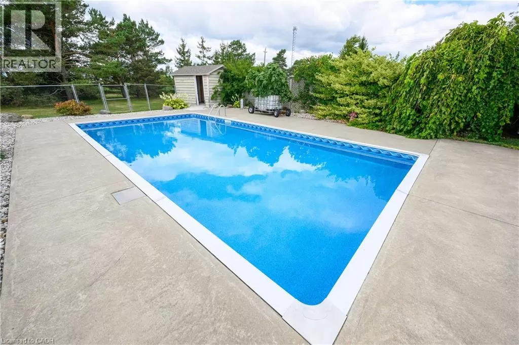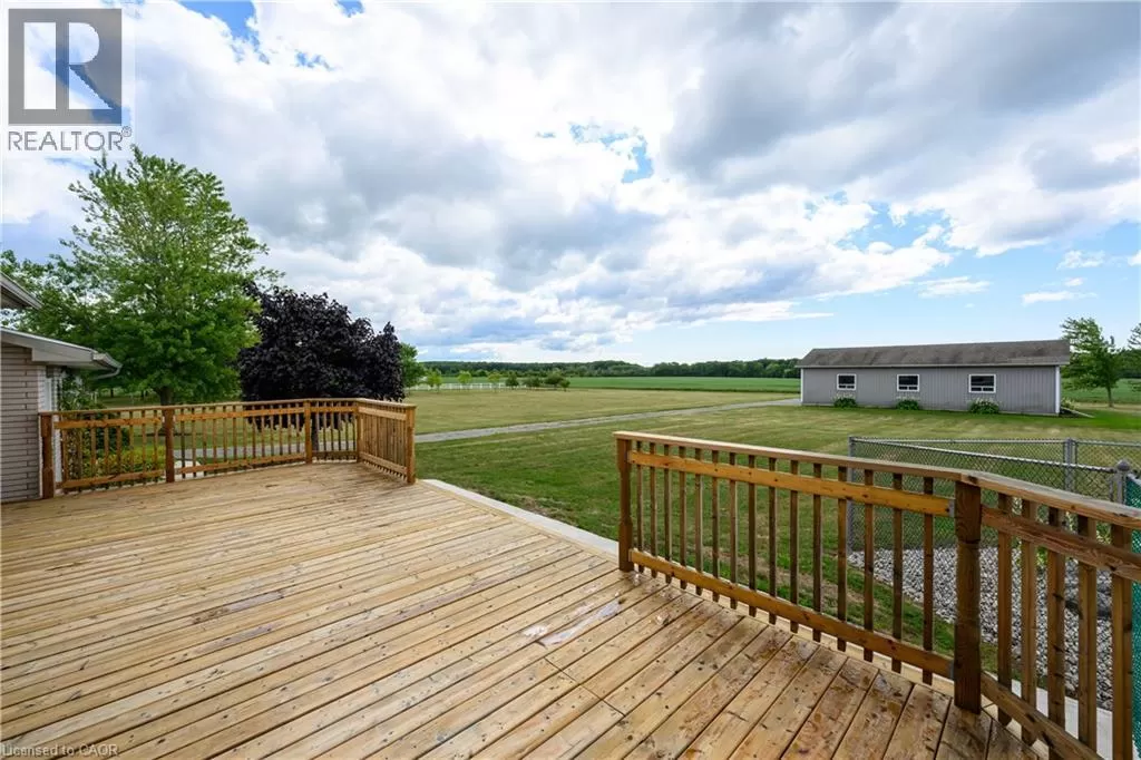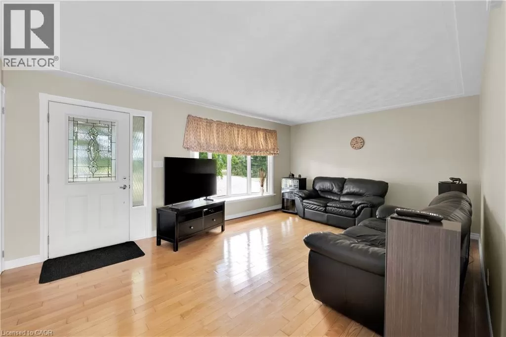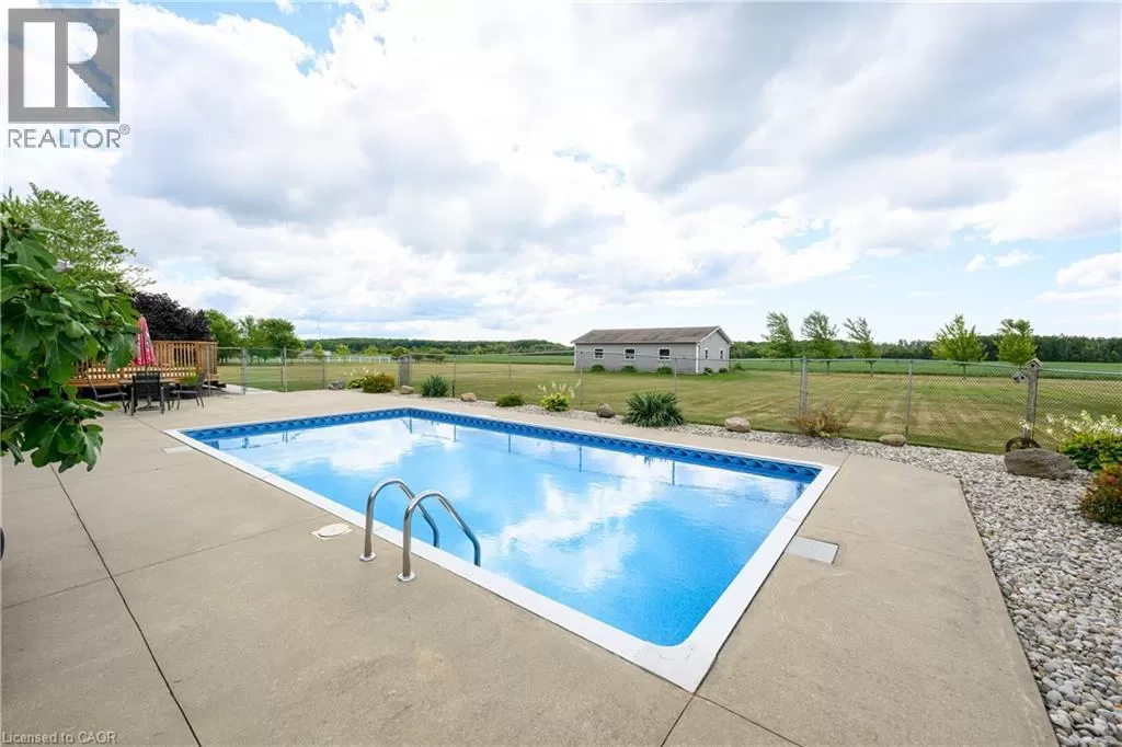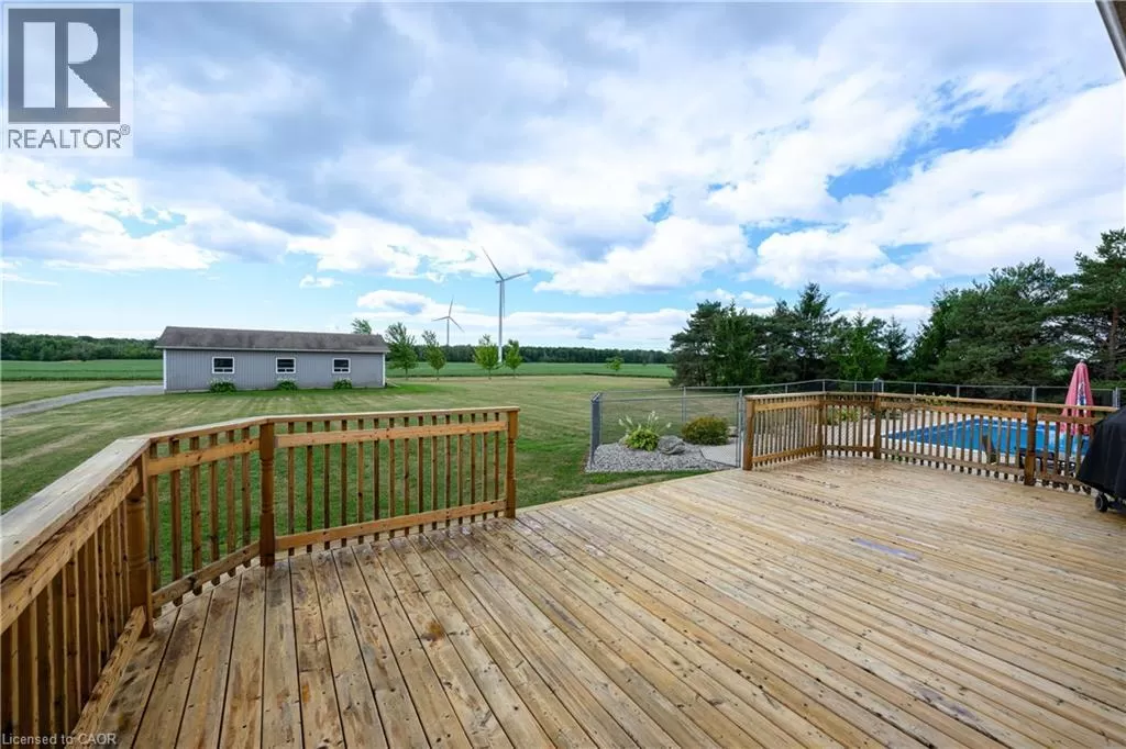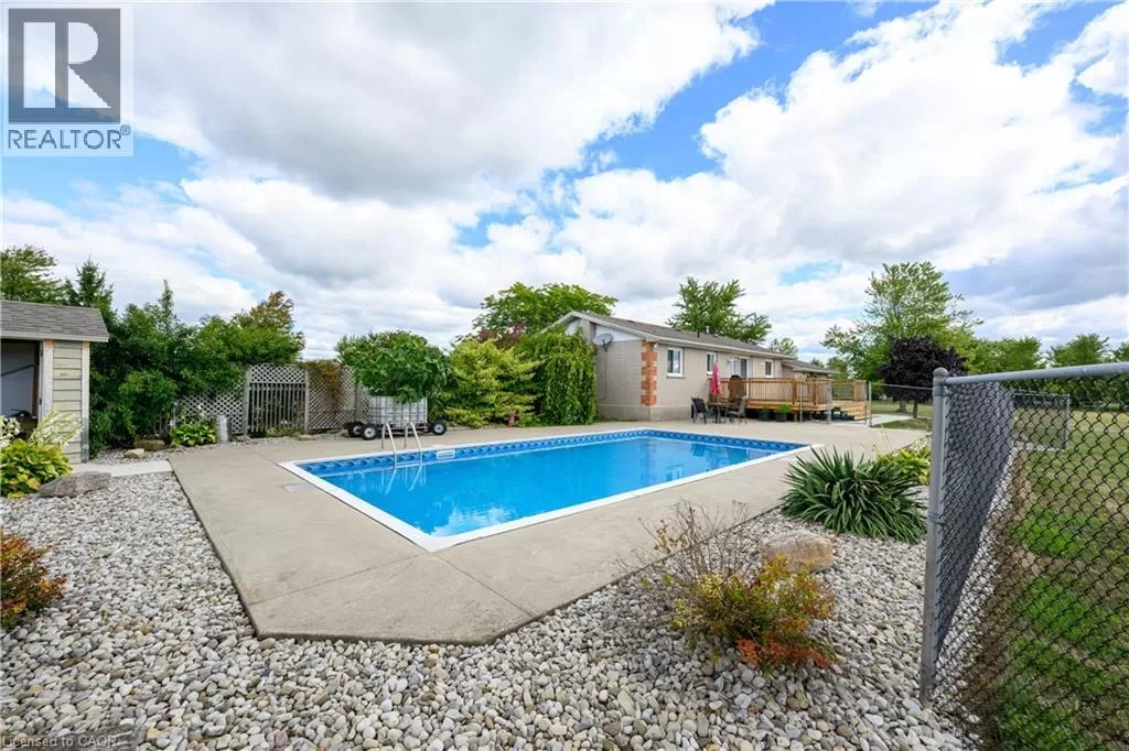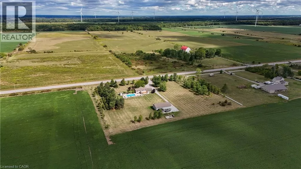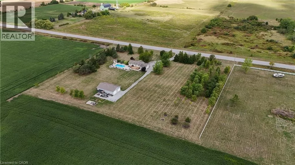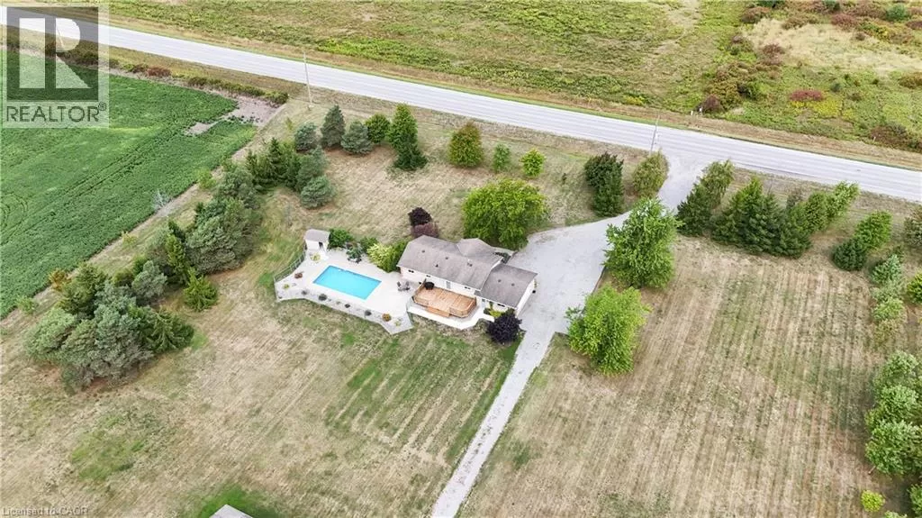 WEST OF DUNNVILLE ON RAINHAM RD PAST S.CAYUGA SIDE ROAD. EAST OF HALDIMAND RD 50 (A.K.A. YAREMY RD) Stunning raised brick bungalow on 3.93 acres offering space, privacy, and endless possibilities! This 1,078 sqft home plus fully finished lower level (1,120 sq. ft.) shows true pride of ownership throughout. The main floor features a bright living room with bay window and hardwood flooring, a custom kitchen with quartz countertops, oak cabinetry, coffee bar, and ceramic tile floors, plus a dining room with garden doors leading to a huge 14â x 32â deck overlooking the backyard oasis. Three spacious bedrooms and an updated 4-piece bath with quartz vanity and Mirolin tub complete the level. The lower level offers even more living space with a massive rec room and cozy gas fireplace, a 4th bedroom, 3-piece bath, large laundry, and cold cellar. Freshly painted throughout with numerous updates: furnace & A/C (2023), windows & doors (last 10 years), roof (2008), water pump (2025), and more. Enjoy summer days in your 16â x 32â inground family pool (liner & pump approx. 7 yrs), entertain on the large concrete patio, or gather by the fire pit. Car enthusiasts and hobbyists will love the 30â x 50â workshop (2008) with mezzanine and 2 overhead doors (12âx12â & 8âx10â), built in 2008. Double attached insulated garage with welder plug. Central vac, gas BBQ hookup, and 5,000-gallon cistern under the garage add to the value. Located just 10 minutes to Dunnville and 15 minutes to Cayuga, this property offers country living with quick access to town amenities. A true must-see! (id:27476)