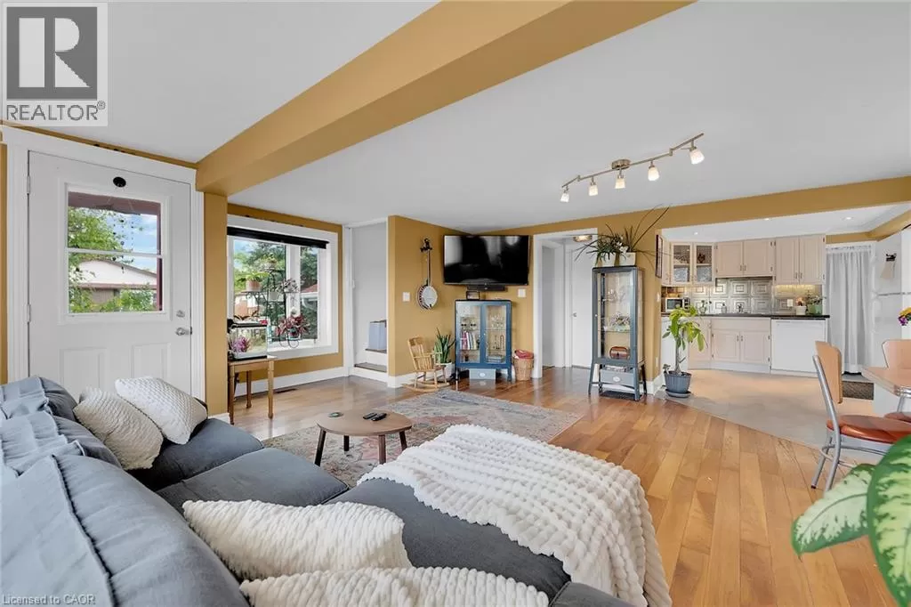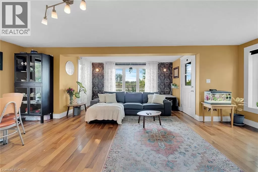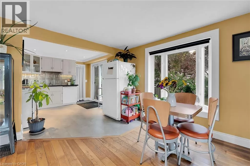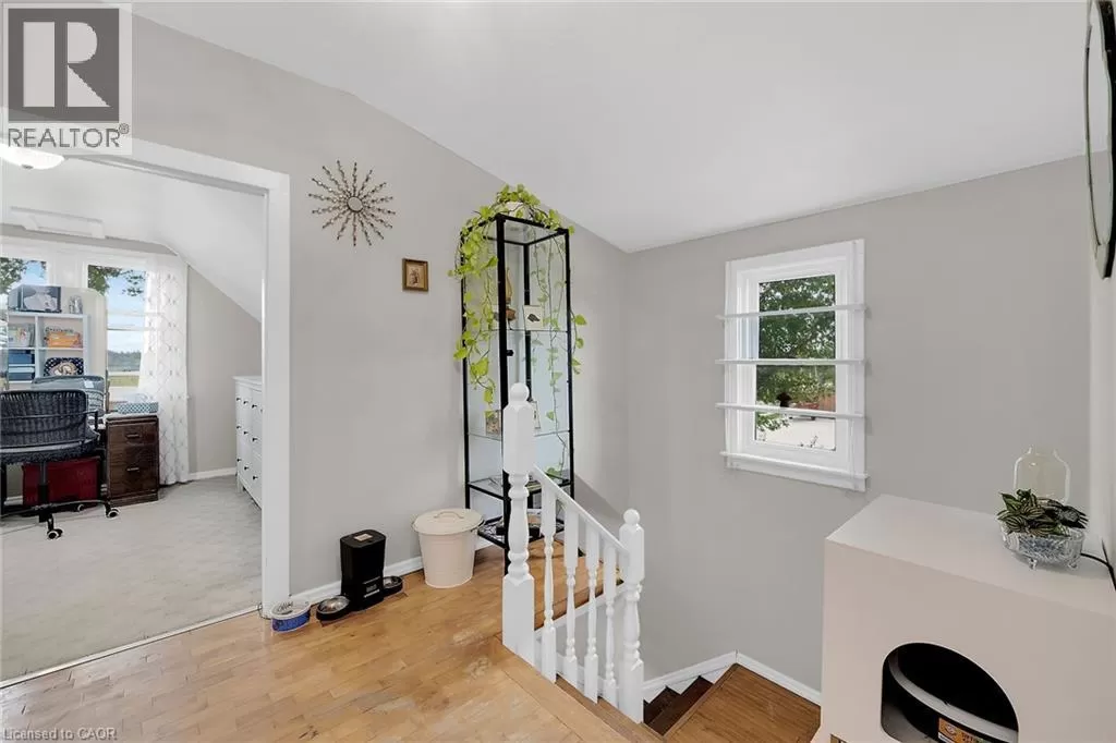HIGHWAY 3 INTO DUNNVILLE- BECOMES BROAD ST E Tastefully updated, Ideally located 3 bedroom, 2 bathroom pristine 1.5 storey home situated perfectly on premium 104â x 100â corner lot on desired Broad Street E. Great curb appeal with sided exterior, oversized paved driveway, detached 1.5 car garage, fenced yard, private patio for entertaining, & bonus 12â x 20â fully finished shed with flooring & hydro allowing for perfect office, studio, or quiet retreat. The flowing interior layout features 1114 sq ft of well designed living space highlighted by open concept main floor layout including updated kitchen with white cabinetry, backsplash, & separate pantry, dining area & large living room with hardwood flooring throughout, sought after MF bedroom, & 4 pc bathroom. The upper level includes 2 spacious bedrooms & 4 pc primary bathroom. The unfinished basement has great storage, cold cellar, laundry room, & houses the mechanicals. Upgrades include flooring, decor, fixtures, lighting, roof shingles 20â, furnace & A/C â 20â, vinyl windows, & more! Conveniently located close to parks, schools, shopping, downtown amenities, new commercial plaza with Shoppers, & Grand River waterfront park with boat ramp. Ideal home for the first time Buyer, young family, or those looking for convenient MF living. Incredibly maintained & shows extremely well. Enjoy Dunnville Living! (id:27476)