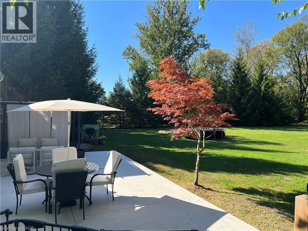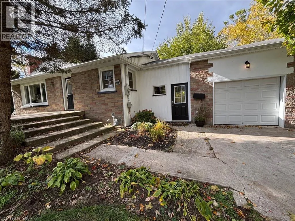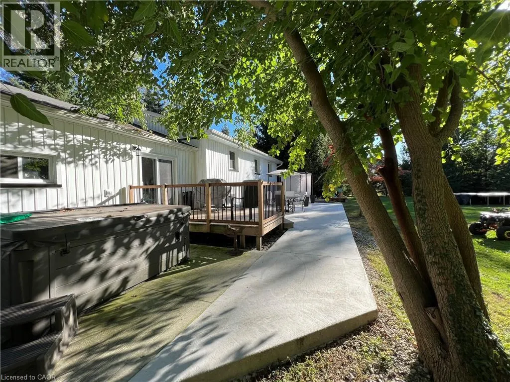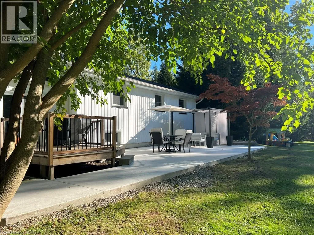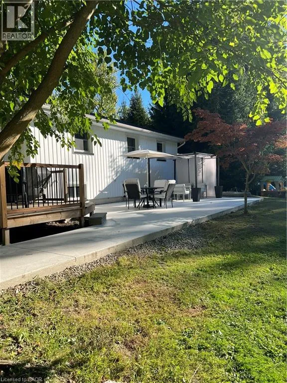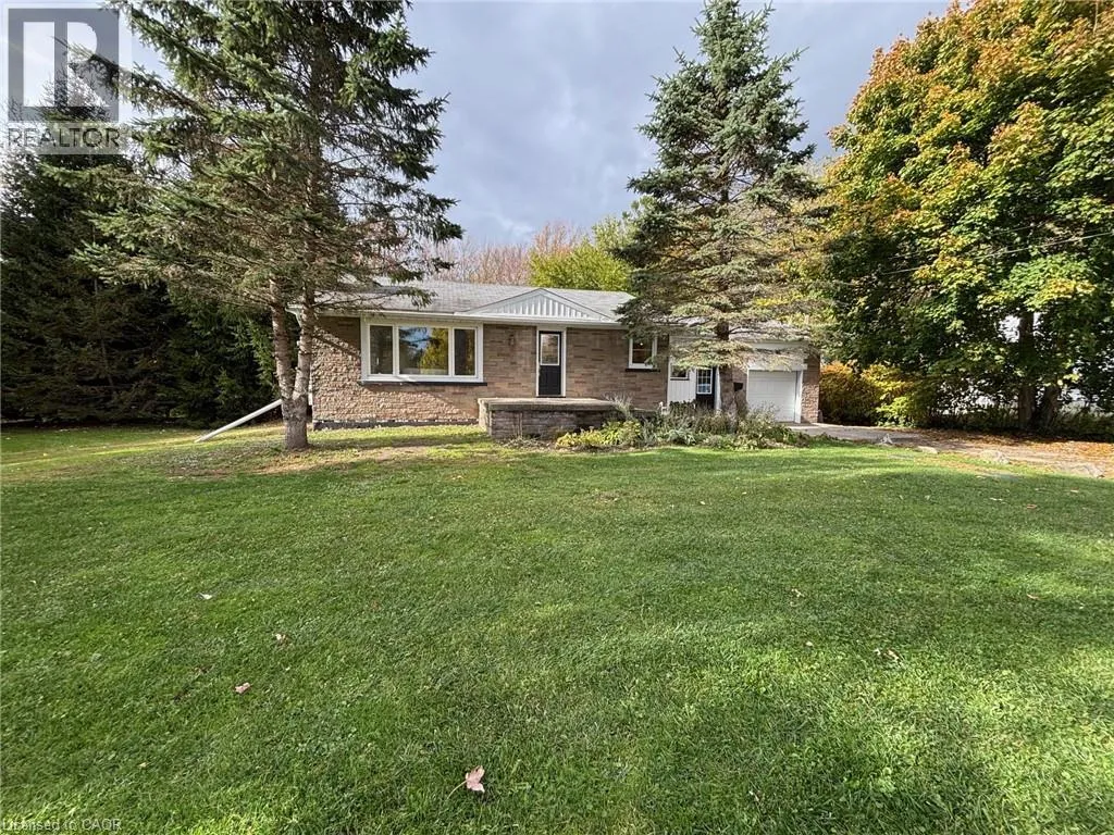 Corner of Diltz Road and Jarrett Place Country living close to town and all amenities! This 3+1, 2.5 bath bungalow on sought after 173 x 300 private mature treed lot. Great curb appeal with brick & vinyl sided exterior with attached garage, ample parking, deck, large patio and private mature treed backyard. Breezeway foyer to open interior layout: kitchen with breakfast bar, stainless steel appliances, spacious living/dining room with electric fireplace, 3 beds, 4 pc main bath & 2 pc guest, basement with family room, bedroom, 3 pc bath, laundry & storage. Enjoy the private yard, deck, new patio (2025), hot tub (as-is) and large lawn area, edged with mature trees. Shed with power. Updates include Furnace Oct 25, Septic 2022, 24-25; windows, weeping tile and waterproofing, concrete patio, some siding, main bathroom, interior painting throughout, interior doors & trim, laminate flooring & carpeting in bedrooms (original hardwood underneath). Possible severance too! RSA (id:27476)