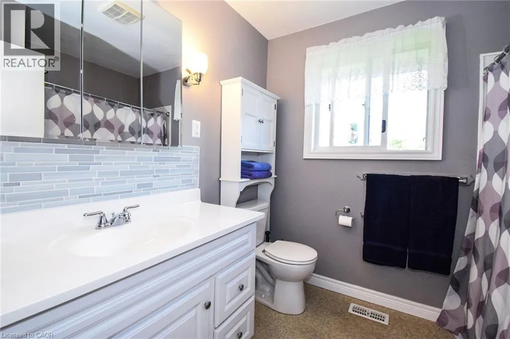 Hwy 3-Broad Street-North on Robinson Road-East on Cross Street-Property on North. Same prideful owner for over 50 years, this all-brick, one-floor home is a testament to dedicated upkeep and long-term care. Nestled on a mature, estate-sized lot of 84 by 250 feet, the property offers a peaceful and private setting. Enjoy the deep backyard, complete with a patio and gazebo, perfect for outdoor living and entertaining. The spacious interior features three plus one bedrooms, including a main floor with a large living room and a newer bay window. The primary bedroom includes a two-piece ensuite for convenience. The fully finished basement expands the living area with a large recreation/games room and a fourth bedroom. Recent updates ensure peace of mind for the new owners: a gas furnace and central air were installed in 2021, and the roof shingles were replaced in 2018. The property also boasts a 22-by-22-foot garage with two automatic garage door openers and a double-wide paved driveway. Its convenient location is close to schools, hospitals, and parks, making it an ideal family home. (id:27476)