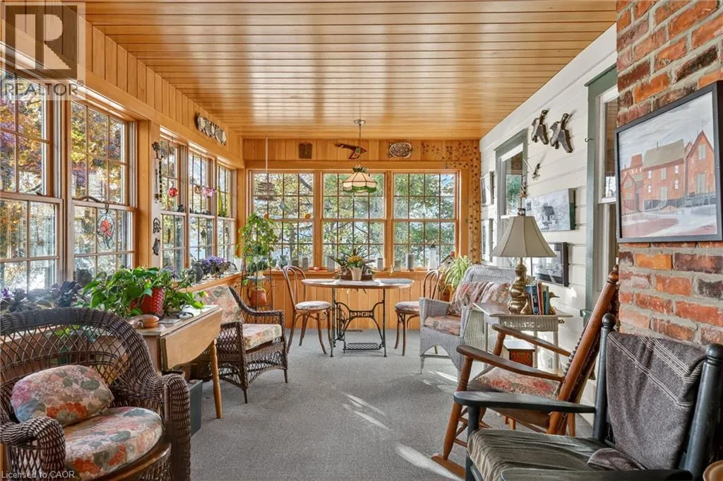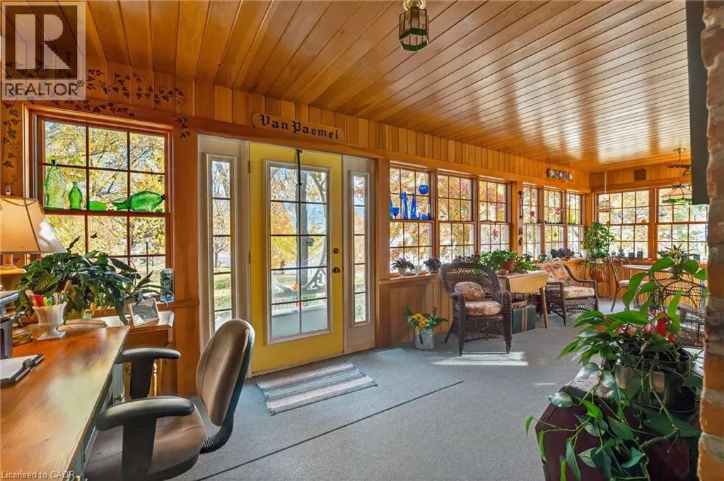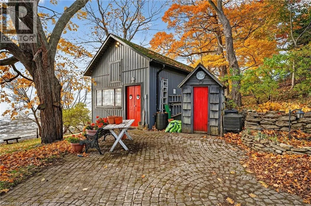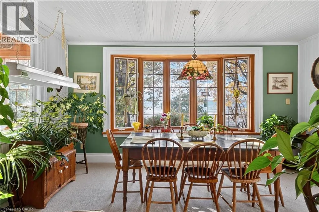 EAST ON PORT MAITLAND ROAD, SOUTH ON JOHNSON ROAD TO LAKE, WEST ON SANDY BAY PASS THE GOLF COURSE, PROPERTY ON THE SOUTH SIDE (LAKE SIDE) OF ROAD âIconicâ Sandy Bay lakefront estate on near 1 acre lot! Virtually impossible to replicate â this two storey century old home (1908sf) crowns a gentle hill commanding true panoramic lake views & a stunning setting. Steeped in decades of cherished memories by a devoted owner, the MF is drenched in character & features a hi-functional cherry cabinet kitchen w/ lake views flowing to a grand living room w/ exposed wood beams, rich wainscotting, & a âcozyâ brick gas f/p â a true focal point. Host unforgettable dinner gatherings in a defined dining area framed by a sun-drenched bay window. The front of the home features two stately rooms w/ high ceilings â one currently used as a main floor master bedroom. An authentic wood-lined sunroom offers the ideal space to capture the morning sunrise or to sip your favourite nightcap. Completing the MF is a 2pc powder room & an updated 3pc bath. Second level features 3 expansive bedrooms & another 3pc bath â dabbling in wood plank flooring and custom built-in storage. A separate guest house features 1 bedroom, living room, kitchen, 3pc bath â all wrapped w/ warm t/g pine â ideal for cottage guests or extra income! Beneath is a converted single garage to a heated work shop (22x14). Tuck neatly into the topography and offering a serene setting is a lakeside studio (16x32) heated & insulated w/ loft storage â let your imagination run wild- art studio, yoga retreat, waterfront office, ++! Note: fibre optic internet, two f/air furnaces â one for main house & one for sep. unit, separate gas meters & hydro, durable steel roof on home, & excellent break wall w/ stairs to waterâs edge. Mature trees frame this lot & a dead end road offers a quiet location & delivers cottage feels! Avoid terrible traffic & prices in cottage country ânorthâ â make Lake Erie your dream waterfront escape! (id:27476)