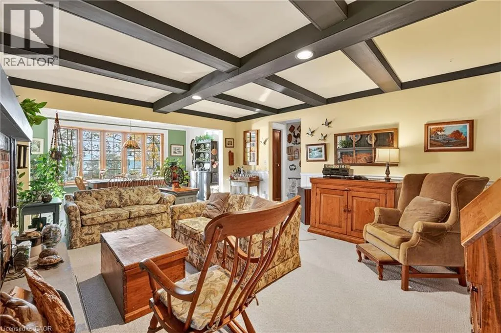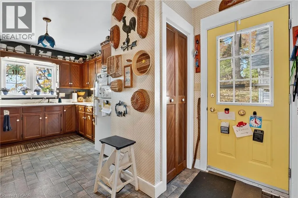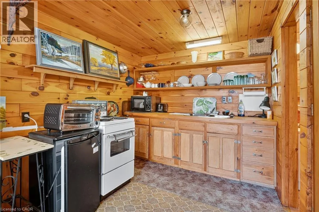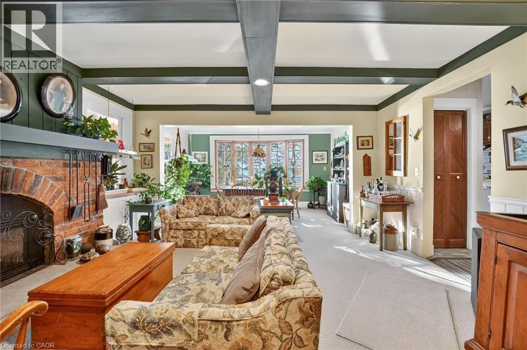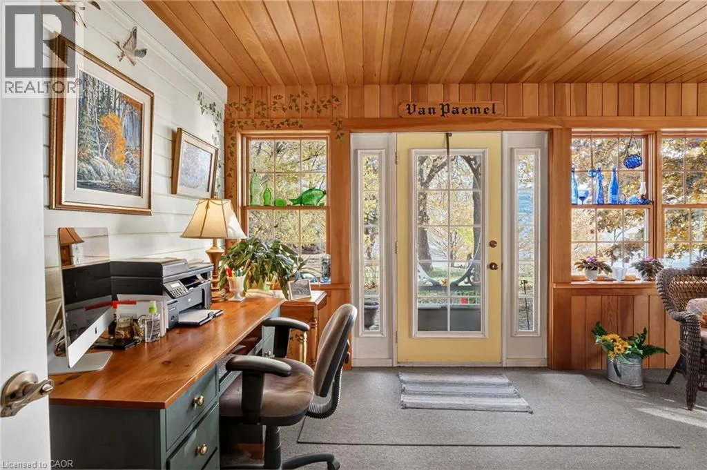 EAST ON PORT MAITLAND ROAD, SOUTH ON JOHNSON ROAD TO LAKE, WEST ON SANDY BAY PASS THE GOLF COURSE, PROPERTY ON THE SOUTH SIDE (LAKE SIDE) OF ROAD âIconicâ Sandy Bay lakefront estate on near 1 acre lot! Virtually impossible to replicate â this two storey century old home (1908sf) crowns a gentle hill commanding true panoramic lake views & a stunning setting. Steeped in decades of cherished memories by a devoted owner, the MF is drenched in character & features a hi-functional cherry cabinet kitchen w/ lake views flowing to a grand living room w/ exposed wood beams, rich wainscotting, & a âcozyâ brick gas f/p â a true focal point. Host unforgettable dinner gatherings in a defined dining area framed by a sun-drenched bay window. The front of the home features two stately rooms w/ high ceilings â one currently used as a main floor master bedroom. An authentic wood-lined sunroom offers the ideal space to capture the morning sunrise or to sip your favourite nightcap. Completing the MF is a 2pc powder room & an updated 3pc bath. Second level features 3 expansive bedrooms & another 3pc bath â dabbling in wood plank flooring and custom built-in storage. A separate guest house features 1 bedroom, living room, kitchen, 3pc bath â all wrapped w/ warm t/g pine â ideal for cottage guests or extra income! Beneath is a converted single garage to a heated work shop (22x14). Tuck neatly into the topography and offering a serene setting is a lakeside studio (16x32) heated & insulated w/ loft storage â let your imagination run wild- art studio, yoga retreat, waterfront office, ++! Note: fibre optic internet, two f/air furnaces â one for main house & one for sep. unit, separate gas meters & hydro, durable steel roof on home, & excellent break wall w/ stairs to waterâs edge. Mature trees frame this lot & a dead end road offers a quiet location & delivers cottage feels! Avoid terrible traffic & prices in cottage country ânorthâ â make Lake Erie your dream waterfront escape! (id:27476)